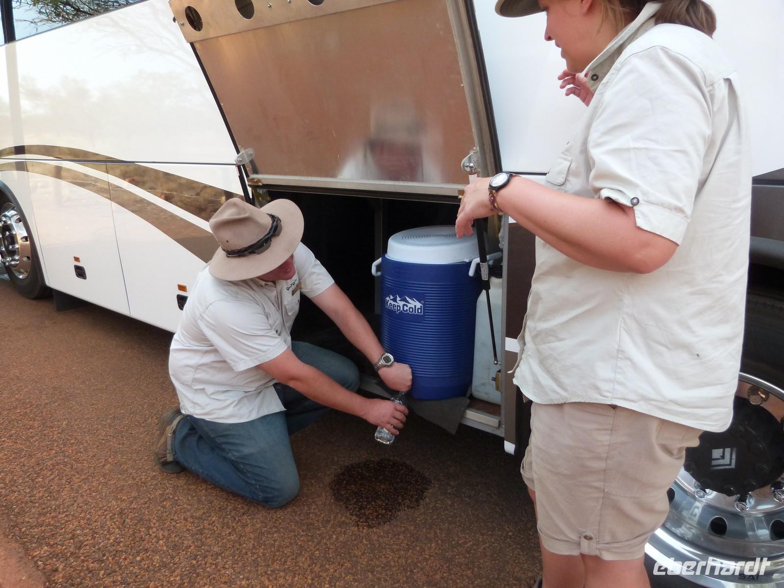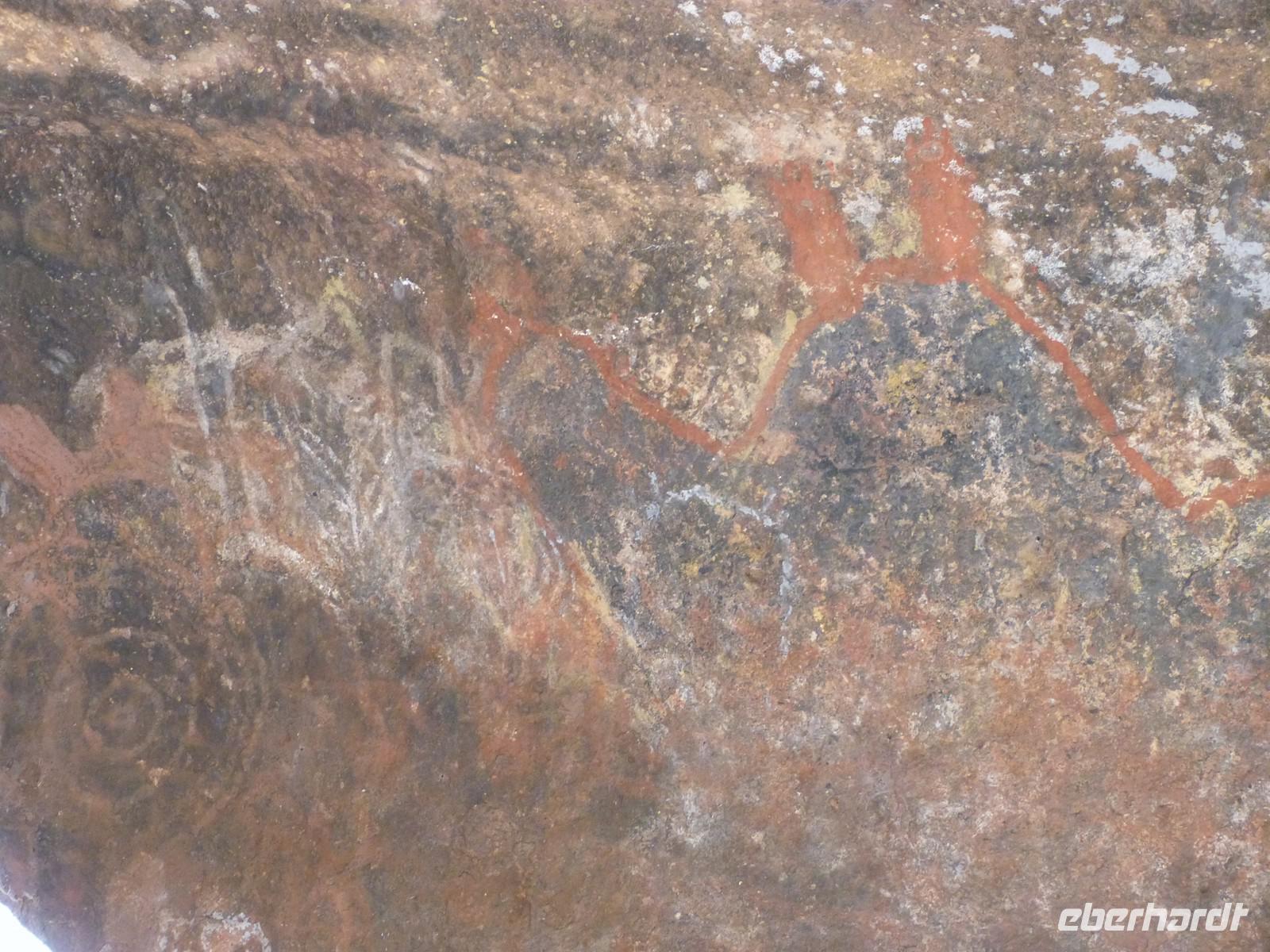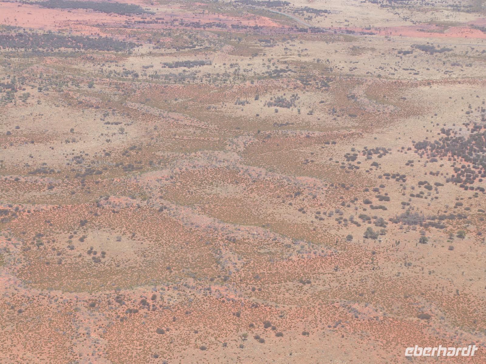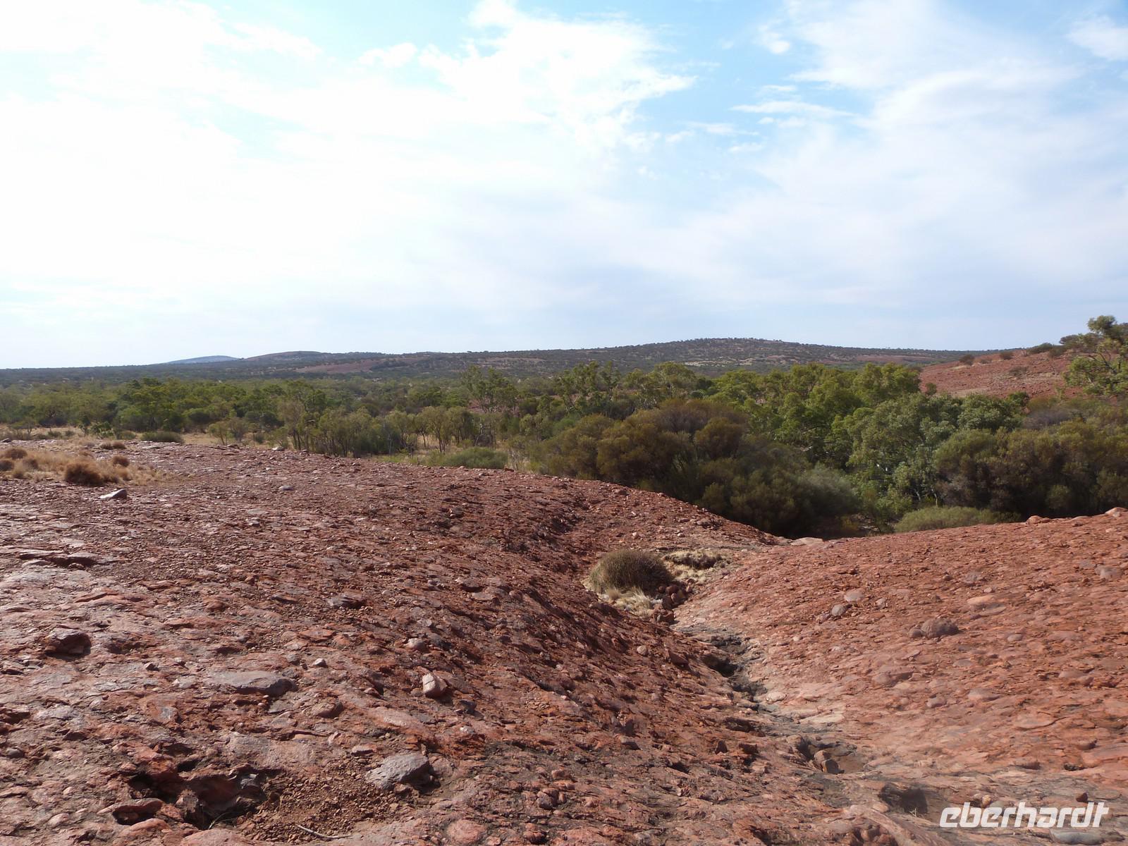 Nach einer ruhigen Nacht im Outback traten wir heute unsere Weiterfahrt in das Zentrum des roten Kontinents an. Alice Springs ist zwar der geografische Mittelpunkt Australiens aber wir wollten ja noch die heiligen Berge der Aborigines sehen. Es erwarteten uns an dem Tag der „Uluru" (Ayers Rock) und die „Kata Tjuta´s" (die Olgas). Wir fuhren am Morgen in Alice Springs los und es ging auf dem Stuart Highway südlich. Unterwegs stoppten wir an einer Kamelfarm und sahen einen Dingo. Danach ging unsere Abenteuerreise weiter und um uns herum die herrliche tiefrote Erde. Die Landschaft glich einer Wüste und Steppe, nur harte Gräser und besondere Tiere konnten hier überleben. Zu den Tieren zählen Kängurus, Kamele, verschiedene Schlangenarten, Echsen, Spinnen und Termiten.