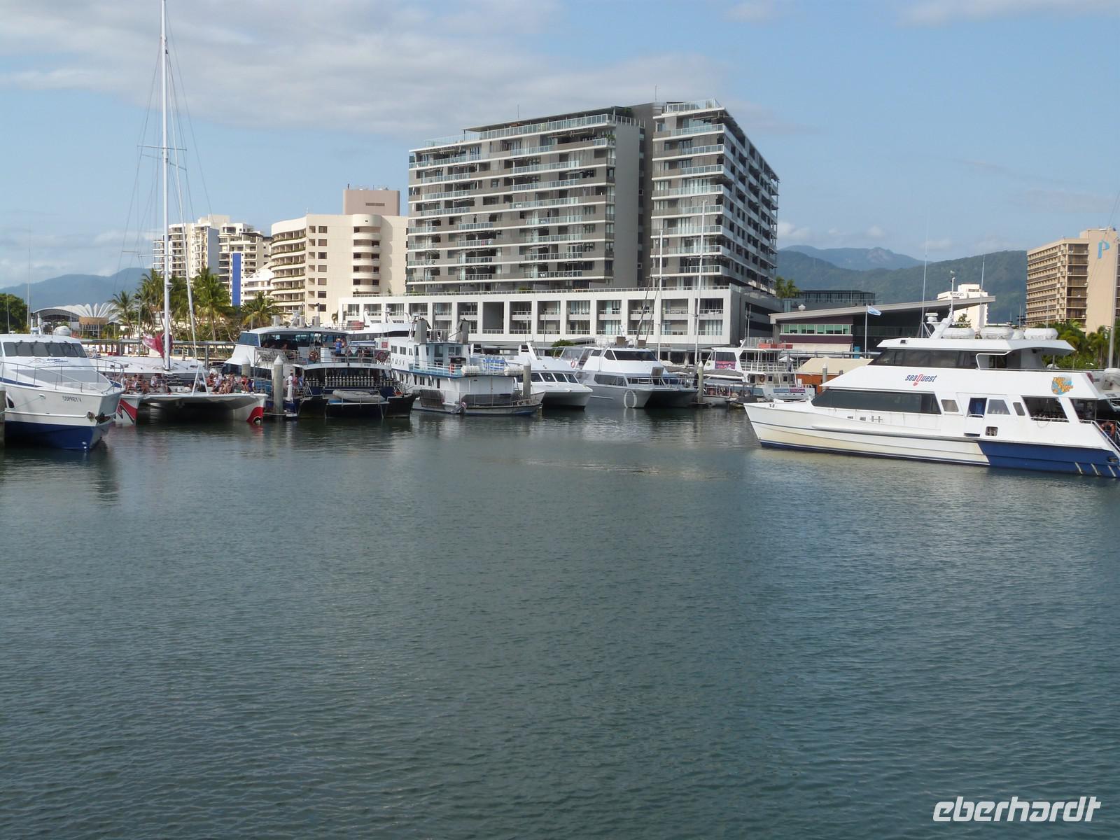 Am Mittag ging es dann zum Flughafen und wir traten unseren Flug nach Cairns an. Auch dieser dauerte ca. 3 Stunden. Am späten Nachmittag trafen wir in Cairns ein. Leider waren auf dem Flug Koffer kaputt gegangen, die Karin und ich am Flughafen noch reklamiert hatten. Karin, unsere Reiseleiterin in Cairns, begleitete uns bis zum „Mercure" Hotel, wo wir die restlichen 4 Nächte übernachteten. Das Abendessen nahmen wir als Buffet im Restaurant ein. Den Abend ließen wir in Ruhe ausklingen und gewöhnten uns an das feucht-warme Klima von Cairns.