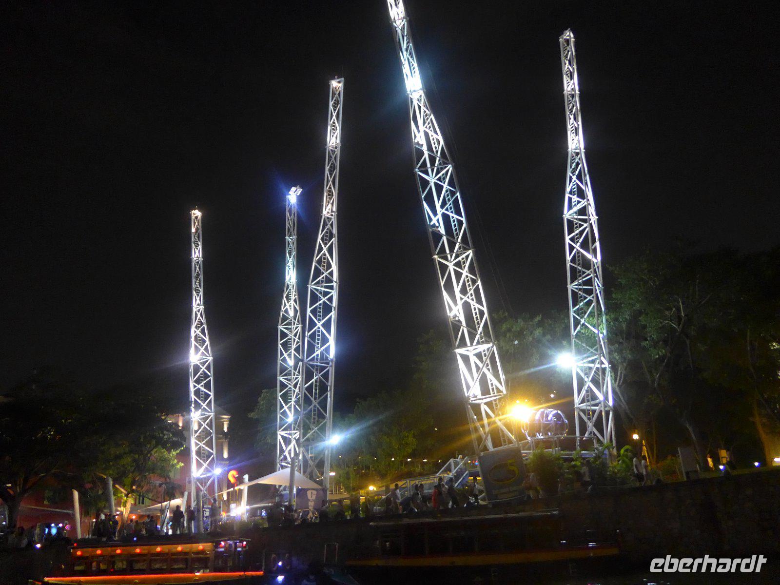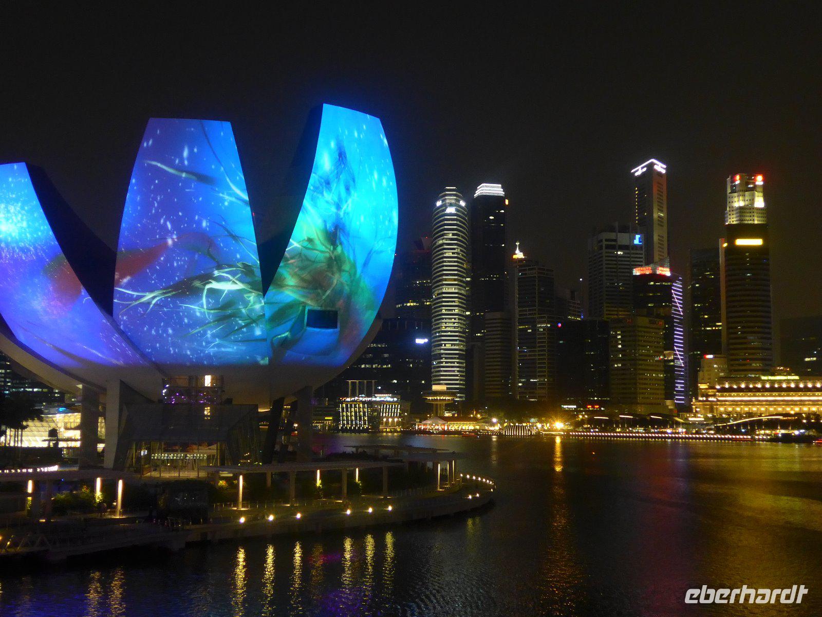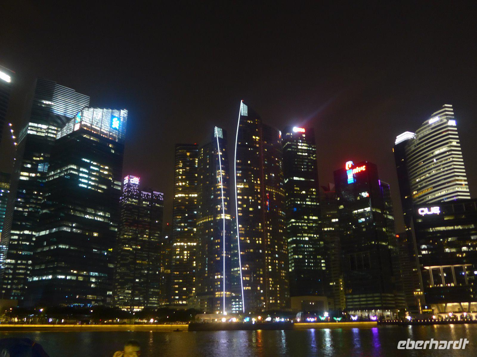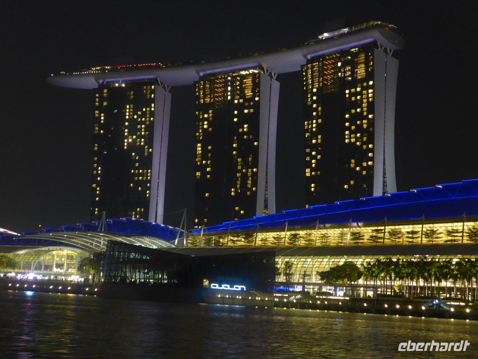 Nach einem knapp 12-stündigen Flug und reichlich 10.000 Kilometern landeten wir im nachmittäglichen Singapur. Zunächst erschlägt uns die ungewohnte hohe Luftfeuchtigkeit. Hatten wir wirklich die Sauna bei Eberhardt gebucht? Schnell ging es mit ersten Erläuterungen zur Stadt im klimatisierten Bus ins Hotel um sich etwas frisch zu machen. Wieder dem tatsächlichen Klima ausgesetzt, erlebten wir schon am Singapore-River die nächtliche Skyline. Diese Kulisse setzte sich auf einer kleinen Bootfahrt fort. Ein wirkliches Highlight bei unserem Aufenthalt in der saubersten Stadt Asiens. Mit einer Lasershow ließen wird den lauen Abend ausklingen. Ein Erinnerungsfoto am Merlin und dann ging es völlig geschafft zurück zum Hotel.