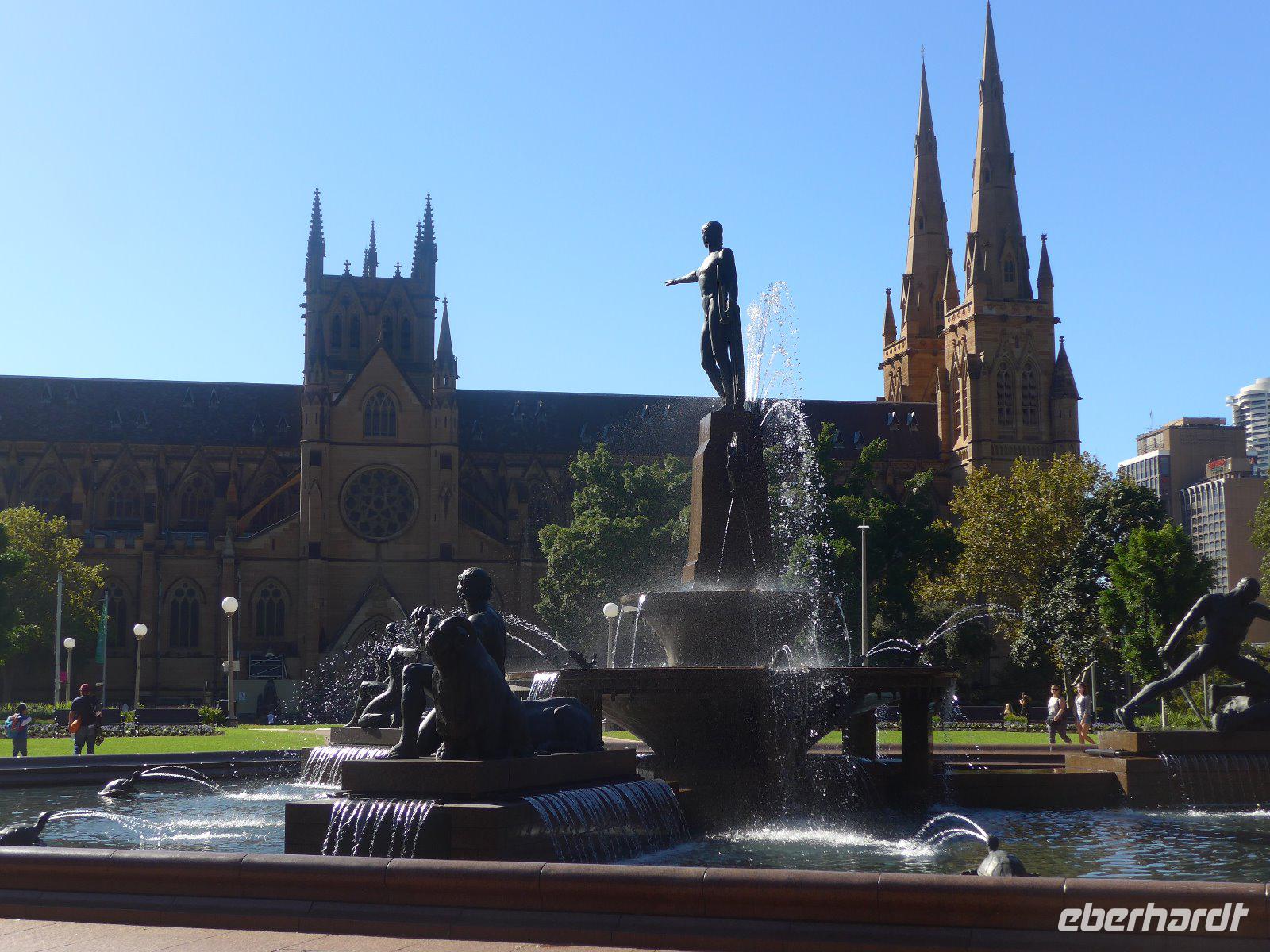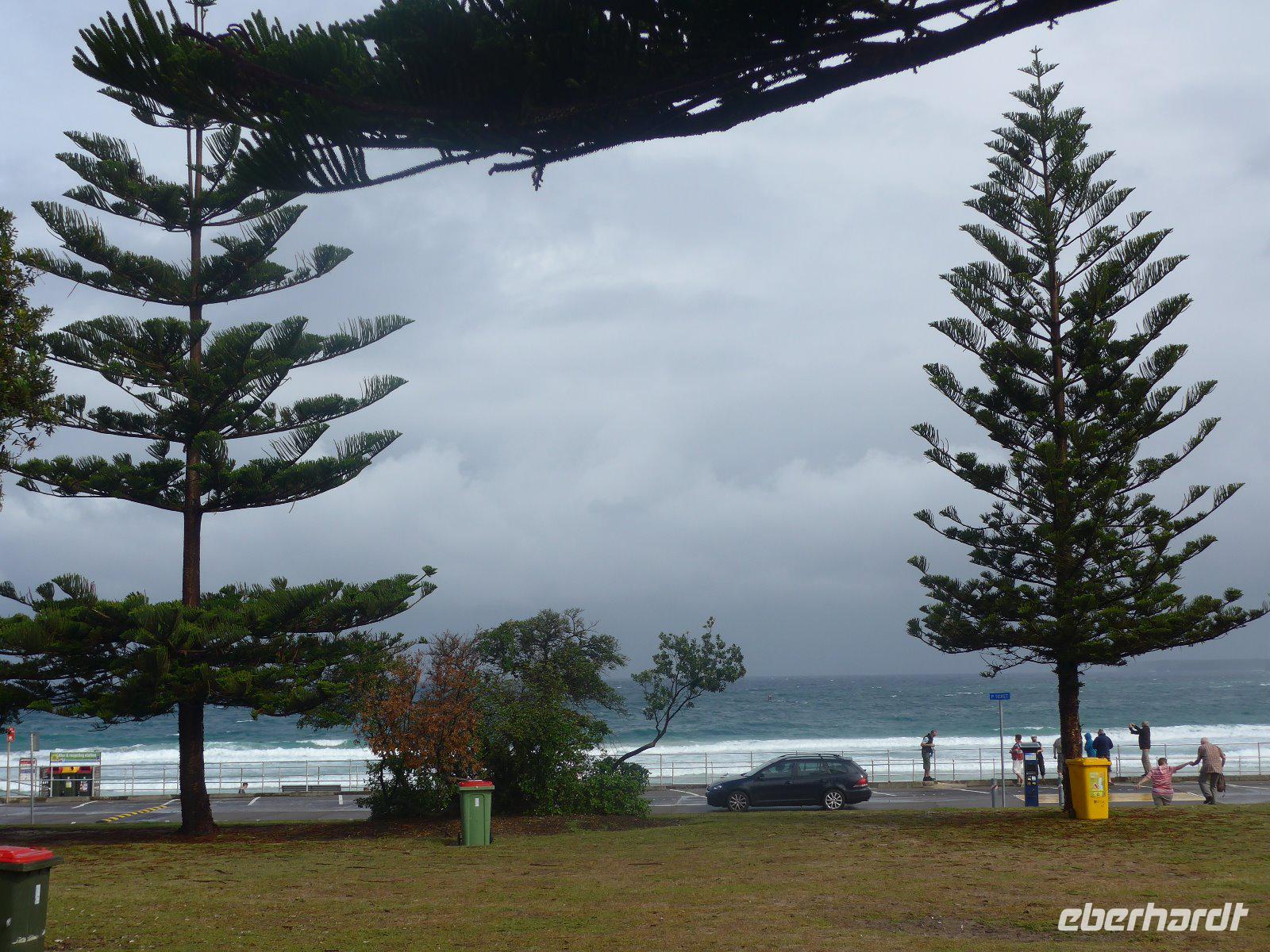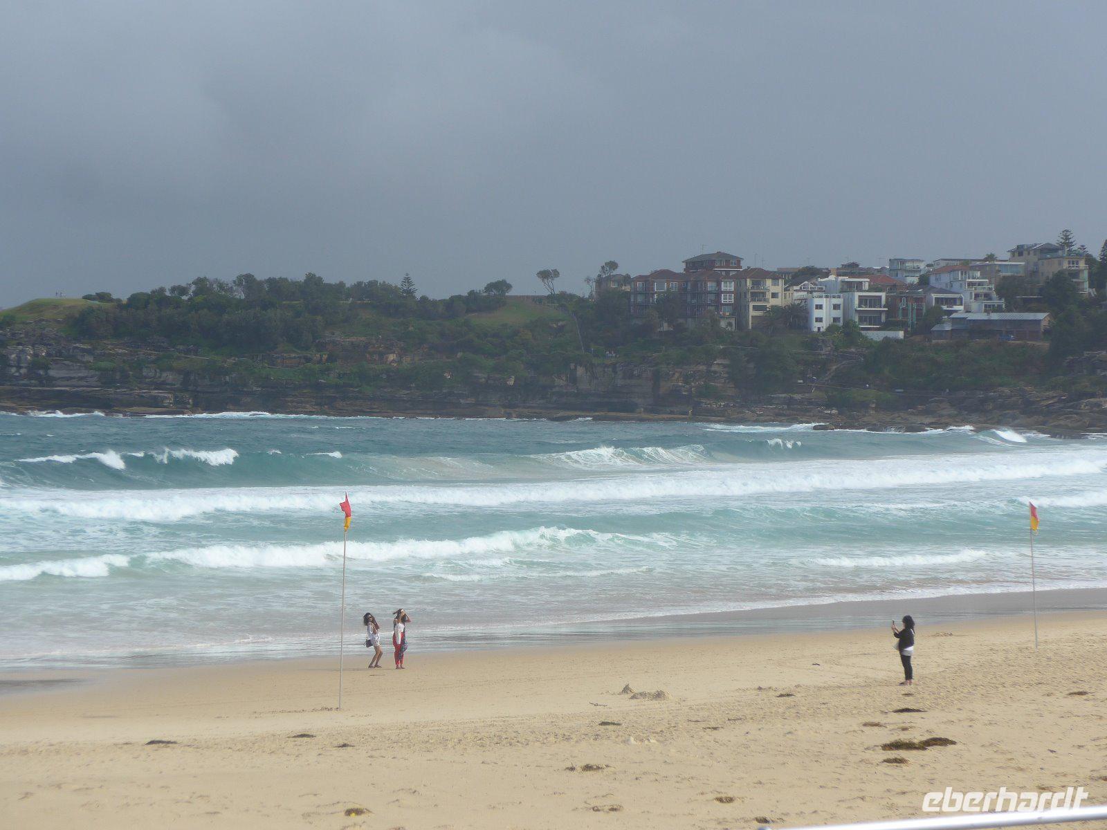 Für viele Touristen das Tor zu Australien - nun ging es auch für uns so richtig los. Trotz Müdigkeit in den Gesichtern unternahmen wir dennoch eine Stadtrundfahrt mit zahlreichen Stopps. Mittags beim ersten Teil der Stadtführung sahen wir u. a. die Sydney-Harbour Bridge, die wegen ihrer Form oft liebevoll „Coachhanger = Kleiderbügel" genannt wird, die Sydney-Oper und zahlreiche andere historische Gebäude der Innenstadt. Es ging auch etwas raus aus der Stadt, nämlich zum berühmten Bondi-Beach - dieser steht für ganze Generationen australischer Strandkultur und ist ein Paradies für die Surfer. Durch den Regenschauer - Im Freien jetzt nur was für Hardliner - machte es dann in einer Regenpause dennoch für viele möglich den Strand auch von der Nähe zu sehen. Bei statistisch gesehenen 342 Sonnentagen ein Wunder der anderen Art. Gerade in den Sommermonaten bzw. zur Weihnachtszeit ist es einfach Kult, hier gesehen zu werden. Hai-Alarm kein Problem, denn dieser Strand wird ständig überwacht.