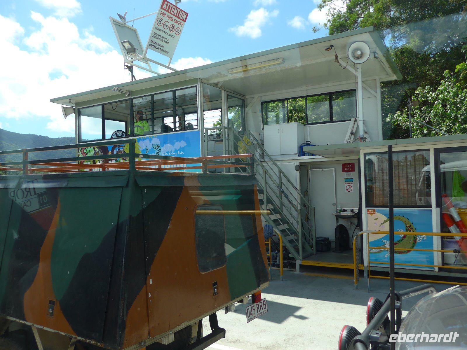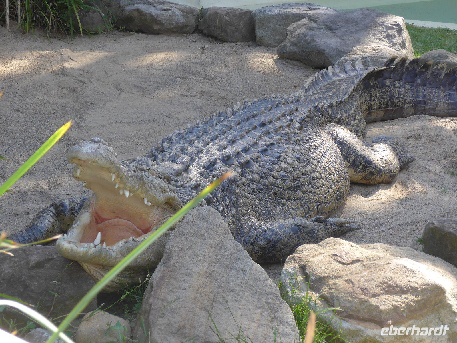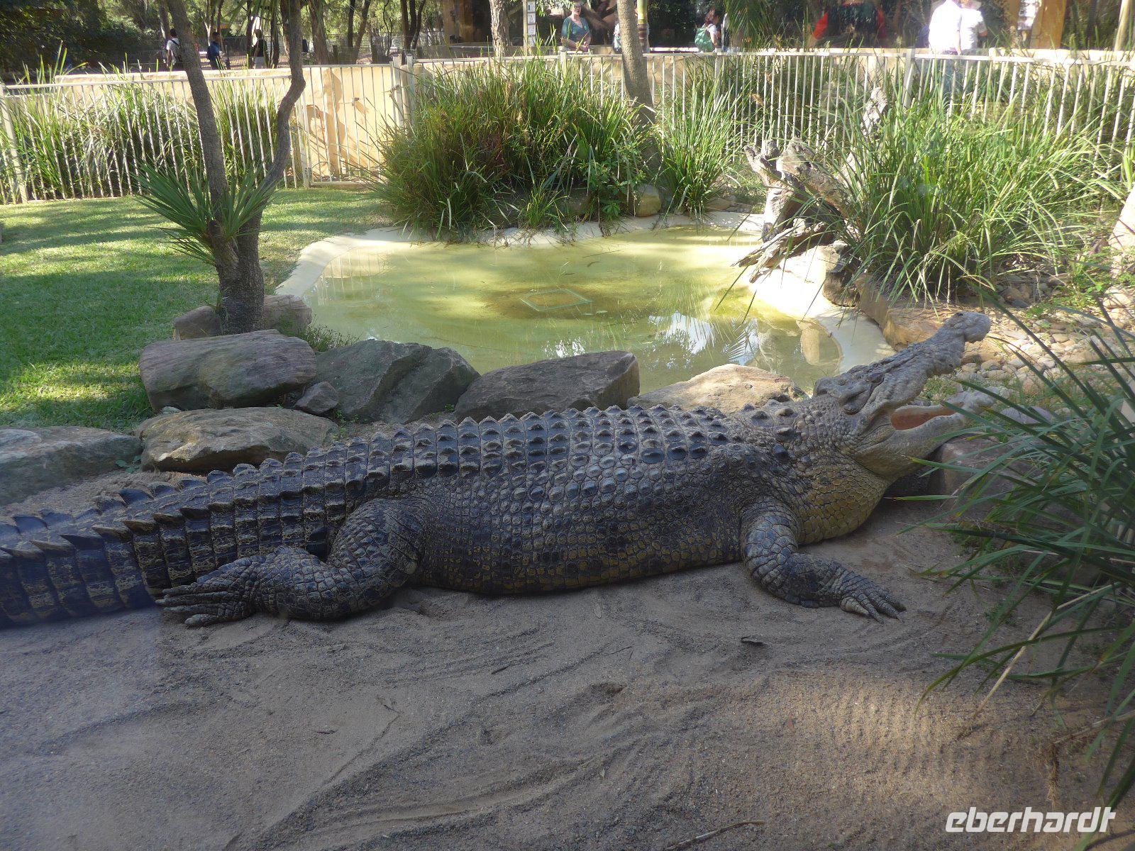 Den letzten Tag in Australien verbrachten wir im Daintree-Nationalpark. Wir erlebten die imposante Mossman-Schlucht und gingen auf Entdeckungstour im Regenwald. Ein weiterer Höhepunkt war schließlich die Fahrt auf dem Daintree River. In diesem Fluss leben die gefährlichen Salzwasserkrokodile - man kann überall die unübersehbaren Warntafeln erkennen! Wir hatten Glück und haben auf unserer Fahrt ein Krokodil gesehen - zumindest den Kopf, denn der Körper ist meistens im Wasser. Echt oder nur Showattrappe - so manche Spekulation kam auf! Egal auf jeden Fall hatten wir eine schöne Mittagspause. Schlangen waren zur Mittagspause zum Greifen nahe u. ein kurzer Spaziergang am Strand rundete unser Erlebnis im Daintree-Gebiet ab.