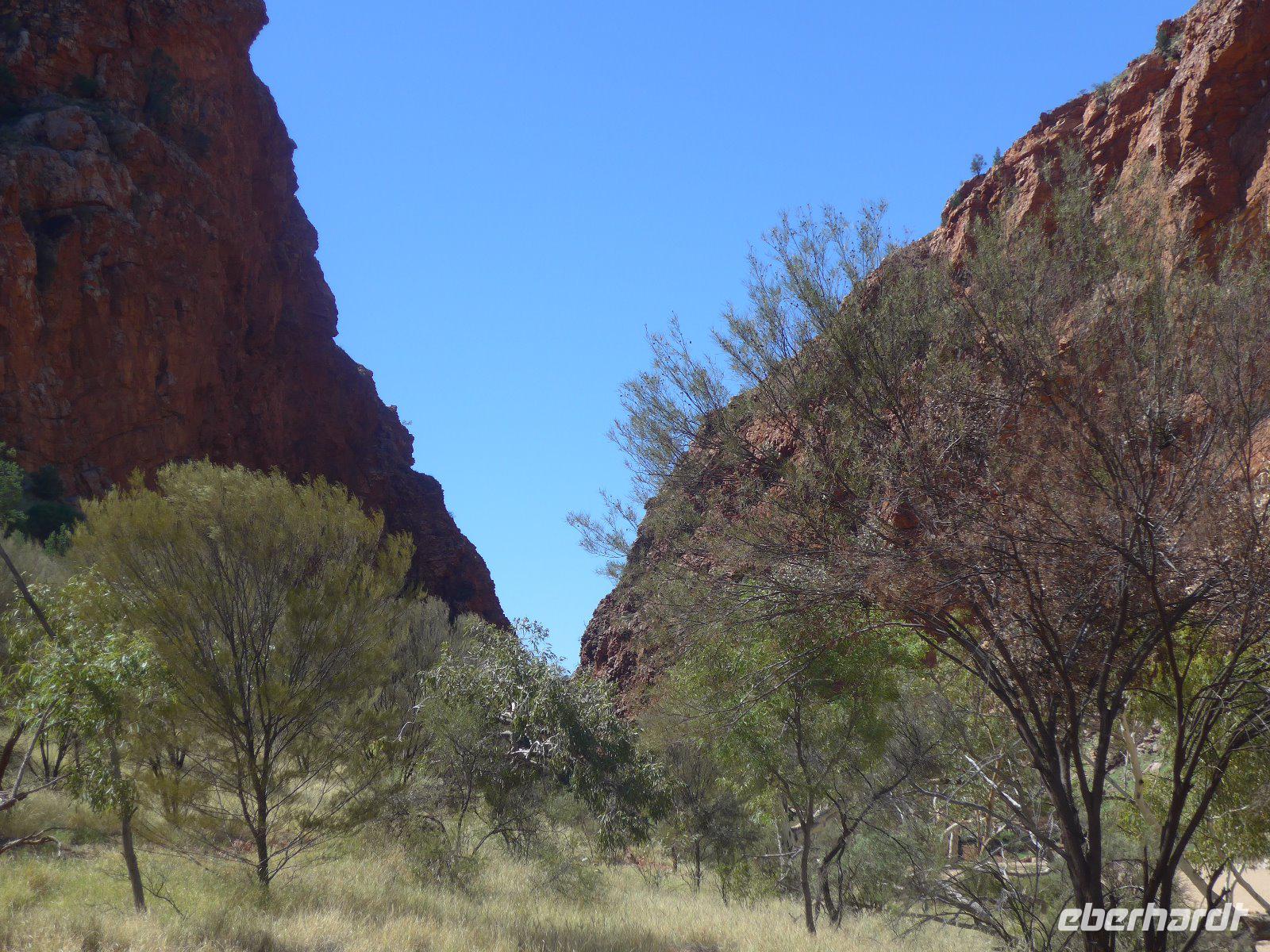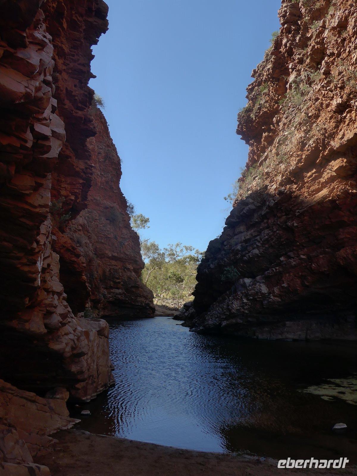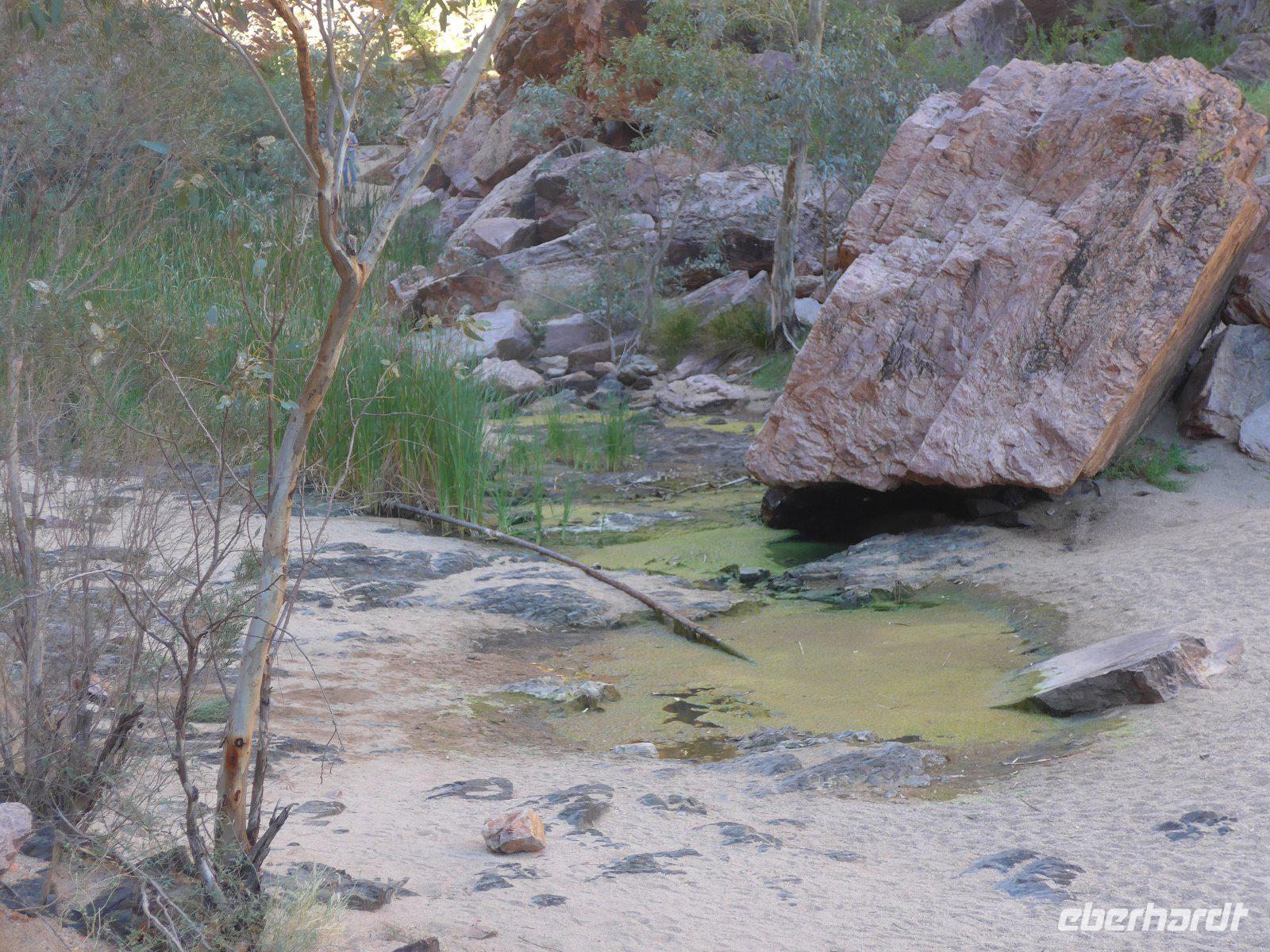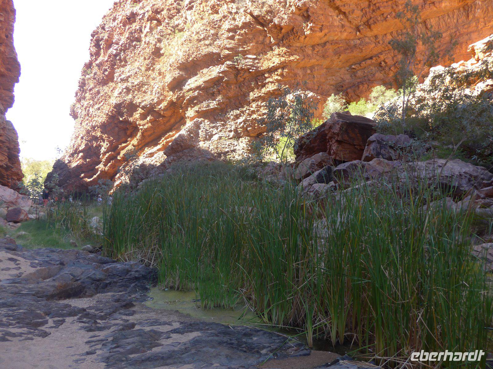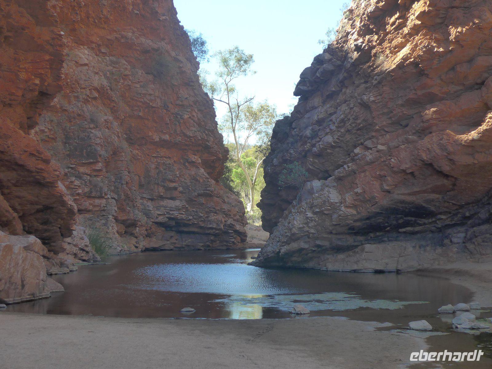 Nun hieß es auch schon wieder Abschied nehmen von Sydney und den Blue Mountains - es ging weiter mit einem knapp dreistündigen Flug ins Herz von Australien - nach Alice Springs. Von seinen etwa 25.000 Bewohnern wird Alice Springs nur ganz schlicht und einfach „Alice" genannt. War der Ort noch vor zwei Jahrzehnten ein verschlafenes Outback-Nest, so ist die Stadt heute der wichtigste Ausgangspunkt für Ausflüge im „Red Centre", dem Roten Zentrum des Landes. Man muss trotz allem feststellen, dass „Alice" eine gewisse Provinzialität noch nicht abgelegt hat, denn das Leben hier ist einfach und anspruchslos. Und dennoch die Immobilienpreise sind gesalzen. Man sagt, so erfuhren wir von Einheimischen, die meisten bleiben keine zwei Jahre hier, wer es dennoch länger hier aushält, der ist vom Outback-Fieber ergriffen und bleibt oft das ganze Leben hier. Hier in „Alice" trifft man sehr oft auf die australischen Ureinwohner, die „Aborigines", deren Bevölkerungsanteil bei über 25 Prozent liegt. Viele fristen ein bedauernswertes Dasein, es wird allerdings durch verstärkte Sozialarbeit versucht, die Lage der Aborigine-Bevölkerung zu verbessern. Für mich war dennoch überraschend zu sehen, dass die Ureinwohner mitten in der Stadt sitzen und einfach zum Stadtbild von Alice Springs gehören. Der Anblick eines Aborigines ist für uns Mitteleuropäer sicherlich gewöhnungsbedürftig - dunkle, teilweise verrunzelte Haut und vor allem dreckige Haare. Wir erfuhren allerdings auch, dass die Aborigines das kostbare Wasser eher zum Trinken nehmen und seltener zum Waschen ihres Körpers. Vom Anzac Hill hat man den besten Blick auf die Stadt und man erkenn sofort, dass man mitten in der Wüste ist. Am Rande sei noch bemerkt, dass dies auch ein Denkmal für die vielen Kriege sind an denen auch Australier beteiligt waren. Die alte Telegraphenstation an dem das Leben von Alice Springs eigentlich begann u. zum Abschluss noch Simpsons Gap mit seinem Restwasserbestand des Sees waren Höhepunkte des heutigen Tages. Die Hitze macht ganz schön zu schaffen - gut, dass unser Hotel einen Pool hat, der rege genutzt wurde.
