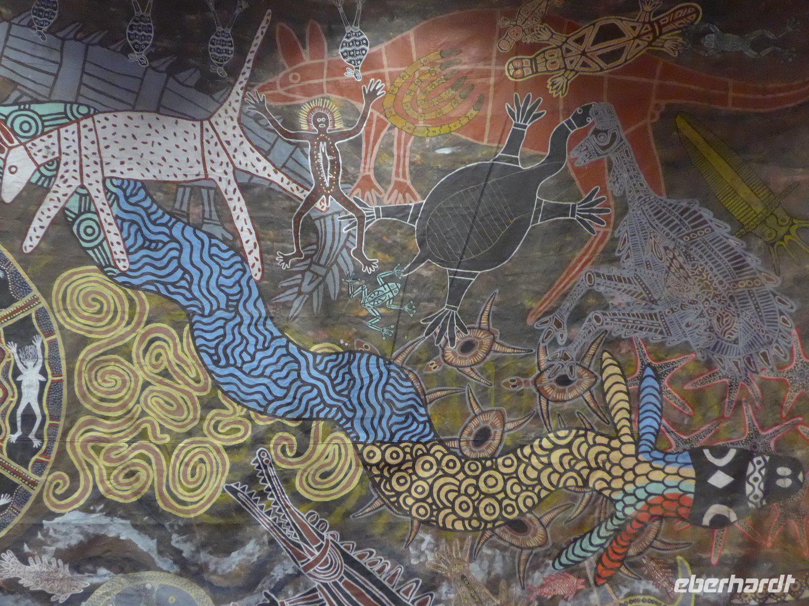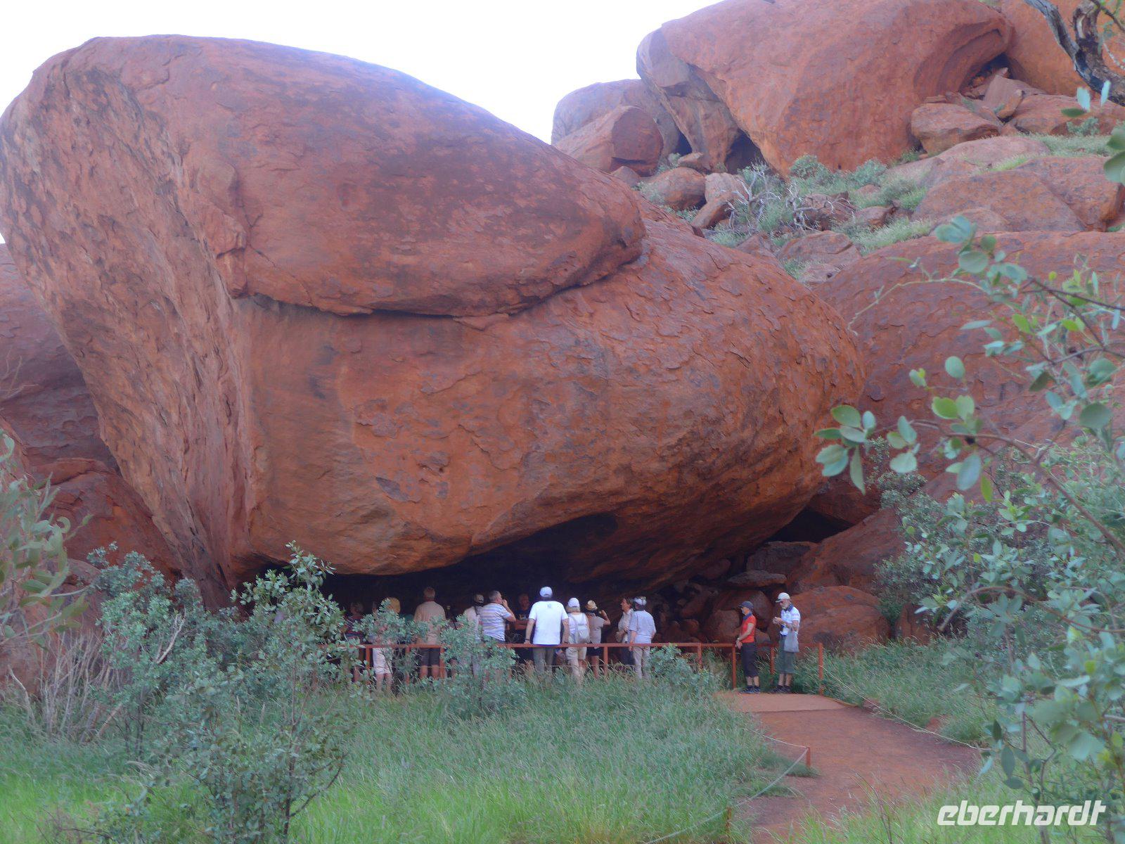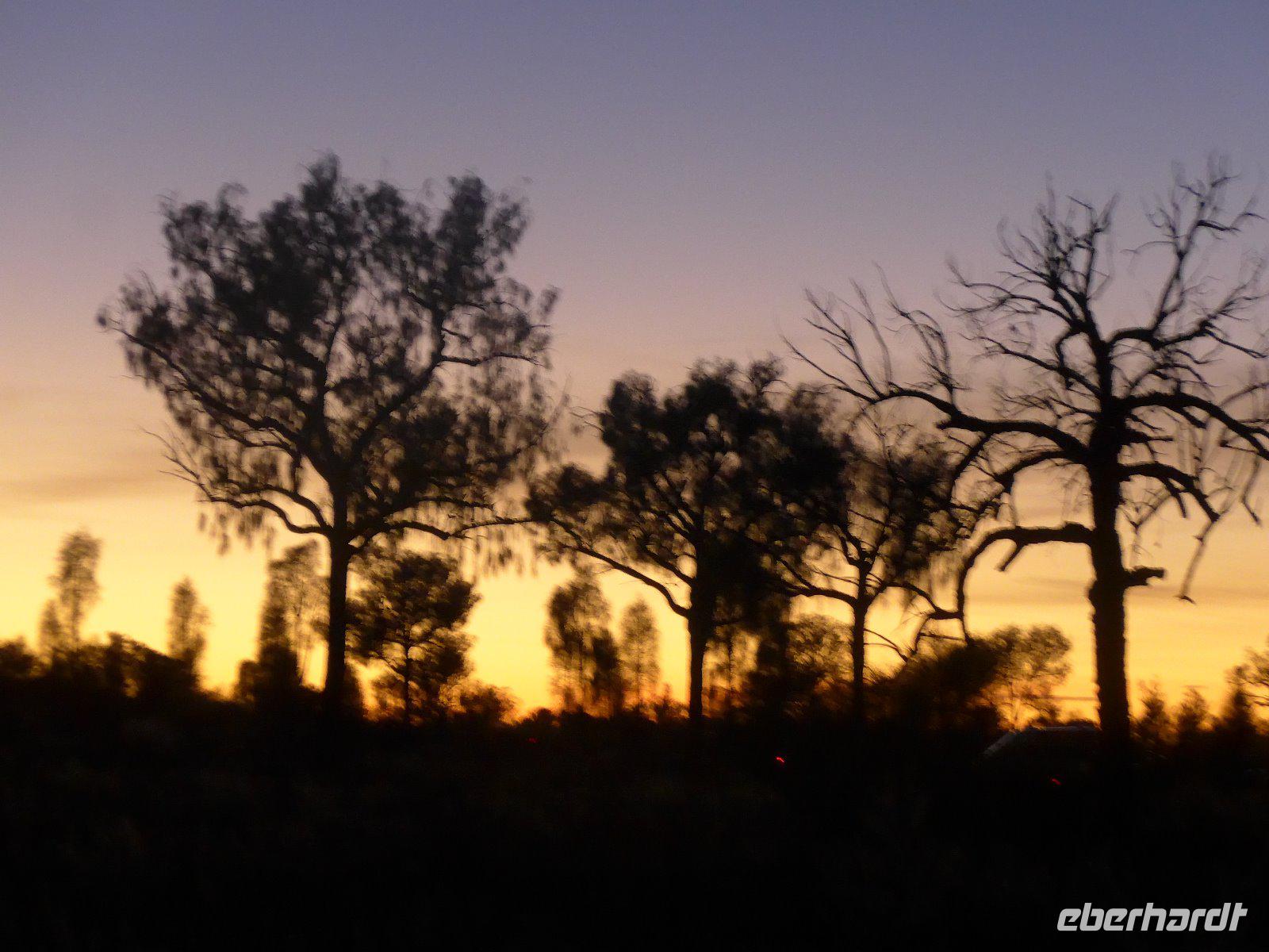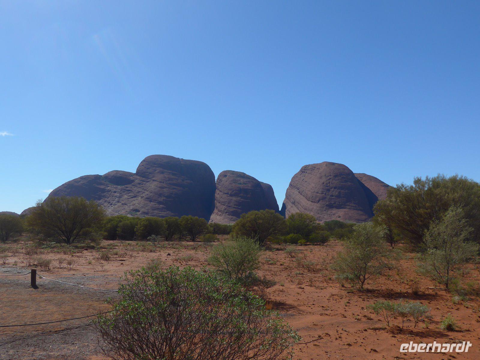 Gleich früh gegen 6 Uhr ging es dann weiter, denn auch den Sonnenaufgang am Ayers Rock wollten wir uns nicht entgehen lassen. Kennzeichnend sind in dieser Gegend die großen Temperaturschwankungen (Tags heiß und nachts mitunter sehr kalt). Bei uns waren es noch erträgliche Temperaturen. Prinzipiell ist es auch möglich, den Uluru zu besteigen. Aber für die Ureinwohner ist dieser Berg ein heiliger Fels, dessen Besteigung für sie ein Tabu ist. Wir zollen den Ureinwohnern Respekt u. verzichten auf den Aufstieg. Im Kulturzentrum der Aborigines hatten wir die Möglichkeit der Besichtigung einer interessanten Ausstellung u. es blieb auch ausreichend Zeit für den Einkauf von Kunstgegenständen - wenn nicht hier wann dann? Danach noch ein Frühstück und dann ging es weiter zu den Olgas.