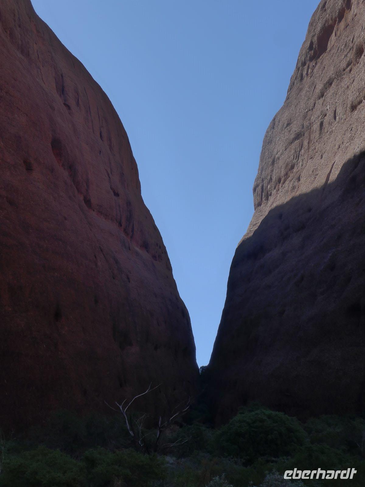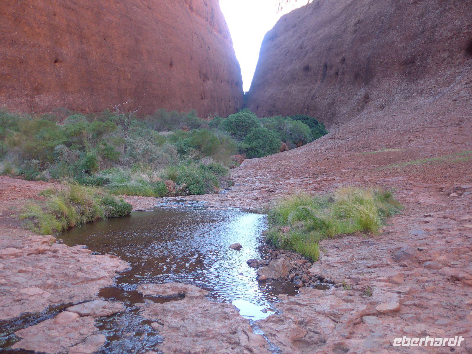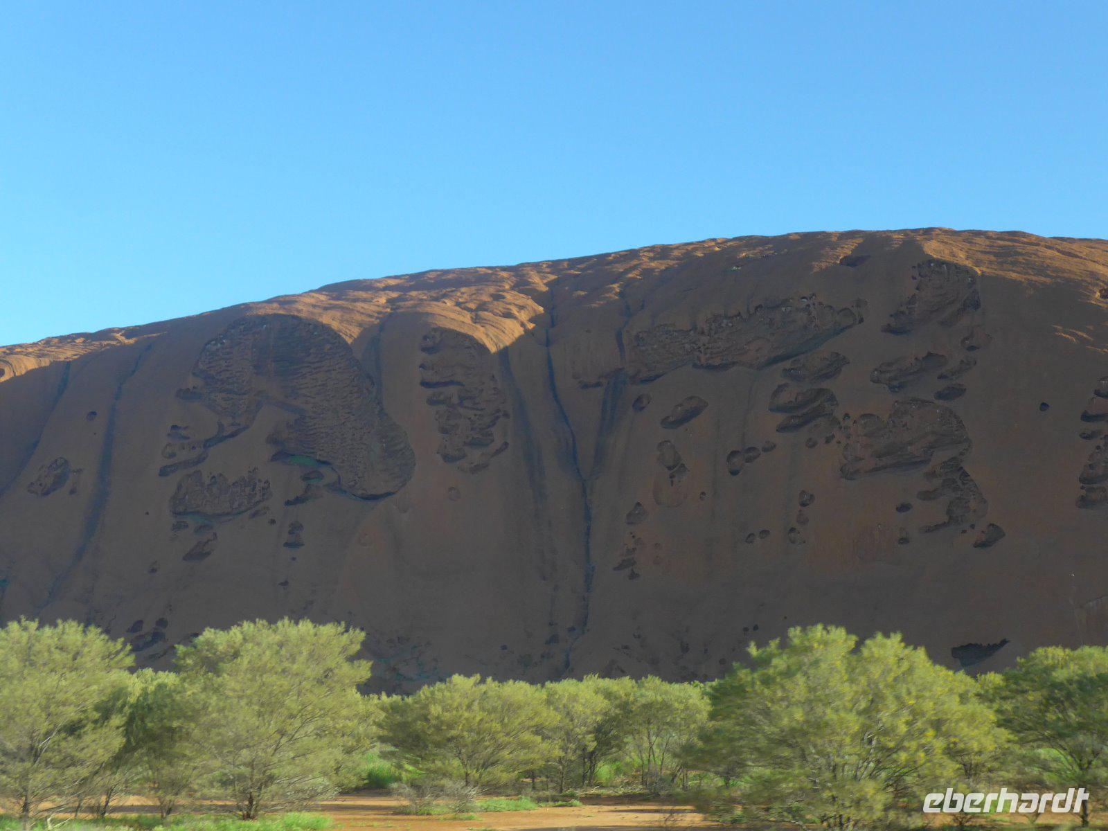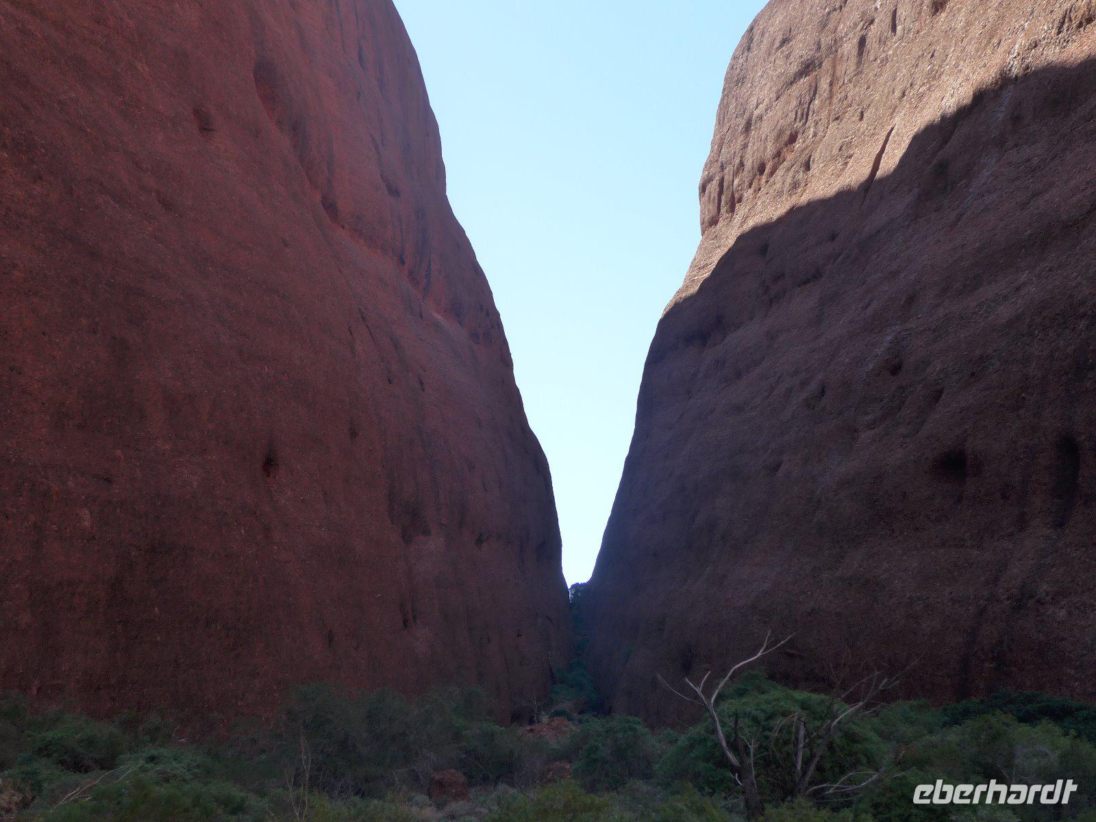 Gleich früh gegen 6 Uhr ging es dann weiter, denn auch den Sonnenaufgang am Ayers Rock wollten wir uns nicht entgehen lassen. Kennzeichnend sind in dieser Gegend die großen Temperaturschwankungen (Tags heiß und nachts mitunter sehr kalt). Bei uns waren es noch erträgliche Temperaturen. Prinzipiell ist es auch möglich, den Uluru zu besteigen. Aber für die Ureinwohner ist dieser Berg ein heiliger Fels, dessen Besteigung für sie ein Tabu ist. Wir zollen den Ureinwohnern Respekt u. verzichten auf den Aufstieg. Im Kulturzentrum der Aborigines hatten wir die Möglichkeit der Besichtigung einer interessanten Ausstellung u. es blieb auch ausreichend Zeit für den Einkauf von Kunstgegenständen - wenn nicht hier wann dann? Danach noch ein Frühstück und dann ging es weiter zu den Olgas.