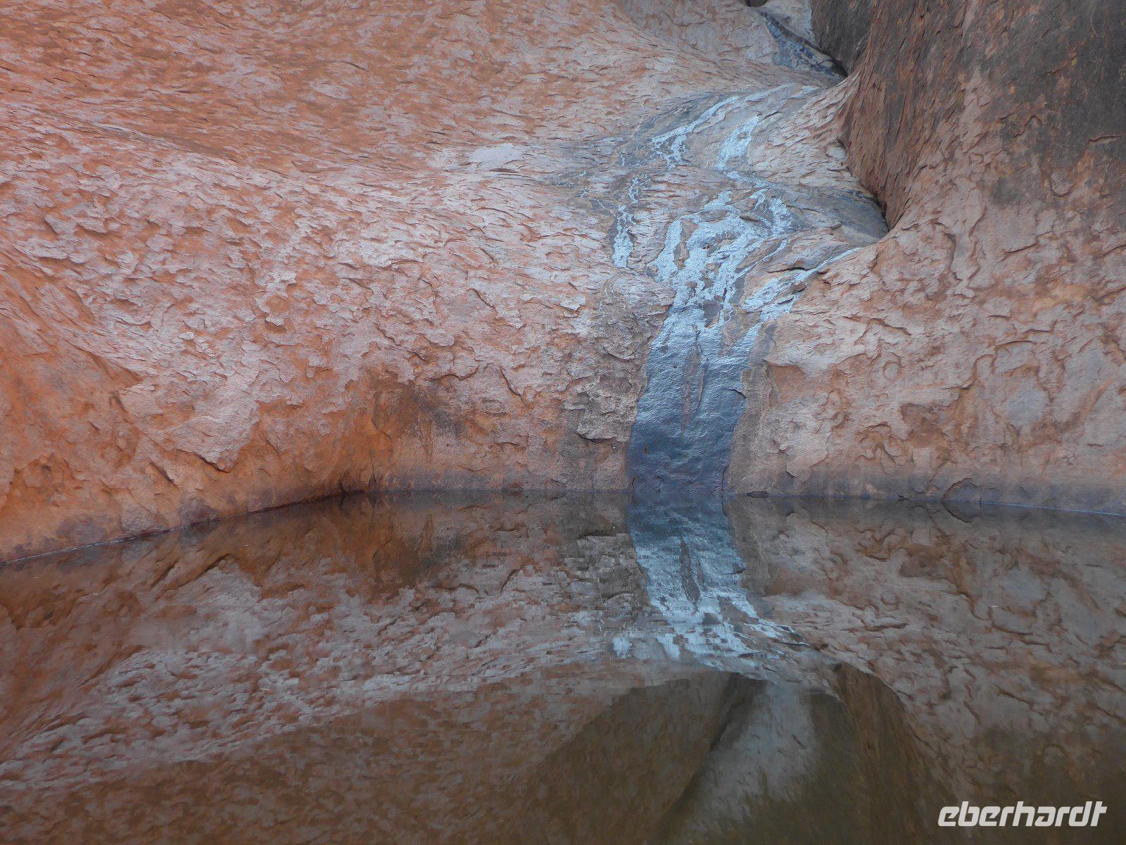 Auch das völlig entlegene Gebiete Australiens nahezu flächendeckend medizinisch versorgt werden, ist einzigartig. Der „Royal Flying Doctor Service" mit der Basisstation in Alice Springs ist heute der bestorganisierte Luftrettungsdienst der Welt! Es wird garantiert, dass kein Mensch im Notfall länger als zwei Stunden auf Hilfe warten muss - dies ist natürlich für Leute auf abgelegenen Farmen oftmals überlebenswichtig! Nach dem Frühstück besuchten wir den Stützpunkt. Neben den vielen Infos war natürlich die Besichtigung eines ausgestatteten Flugzeugs ein Muss. Danach ging es von Alice Springs etwa vierhundert Kilometer mit dem Reisebus durch die Wüste nach Yulara, dem Ausgangspunkt für einen der Höhepunkte unserer Rundreise, dem Besuch der Olgas und des Ayers Rock (Uluru). Es ging zwar fast immer nur gerade aus, aber durch die spannenden Erzählungen unserer Reiseleitung war die lange Fahrt trotzdem recht kurzweilig. Wer sieht zuerst den Uluru? Manche meinen, dass der Mount Connor, der eine ähnliche Form wie der Uluru hat, ihr Ziel sei - das führt vielfach zu Spekulationen u. Verwirrung doch dank Eva wurden wir rechtzeitig aufgeklärt und die Fahrt ging vorbei am „Doppelgänger" entspannt u. interessant weiter. Kurz noch einen Fotostopp in der Sandwüste mit Blick auf einen Salzsee u. dann erreichten wir nach kurzen Stopp im Hotel den Uluru. Mit Trinkwasser ausgestattet das hier besonders wichtig ist starten wir kurze Wanderung entlang des großen Massivs - Wandmalereien, See u. tolle Felsformationen strahlten in der Nachmittagssonne. Einzige Störung im Genuss der Farben die Wüstenfliegen - gut wer an einen Mückenschutz gedacht hatte.