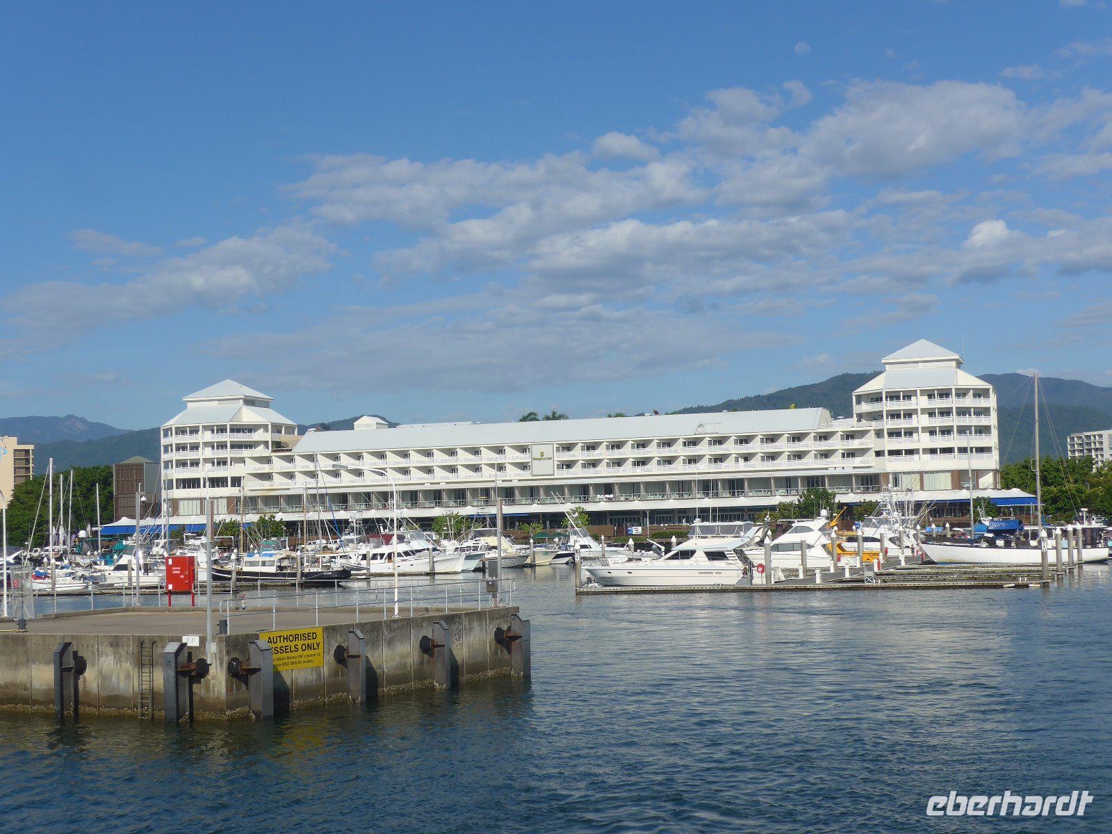 Mit reichlich Trinkwasser ausgestattet, das hier besonders wichtig ist, starteten wir einen kleinen Spaziergang am Fuße der Olgas. Die insgesamt 36 Felskuppeln ergeben viele Fotomotive. Noch schnell einen Mittagsstopp im Zentrum von Yulara und dann setzten wir unsere Rundreise fort. Die letzte Etappe führte uns von Ayers Rock mit einem Umweg über Sydney nach Cairns an der Nordostküste Australiens. Cairns ist die in den letzten Jahrzehnten am schnellsten gewachsene Stadt Australiens mit heute etwa 120.000 Einwohnern. Beschauliches Tropenflair vermitteln noch die im kolonialen Stil auf Pfählen errichteten und mit hübschen Veranden versehenen Wohnhäuser. Die Dunkelheit verwehrte den Blick auf diese Gebäude - aber Vorfreude ist doch schöner als alles Andere.