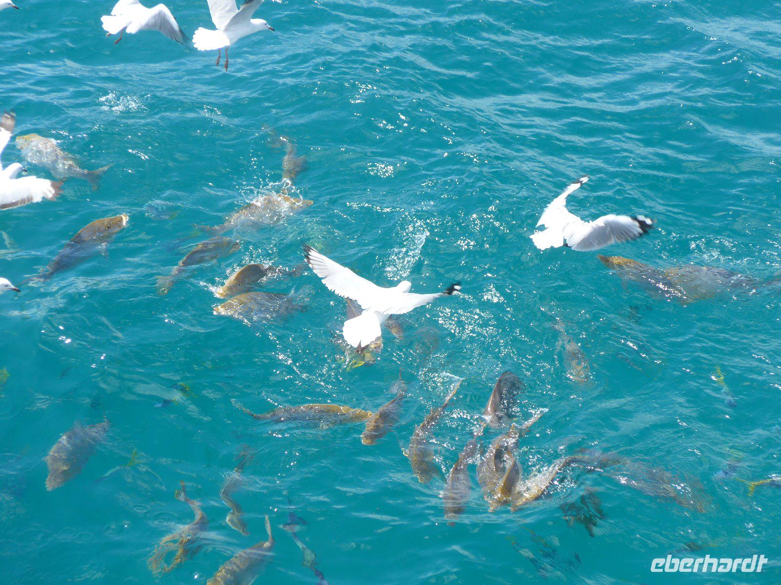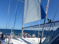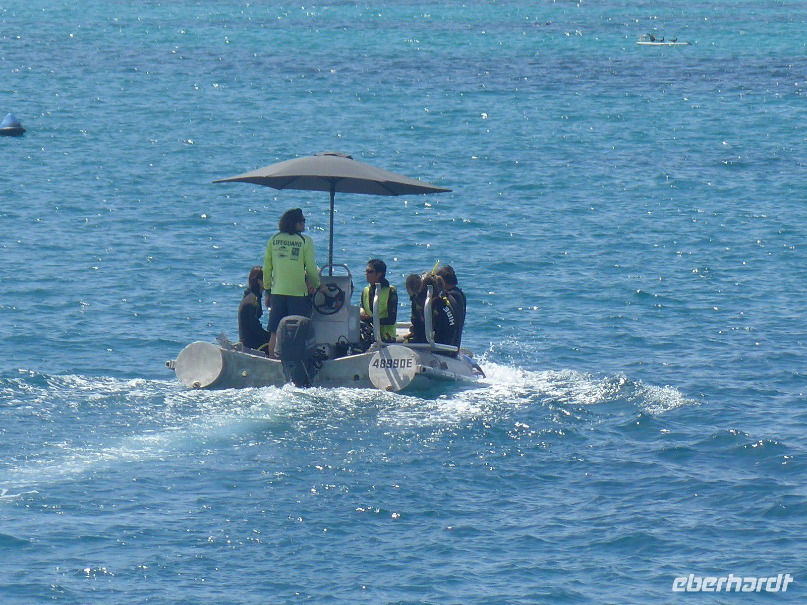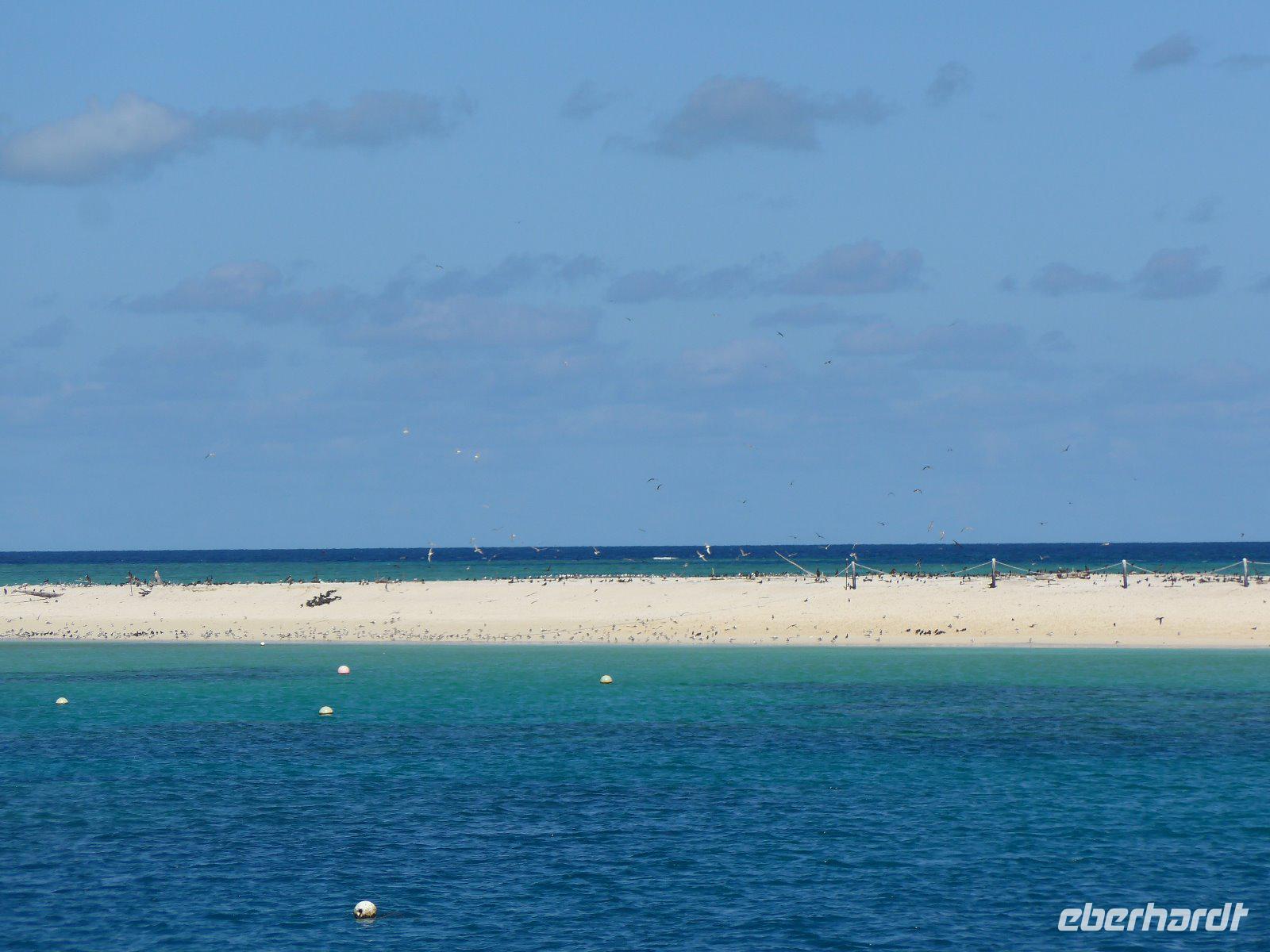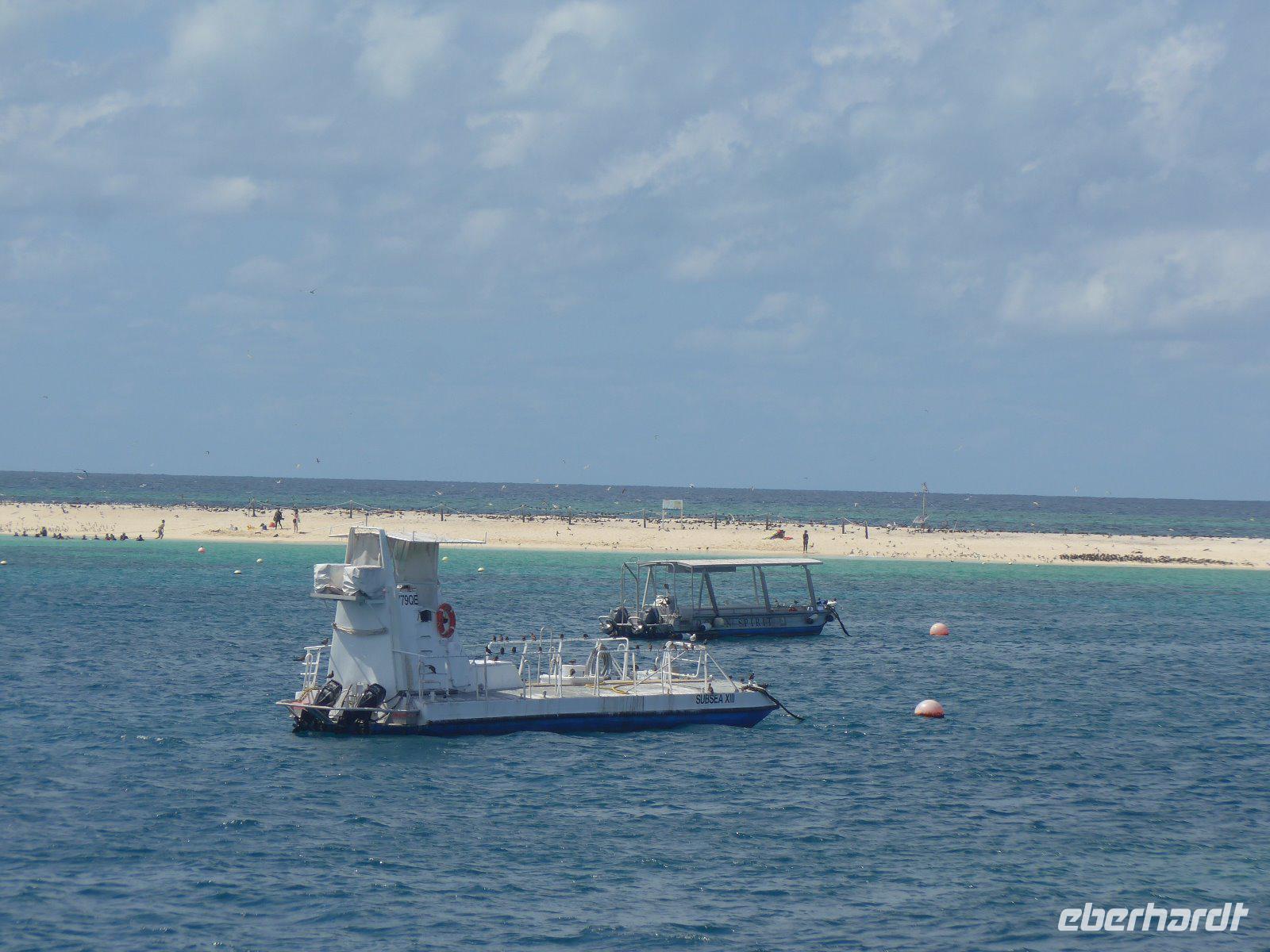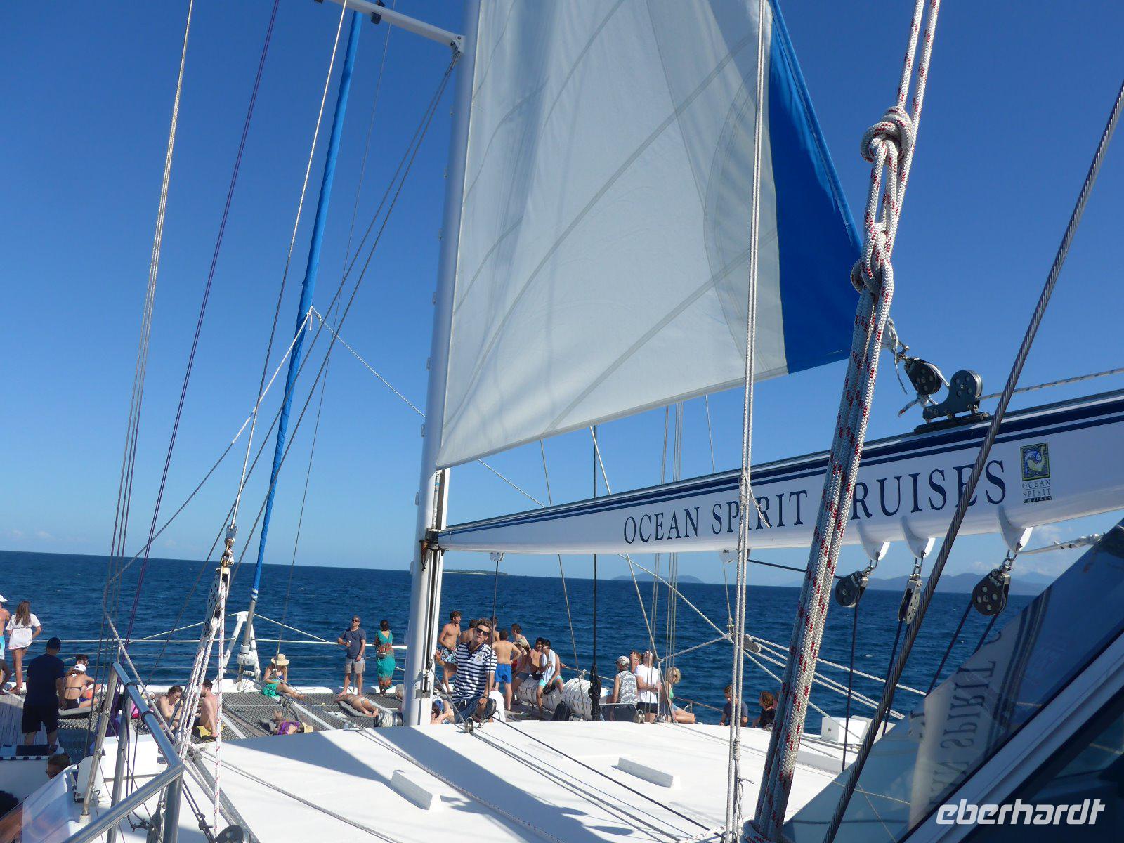 Vom Hafen in Cairns ging es an Bord des luxuriösen Segel-Katamarans „Ocean Spirit". Es erwartete uns ein unvergesslicher Tag mit einer Fülle an Aktivitäten, um die einzigartige Rifflandschaft vor der Insel „Michaelmas Cay" in vollen Zügen zu genießen. Ob Schnorcheln oder Semi-Sub fahren oder auch passiv und entspannt - man hat die Wahl! Das Great Barrier Reef, das weltweit größte Korallenriff, ist die Heimat unzähliger tropischer, farbenprächtiger Fische, die in einträchtiger Symbiose mit den Korallen leben. Die Vielfalt lässt sich dabei nur erahnen - befindet man sich einmal unter Wasser, entdeckt man ständig neue Arten und Formen. Dazu zählen Seesterne, Krustentiere, Meeresschildkröten, Muscheln und Haie. Wir fuhren alle mit einem Glasbodenboot, einige von uns schnorchelten und manche badeten - es war ein entspannter Tag im Einklang mit der Natur.