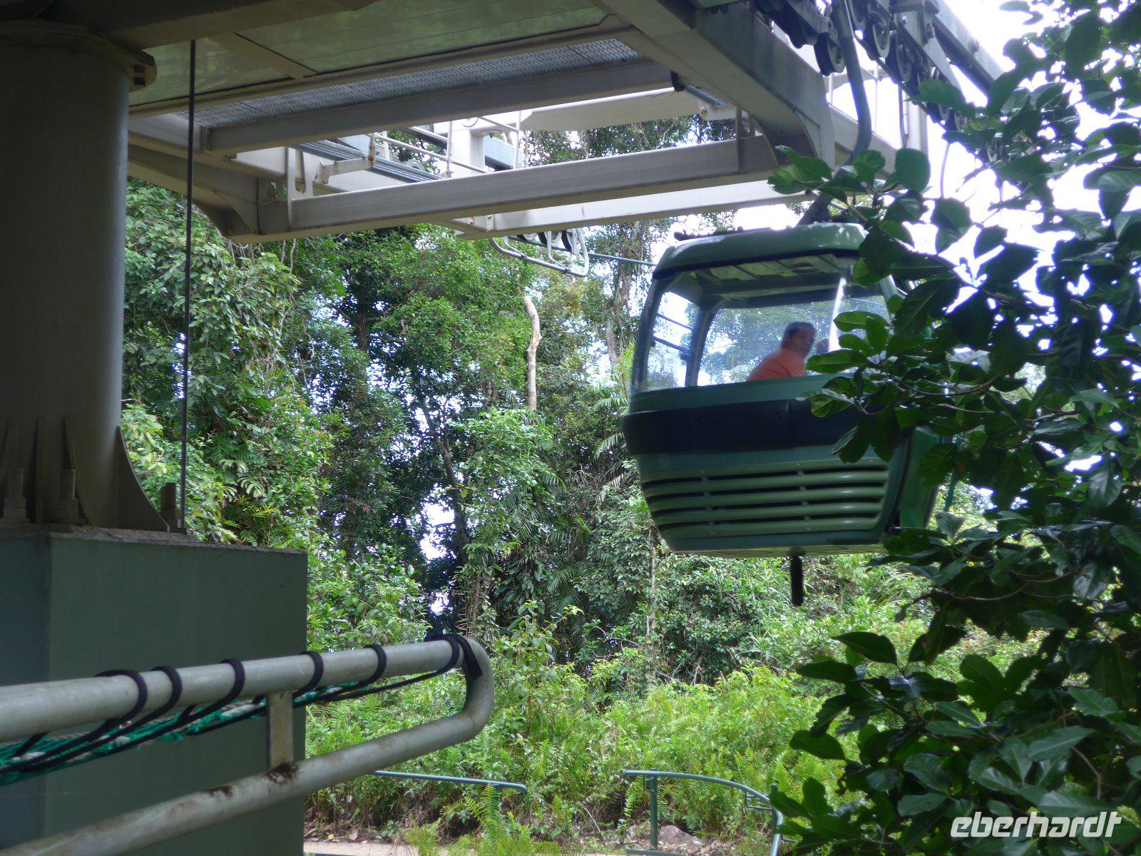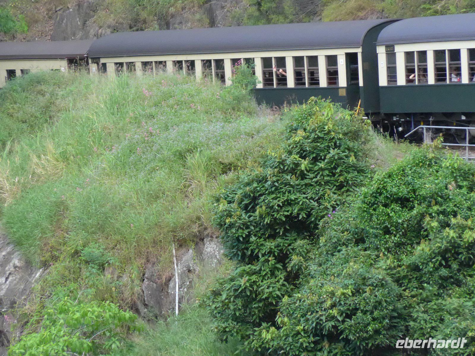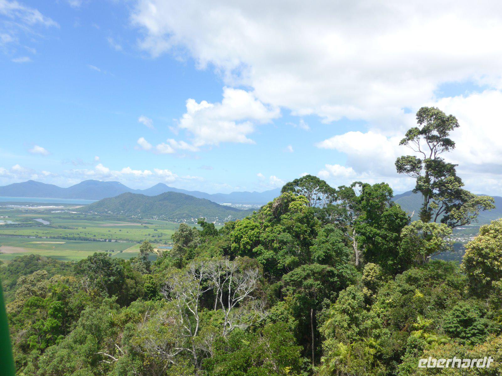 Am heutigen Morgen ging es zum „Tjapukai Aborigine Cultural Park", es handelt sich hier um eine durchdachte und professionelle Mischung aus Show und Informationen der Aborigines. Uns wurden beispielsweise die Geschichte, Kultur und die Medizin der Aborigines nähergebracht. Ein Bumerang-Wurf - kein leichtes Unterfangen! Hier war technich aber auch jede Menge Übung gefragt um einen ordentlichen Wurf zu absolvieren. Für manche das erste Mal - keine leichte Aufgabe. Dennoch gelang vielen ein ordentlicher Wurf. Die Gondelbahn „Skyrail" ist eine der großen Attraktionen von Cairns gleich neben dem Kulturzentrum. Der Schutz der Regenwälder hat sich in diesem Fall durchsetzen können - die Alternative wäre übrigens ein neuer Highway gewesen. Auf einer ca. 7,5 Kilometer langen Strecke schwebten wir über den tropischen Regenwald nach Kuranda. Von oben öffnet sich der Regenwald in neuen Perspektiven. Neu für uns war aber, dass es hier auch Thüringer Rostbratwurst u. deutsches Bier gab - einem Deutschen sei Dank, der dies hier möglich machte. Von Kuranda aus fuhren wir auf der historischen Kuranda Railway-Bahnstrecke zurück nach Cairns. Die Bahnlinie wurde 1891 fertiggestellt und führte uns durch dichten Regenwald, Schluchten und weitläufige Zuckerrohrfelder. Ein unvergessliches Erlebnis, dass auch heute mit zahlreichen Fotos festgehalten wurde.
