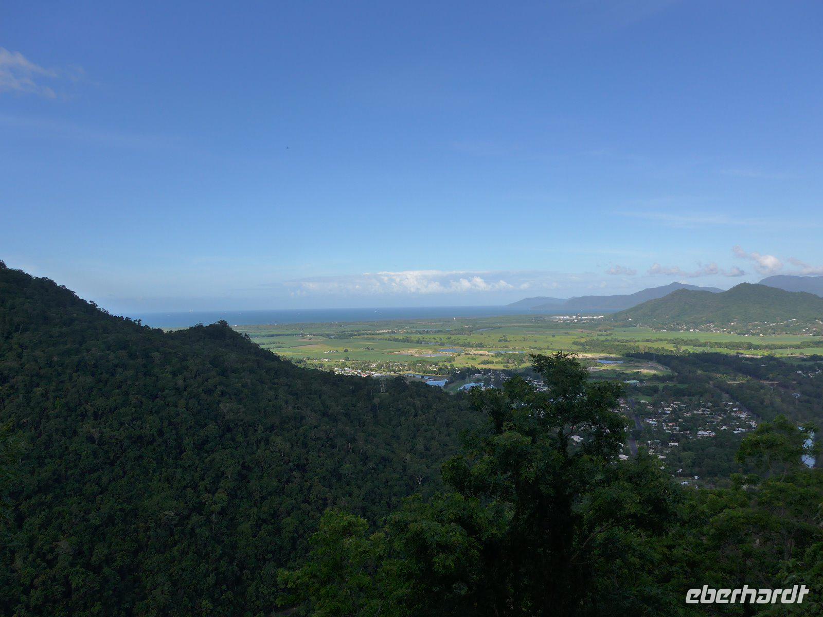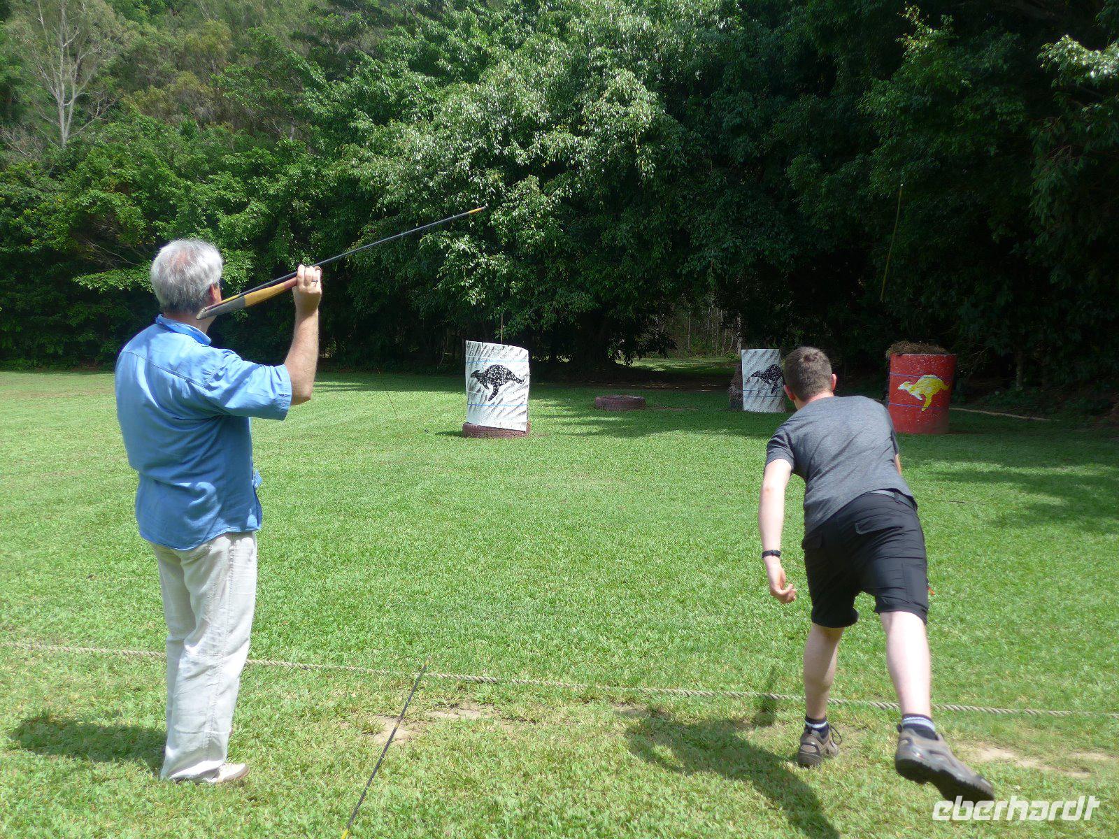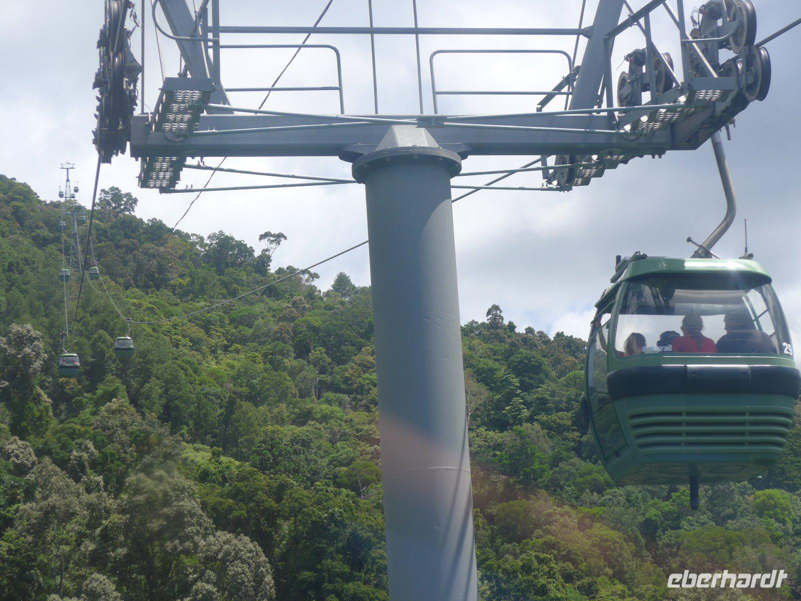 Am heutigen Morgen ging es zum „Tjapukai Aborigine Cultural Park", es handelt sich hier um eine durchdachte und professionelle Mischung aus Show und Informationen der Aborigines. Uns wurden beispielsweise die Geschichte, Kultur und die Medizin der Aborigines nähergebracht. Ein Bumerang-Wurf - kein leichtes Unterfangen! Hier war technich aber auch jede Menge Übung gefragt um einen ordentlichen Wurf zu absolvieren. Für manche das erste Mal - keine leichte Aufgabe. Dennoch gelang vielen ein ordentlicher Wurf. Die Gondelbahn „Skyrail" ist eine der großen Attraktionen von Cairns gleich neben dem Kulturzentrum. Der Schutz der Regenwälder hat sich in diesem Fall durchsetzen können - die Alternative wäre übrigens ein neuer Highway gewesen. Auf einer ca. 7,5 Kilometer langen Strecke schwebten wir über den tropischen Regenwald nach Kuranda. Von oben öffnet sich der Regenwald in neuen Perspektiven. Neu für uns war aber, dass es hier auch Thüringer Rostbratwurst u. deutsches Bier gab - einem Deutschen sei Dank, der dies hier möglich machte. Von Kuranda aus fuhren wir auf der historischen Kuranda Railway-Bahnstrecke zurück nach Cairns. Die Bahnlinie wurde 1891 fertiggestellt und führte uns durch dichten Regenwald, Schluchten und weitläufige Zuckerrohrfelder. Ein unvergessliches Erlebnis, dass auch heute mit zahlreichen Fotos festgehalten wurde.