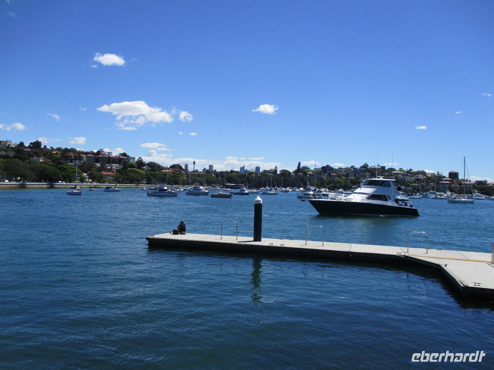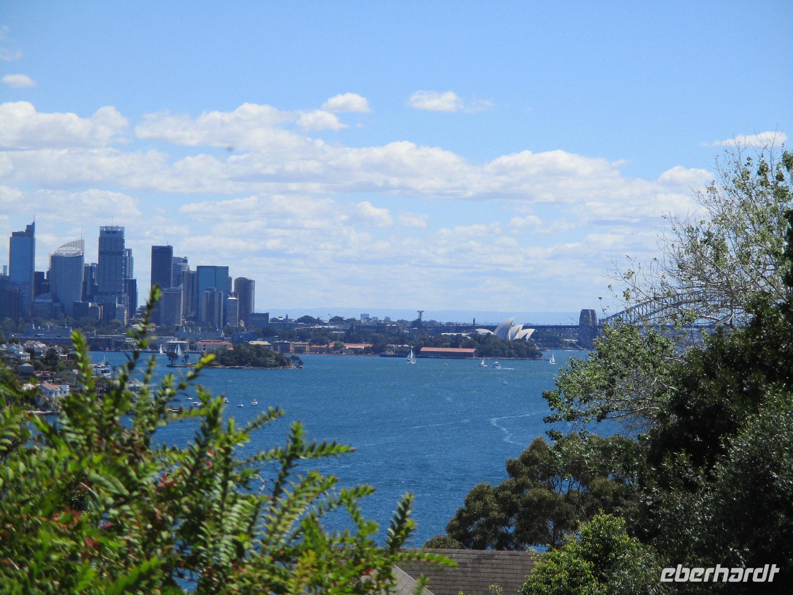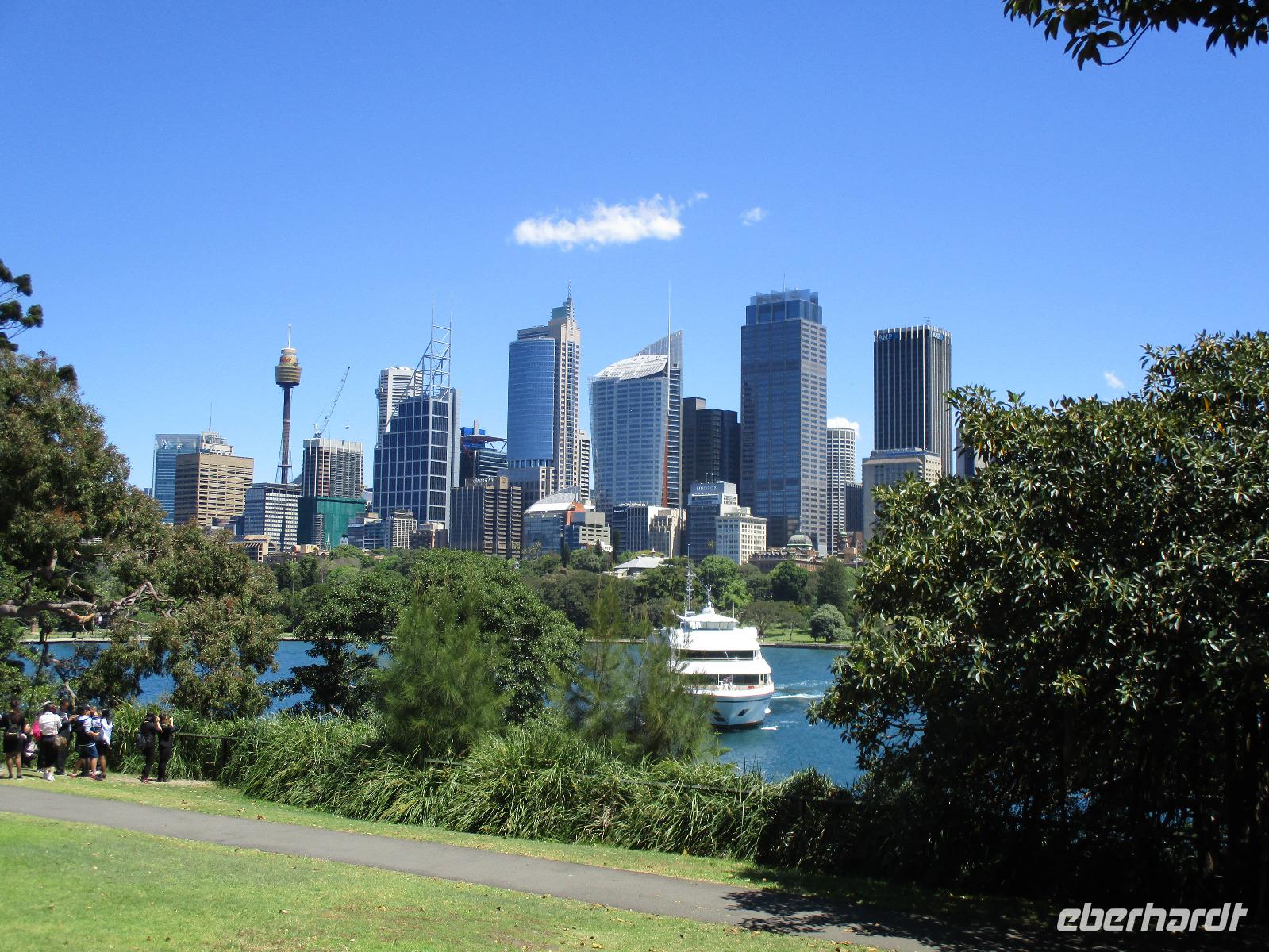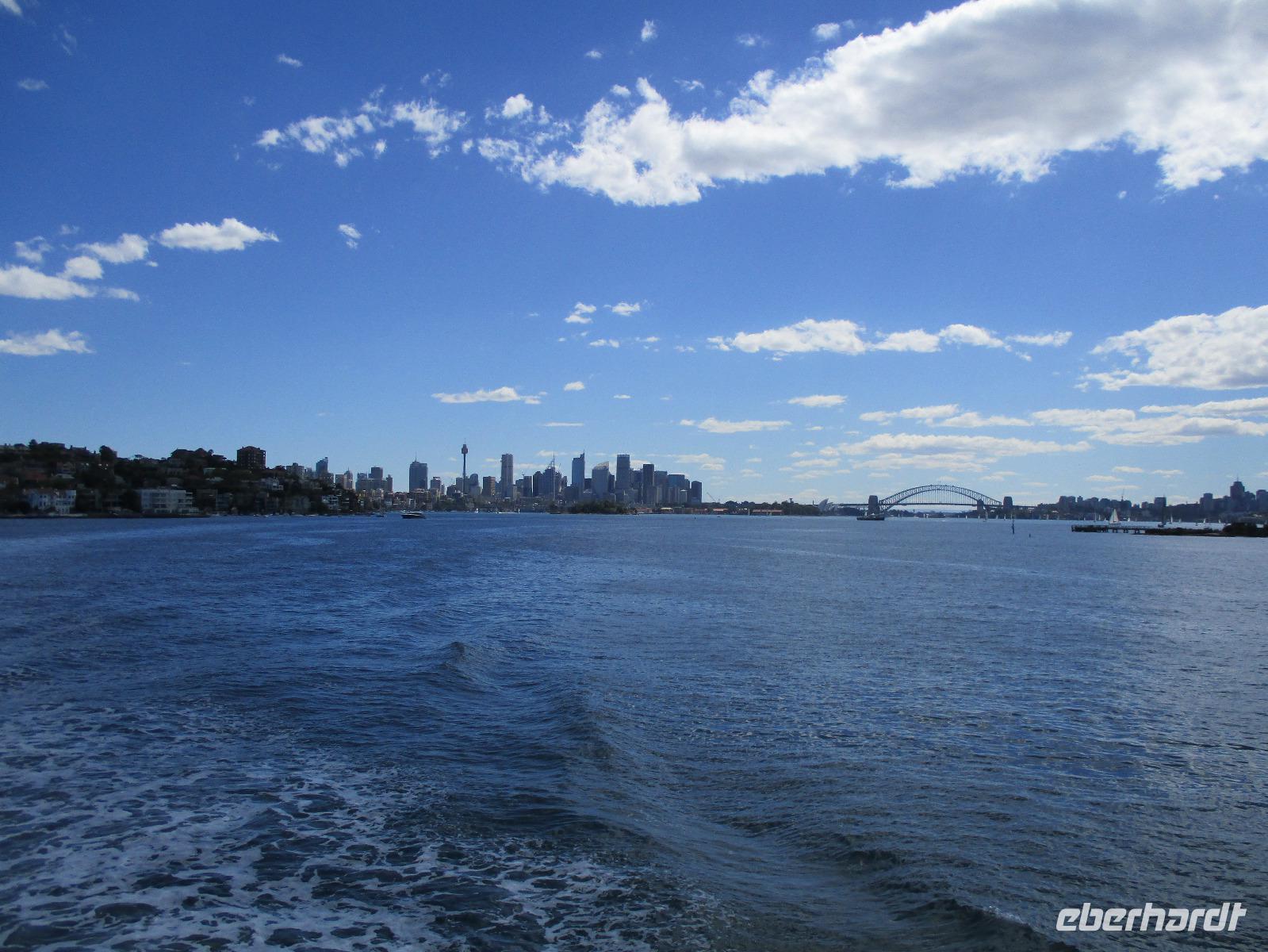 Nach dem Frühstück trafen sich die meisten Gäste, um gemeinsam zur Harbour-Bridge und darüber hinweg zu spazieren. Wir genossen schöne Aussichten und auch die vielen Schiffe auf dem Wasser im Hafen der Stadt. Ein großes Kreuzfahrtschiff dominierte die gesamte Kulisse. Nach dem Spaziergang begann am Mittag dann ein geführter Spaziergang mit unserer Reiseleiterin Uli. Wir gingen durch die Straßen der Stadt in Richtung Hafen. Unterwegs erfuhren wir viel von Uli über das Leben in der Stadt. Die berühmte Oper war unser erstes Ziel an diesem Nachmittag. Bei einer Führung in diesem berühmten Gebäude erfuhren wir interessante Details über die Entstehung und die Nutzung des markanten Operngebäudes. In einige der Säle konnten wir hineinschauen, im großen Konzertsaal kurz einer Probe beiwohnen. Nach dem Besuch der Oper begaben wir uns auf ein Schiff, um jetzt vom Wasser aus die Stadt zu sehen. Wir erkannten einige Orte, an denen wir am Vortag zur Stadtrundfahrt gewesen waren. Beeindruckend natürlich wieder die Oper und die Hafenbrücke. Entlang des Ufers neben der Oper befindet sich der Botanische Garten, den wir vom Wasser aus auch gut erkennen konnten. Bei einem Kaffee und Keksen genossen wir den herrlichen Nachmittag mit Sonnenschein auf dem Wasser. Im Anschluss daran hatten wir Freizeit in der Stadt, einige gingen zusammen durch den Botanischen Garten, danach vorbei an der katholischen Kathedrale, über den Nudelmarkt und vorbei am berühmten Kaufhaus Queen Victoria Building. Der Nachmittag endete wieder in der Nähe der Oper, an der Waterfront bei einem gemeinsamen Abendessen in einem der Fischrestaurants mit Blick auf den Hafen. Gemeinsam spazierten wir nach dem Essen zu unserem Hotel, um unsere zweite Nacht in Sydney zu verbringen.