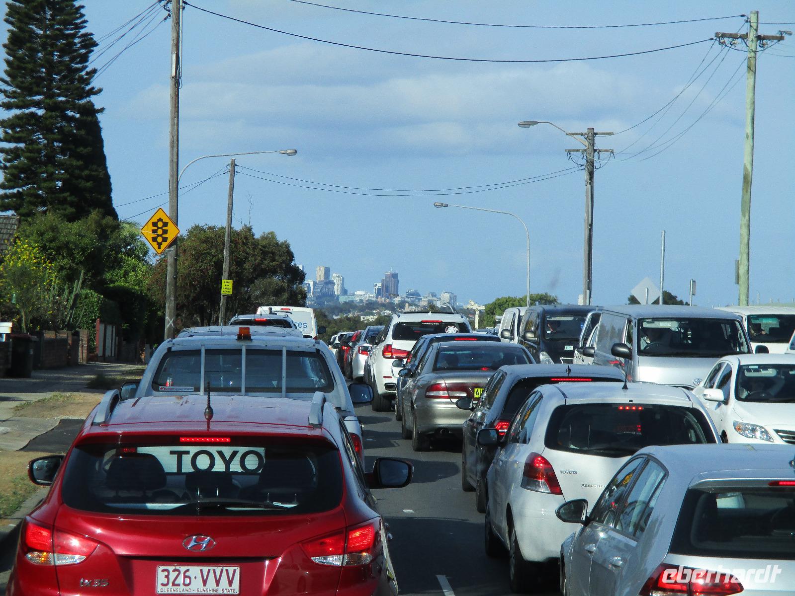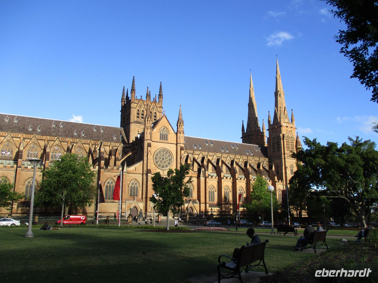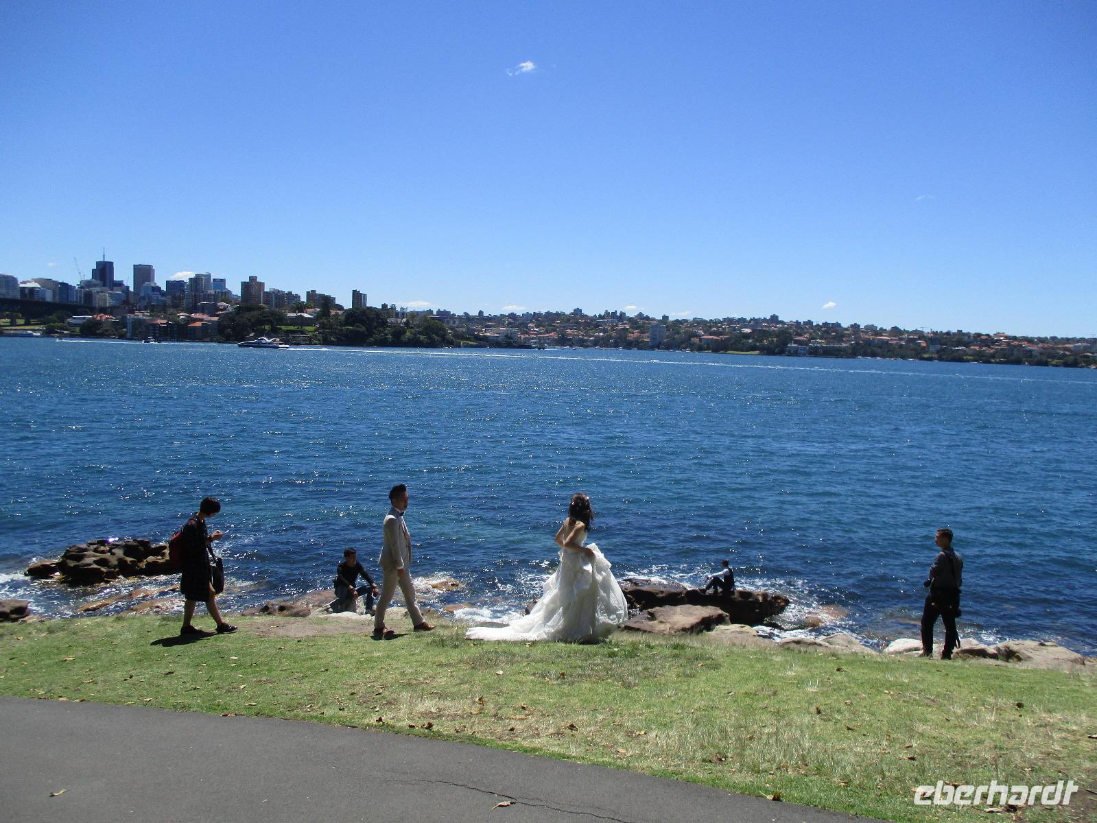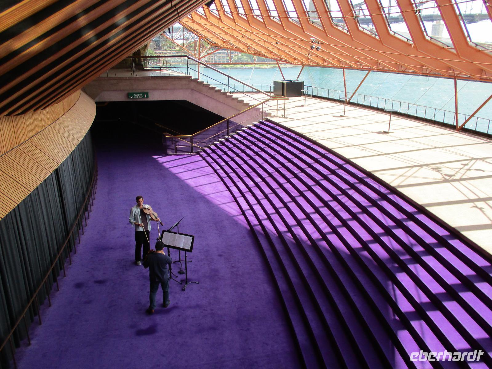Nach dem Frühstück trafen sich die meisten Gäste, um gemeinsam zur Harbour-Bridge und darüber hinweg zu spazieren. Wir genossen schöne Aussichten und auch die vielen Schiffe auf dem Wasser im Hafen der Stadt. Ein großes Kreuzfahrtschiff dominierte die gesamte Kulisse. Nach dem Spaziergang begann am Mittag dann ein geführter Spaziergang mit unserer Reiseleiterin Uli. Wir gingen durch die Straßen der Stadt in Richtung Hafen. Unterwegs erfuhren wir viel von Uli über das Leben in der Stadt. Die berühmte Oper war unser erstes Ziel an diesem Nachmittag. Bei einer Führung in diesem berühmten Gebäude erfuhren wir interessante Details über die Entstehung und die Nutzung des markanten Operngebäudes. In einige der Säle konnten wir hineinschauen, im großen Konzertsaal kurz einer Probe beiwohnen. Nach dem Besuch der Oper begaben wir uns auf ein Schiff, um jetzt vom Wasser aus die Stadt zu sehen. Wir erkannten einige Orte, an denen wir am Vortag zur Stadtrundfahrt gewesen waren. Beeindruckend natürlich wieder die Oper und die Hafenbrücke. Entlang des Ufers neben der Oper befindet sich der Botanische Garten, den wir vom Wasser aus auch gut erkennen konnten. Bei einem Kaffee und Keksen genossen wir den herrlichen Nachmittag mit Sonnenschein auf dem Wasser. Im Anschluss daran hatten wir Freizeit in der Stadt, einige gingen zusammen durch den Botanischen Garten, danach vorbei an der katholischen Kathedrale, über den Nudelmarkt und vorbei am berühmten Kaufhaus Queen Victoria Building. Der Nachmittag endete wieder in der Nähe der Oper, an der Waterfront bei einem gemeinsamen Abendessen in einem der Fischrestaurants mit Blick auf den Hafen. Gemeinsam spazierten wir nach dem Essen zu unserem Hotel, um unsere zweite Nacht in Sydney zu verbringen.
