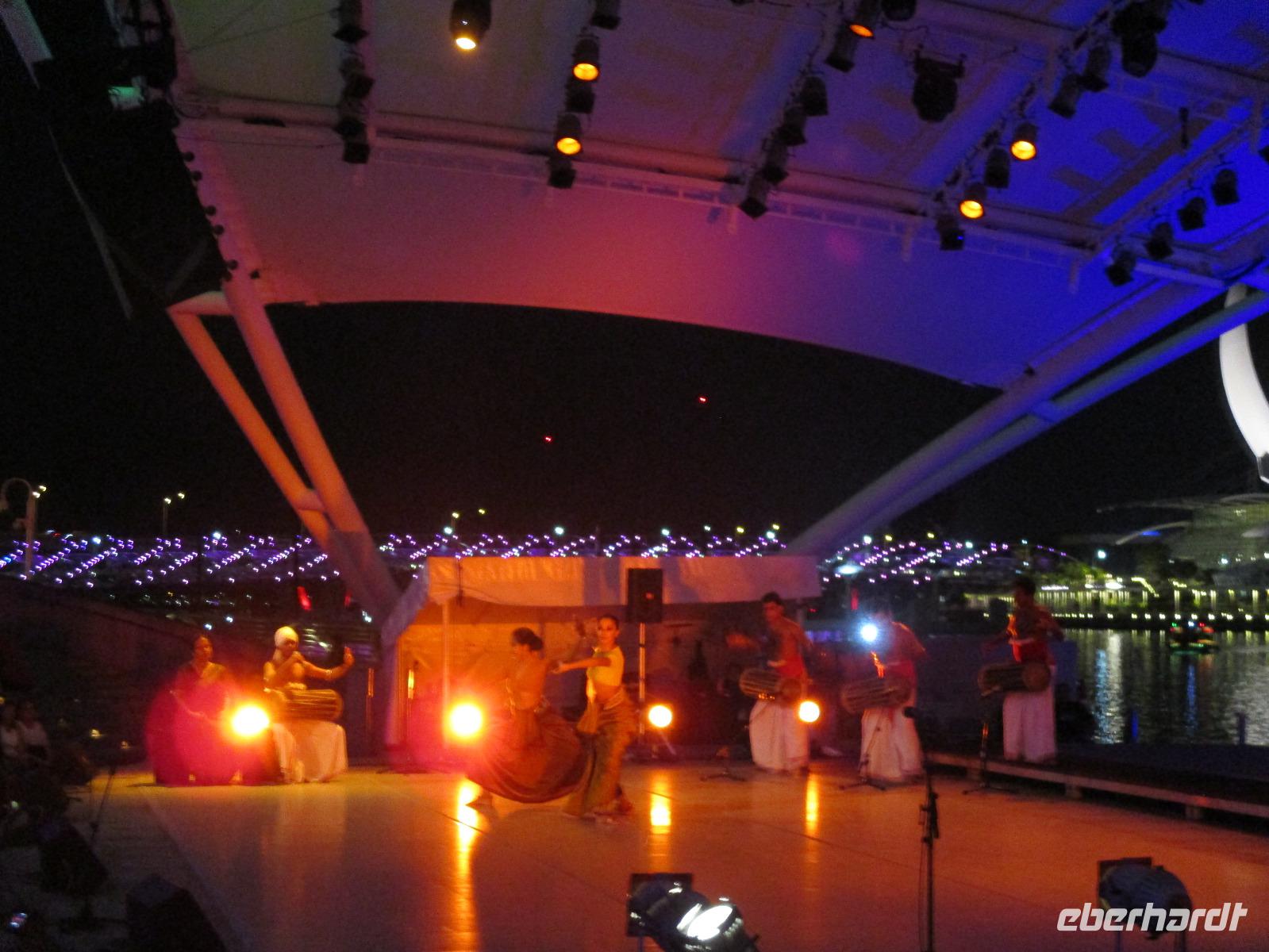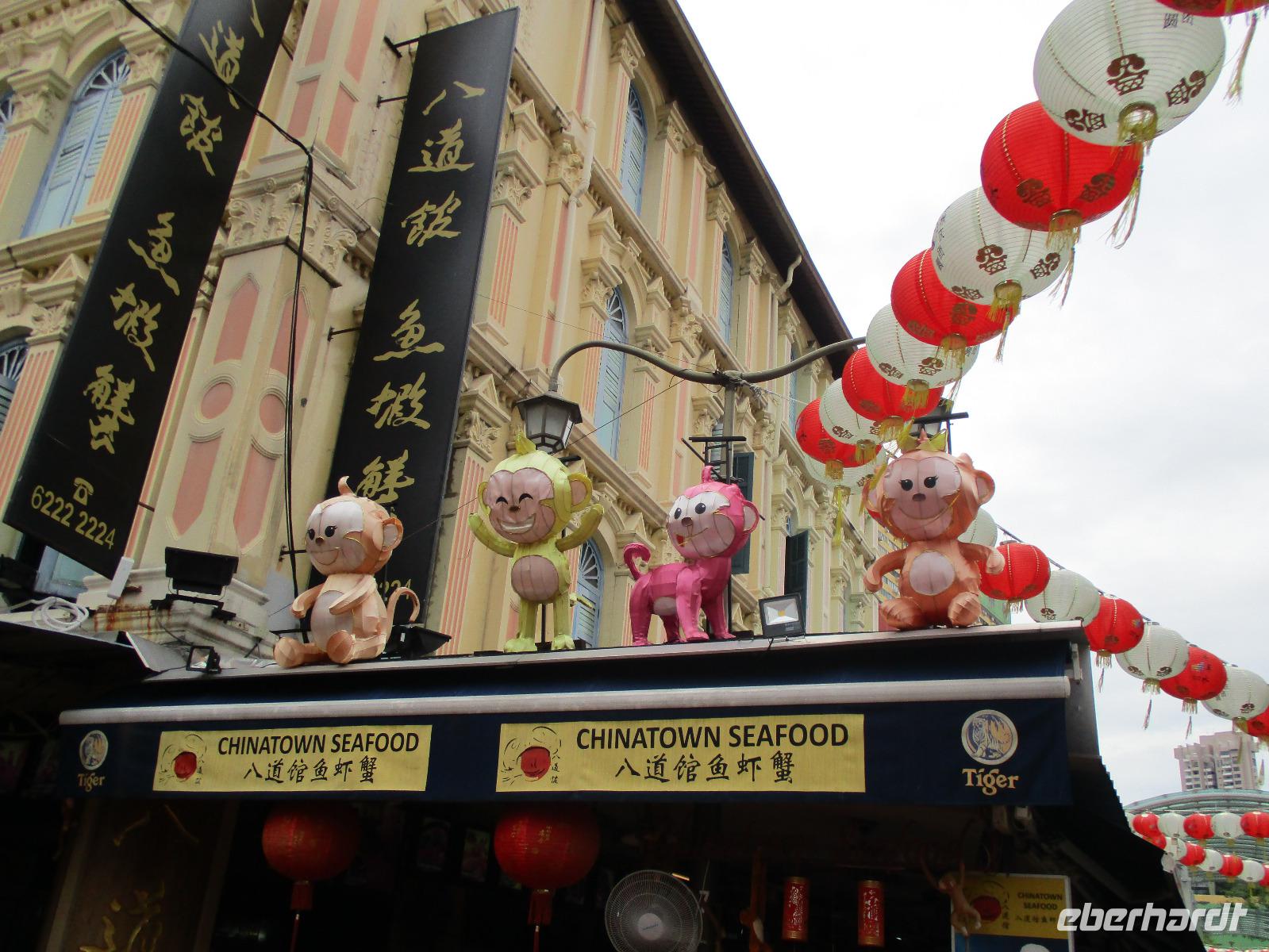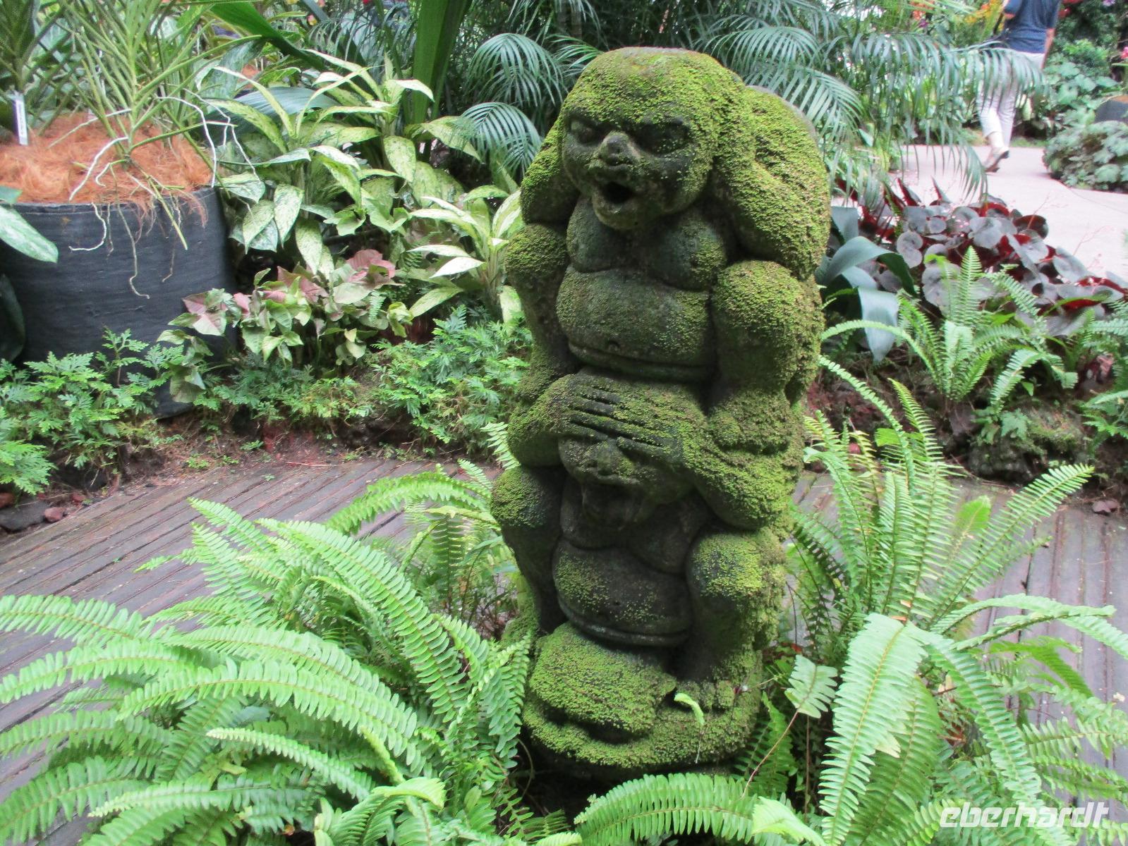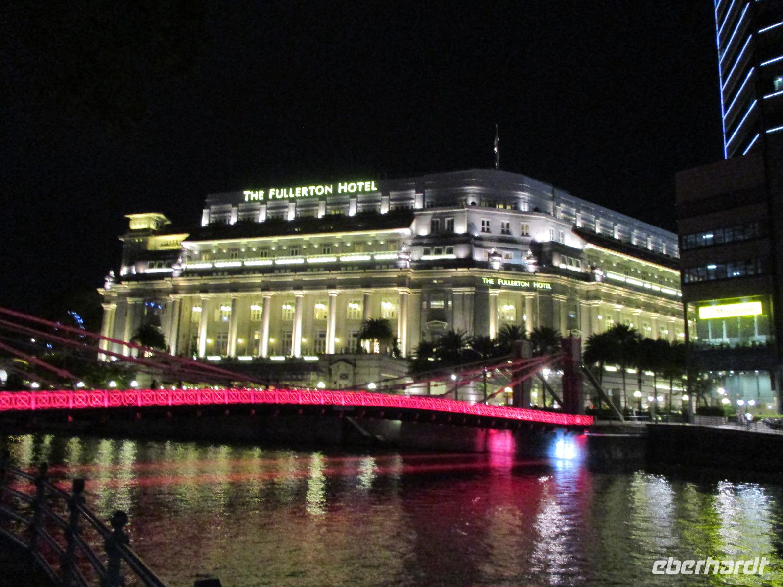 In Frankfurt auf dem Flughafen trafen wir als Gruppe zusammen, einige waren von Berlin, andere aus Leipzig und die meisten Gäste aus Dresden hierher geflogen. Gemeinsam bestiegen wir das Flugzeug, das uns nach Singapur bringen sollte. Am Nachmittag des 2. Reisetages landeten wir in Singapur. David, unser örtlicher Reiseleiter, holte uns ab. Mit dem Bus fuhren wir in die Stadt und bezogen unsere Zimmer im Park Hotel Clarke Quay in Singapur. Nach kurzem Verschnaufen trafen wir uns wieder und spazierten entlang des belebten und romantisch beleuchteten Singapur-Flusses in Richtung Marina Bay. Dort gibt es ein modernes Gebäude, das Marina Bay Sands, das den Spitznamen „Bügelbrett" trägt. Es beherbergt ein Hotel, ein Casino und ein großes Einkaufszentrum. Jeden Abend gibt es dort eine Lasershow, die auch wir bewundern wollten. Pünktlich um 20 Uhr begann sie, wir beobachteten vom gegenüber liegenden Ufer der Bucht das Schauspiel mit verschieden farbigen Lichtern und Musikuntermalung. Direkt neben uns befand sich eines der Wahrzeichen der Stadt: der wasserspeiende Löwe mit Fischschwanz. Nach der Lasershow bummelten wir noch um die Bucht herum, aßen eine Kleinigkeit im Food Court des Marina Bay Sands und fuhren zum Abschluss noch mit dem Lift hinauf zur Aussichtsplattform dieses Gebäudes und bestaunten nun von oben die hell erleuchtete Stadt. Direkt unter uns erkannten wir den Garden by the Bay, der mit seinen künstlichen Bäumen eines der neuesten Wahrzeichen Sydneys darstellt. Müde aber mit vielen interessanten Eindrücken begaben wir uns in unser Hotel für die Nacht.
