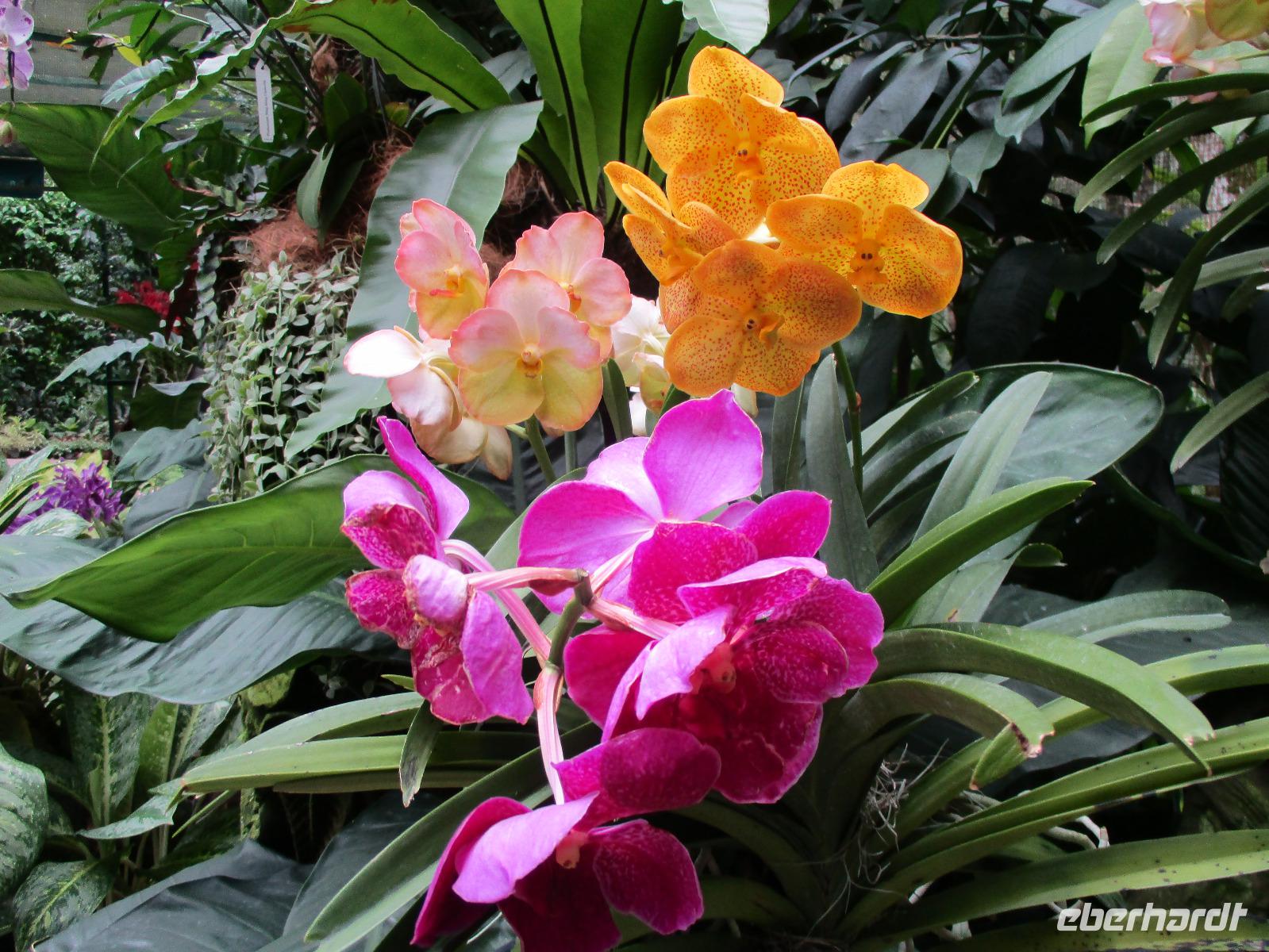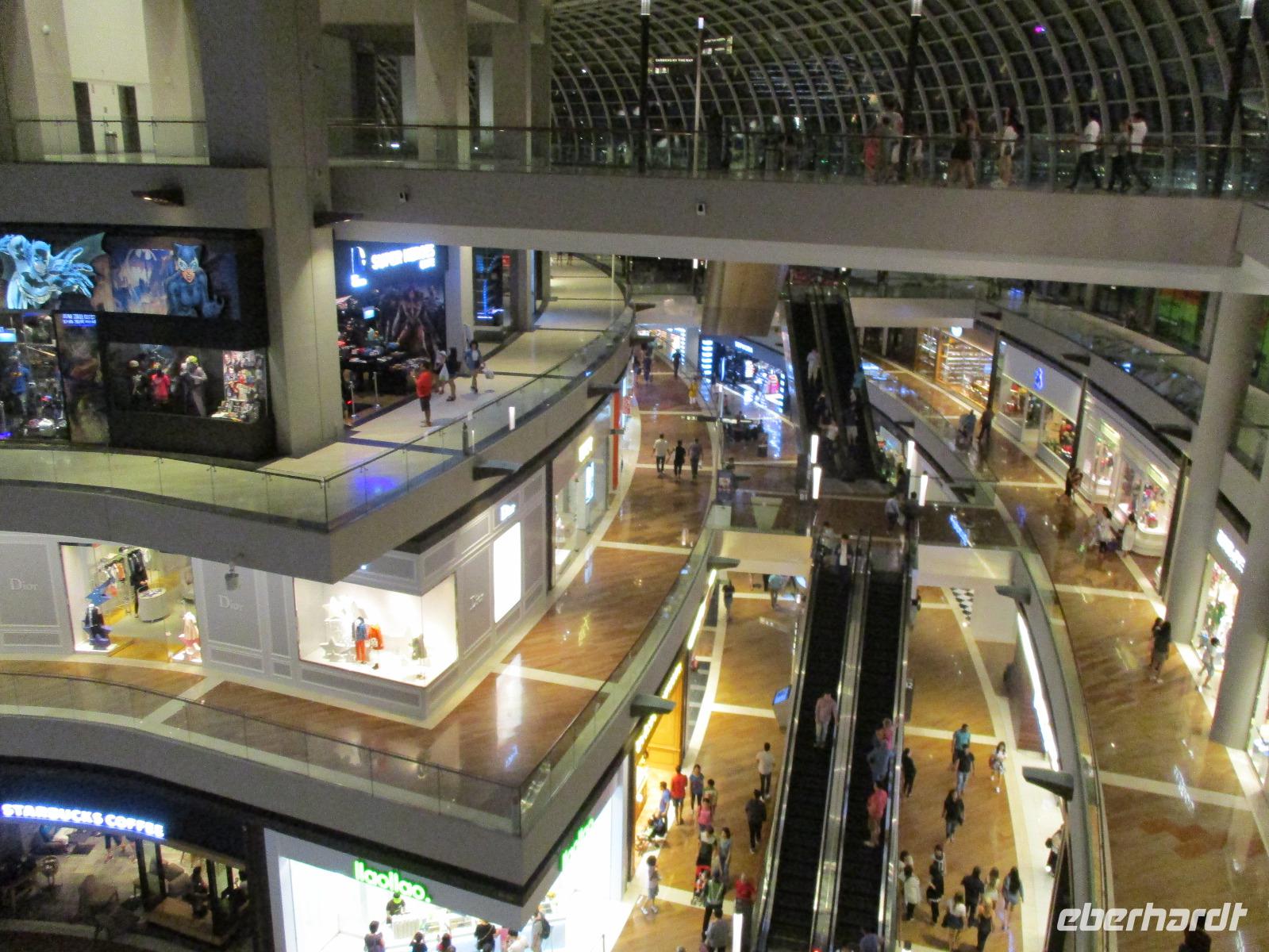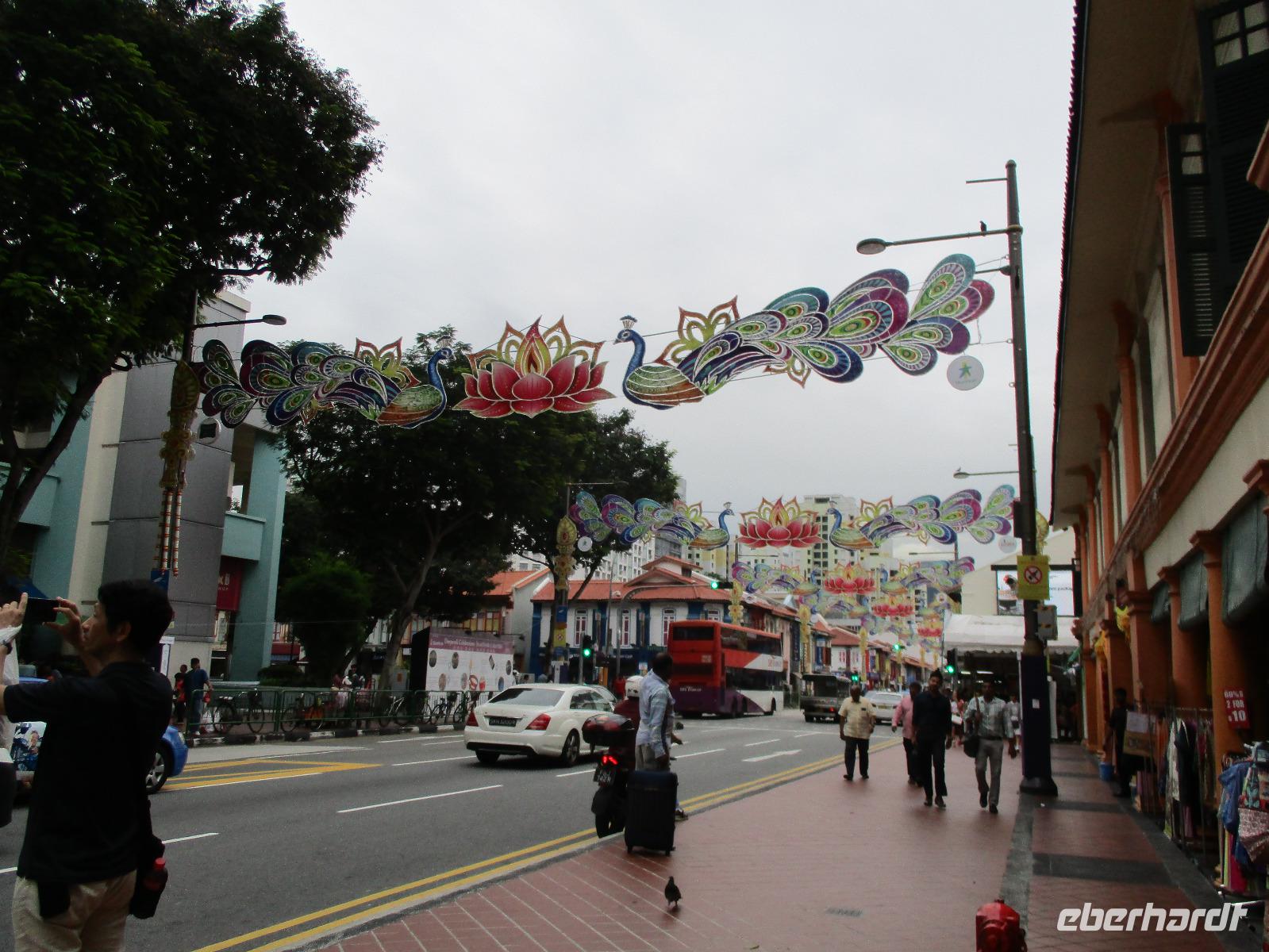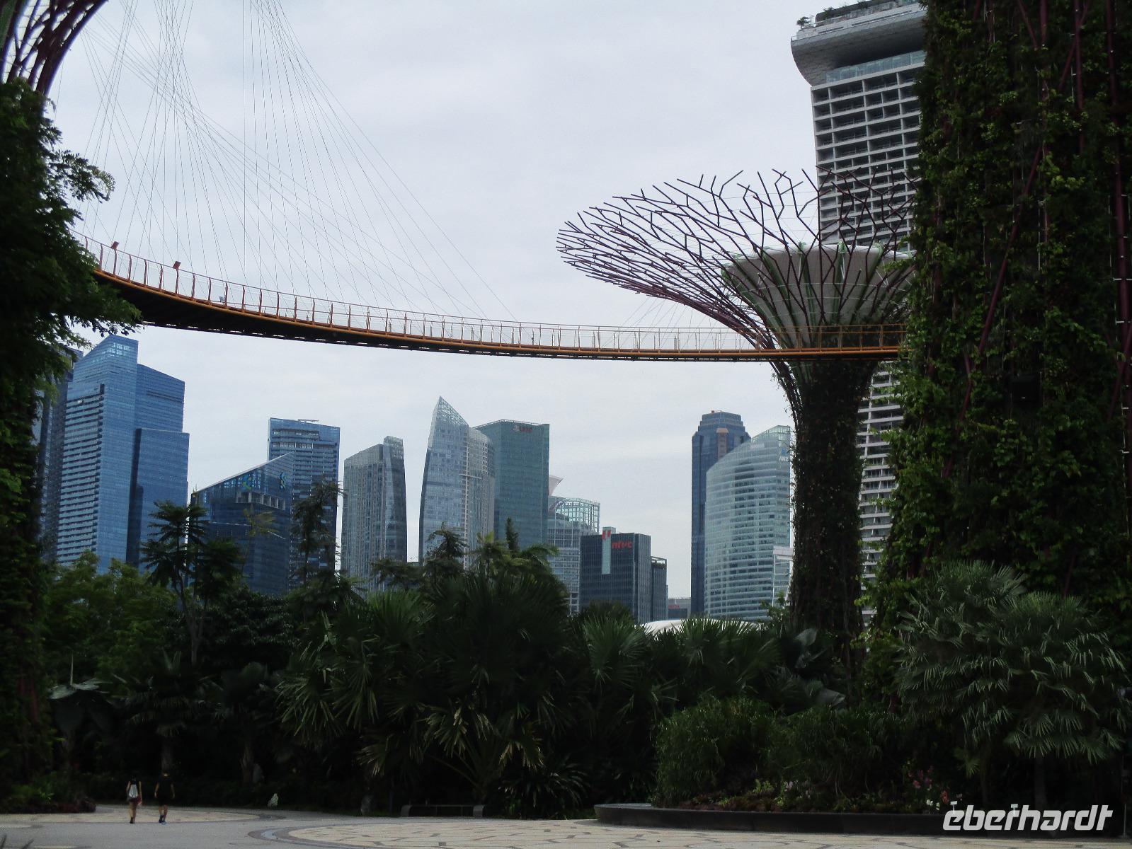Bereits kurz nach dem Frühstück trafen wir uns in der Lobby des Hotels, um mit mehreren Taxen zum Singapoure Flyer zu fahren, das ist ein Riesenrad mit geschlossenen Gondeln, in denen man hoch über der Stadt die Aussicht genießen kann. Es war nur wenig los an diesem Morgen, so dass wir recht schnell in einer Gondel für unsere Gruppe nach oben fuhren. Immer höher hinauf stiegen wir und genossen dabei den Blick über die Stadt. Direkt unter uns erkannten wir einen Teil der Formel-1-Strecke. Nach einem halbstündigen Überblick über Singapur erreichten wir wieder festen Boden, zurück zum Hotel spazierten wir wieder am Fluss entlang. Bereits kurz nach dem Mittag trafen wir David, unseren Reiseleiter, am Hotel, um mit ihm auf einer Stadtrundfahrt Singapur besser kennen zu lernen. Wir entdeckten jetzt diese moderne Großstadt vom Bus aus, hin und wieder stiegen wir aus und besuchten unter anderem die Gardens by the Bay, Chinatown, Little India und den Orchideengarten der Stadt. Unsere Stadtrundfahrt endete am Flughafen. David begleitete uns bis zum Flugschalter, denn wir traten noch an diesem Abend unseren Weiterflug nach Sydney an.