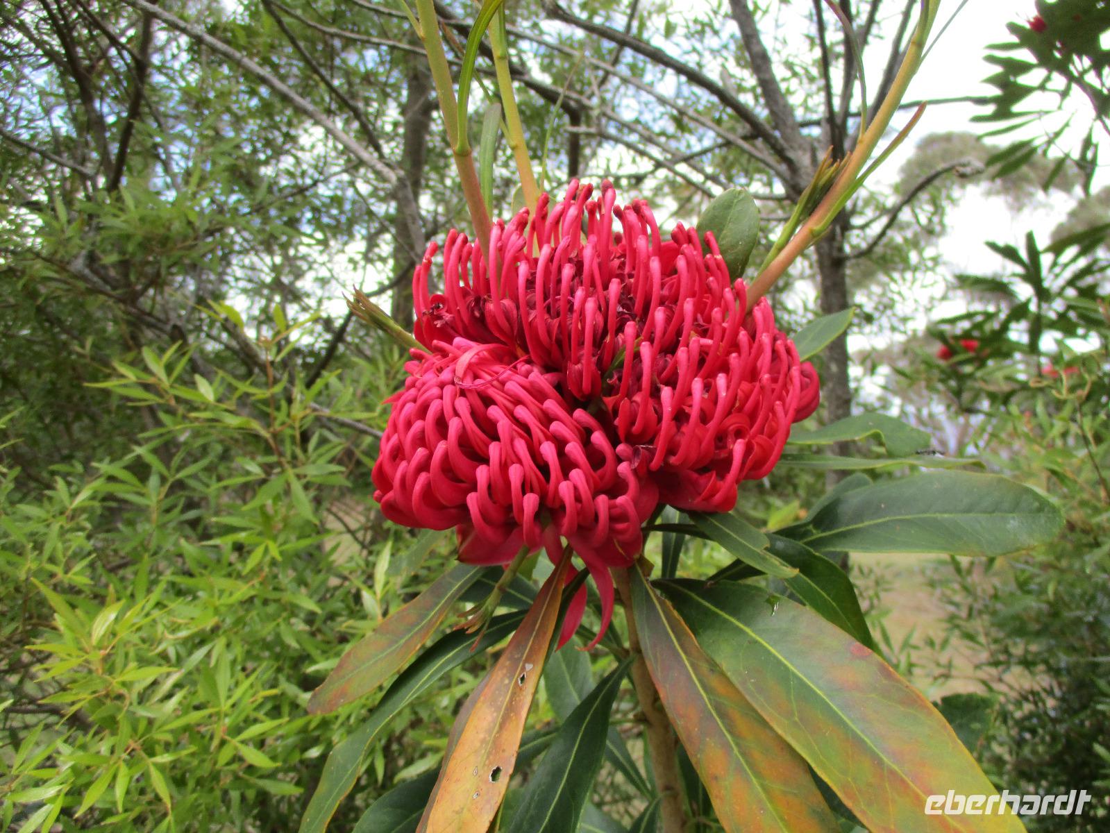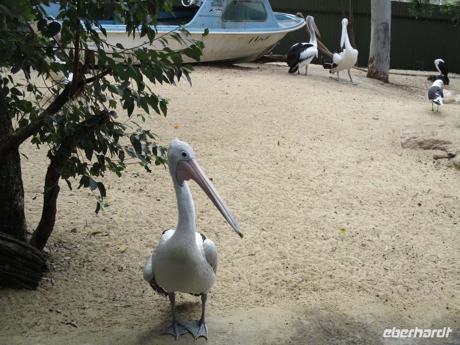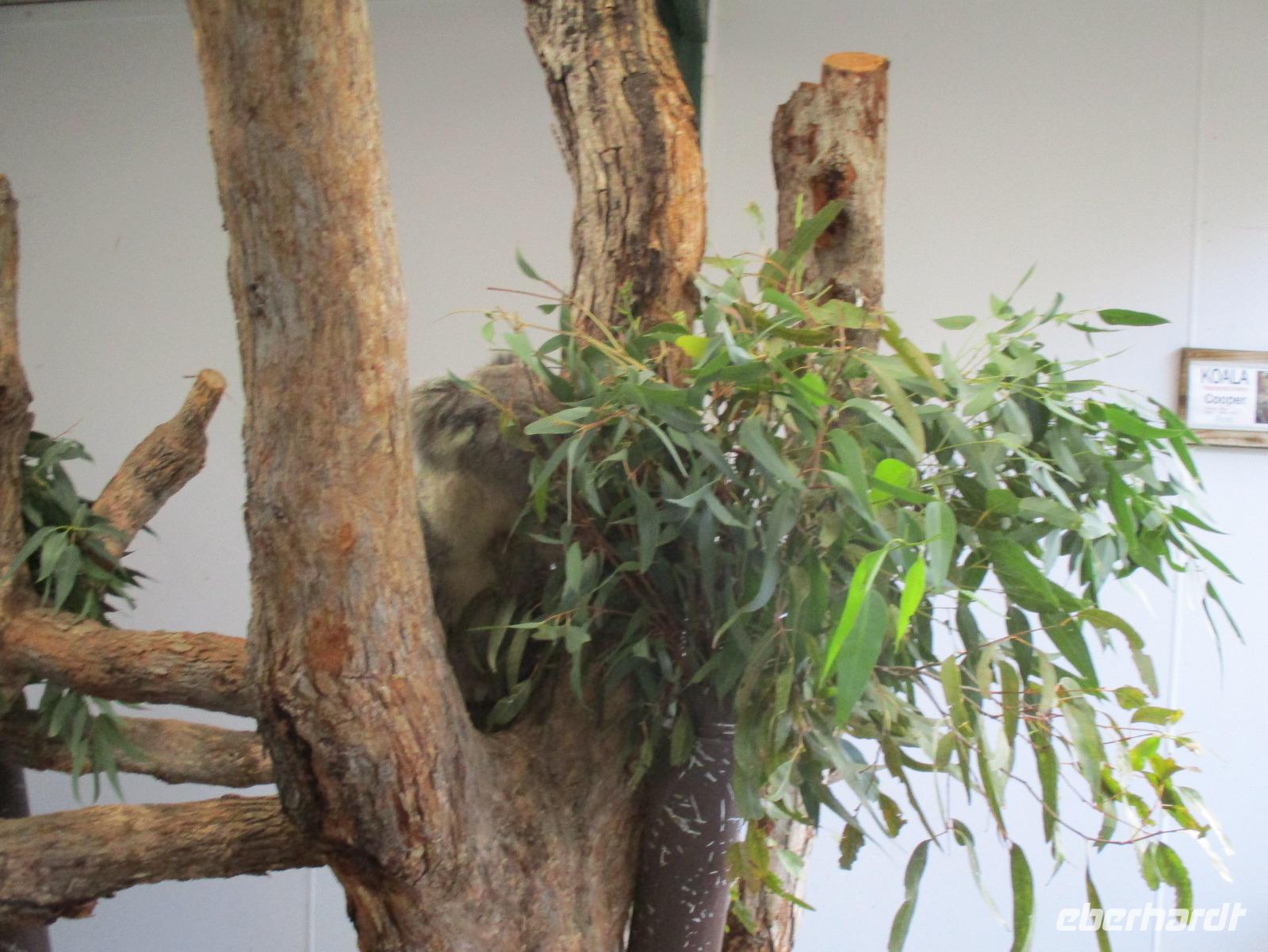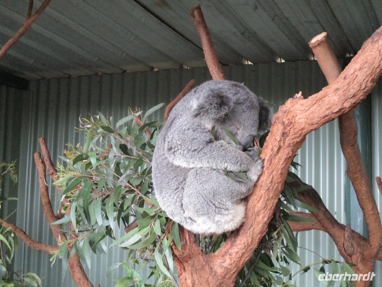 An diesem Morgen holte uns Uli wieder am Hotel ab. Wir fuhren in die Blauen Berge, die ihren Namen von dem Anblick bekommen haben, wenn Tausende von Eukalyptusbäumen, die die Berge bedecken, ihr aromatisches Öl verdunsten, was die Bäume blau erscheinen lässt. Wir bestaunten die „Tree Sisters", drei Felsformationen die in einem beeindruckenden Canyon direkt nebeneinander stehen. Uli zeigte uns die Nationalblume von New South Wales: den Warata Strauch, dessen Blüten rot leuchten. Nach dem Mittagessen, das wir in einem Golfklub einnahmen, besuchten wir den Featherdale Wildlife Park. Hier leben einheimische Tiere wir Kängurus, Wallabies, der Tasmanische Teufel, Pinguine und Dingos. Mit Koala-Bären konnte man sich fotografieren lassen, zahlreiche Vögel verschiedenster Arten sind in Volieren zu sehen. Nach der Ankunft in unserem Hotel trafen sich noch einige Gäste zum gemeinsamen Spaziergang zum historischen Hafen Darling Harbour. Dort gibt es gemütliche Restaurants, Cafés und Einkaufsmöglichkeiten. Im Food Court hatten wir ein kleines Abendessen und bummelten danach entlang der schön beleuchteten Gebäude durch den Hafen, bevor wir am späten Abend den Tag im Hotel beendeten.