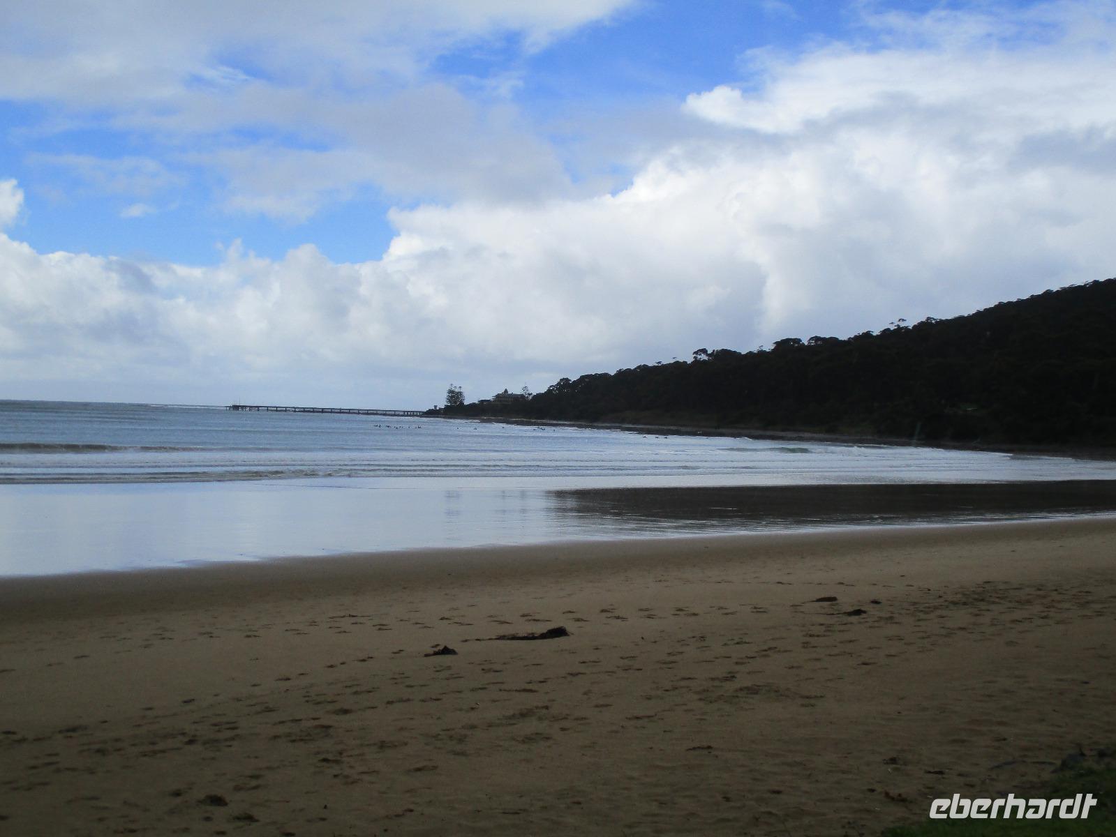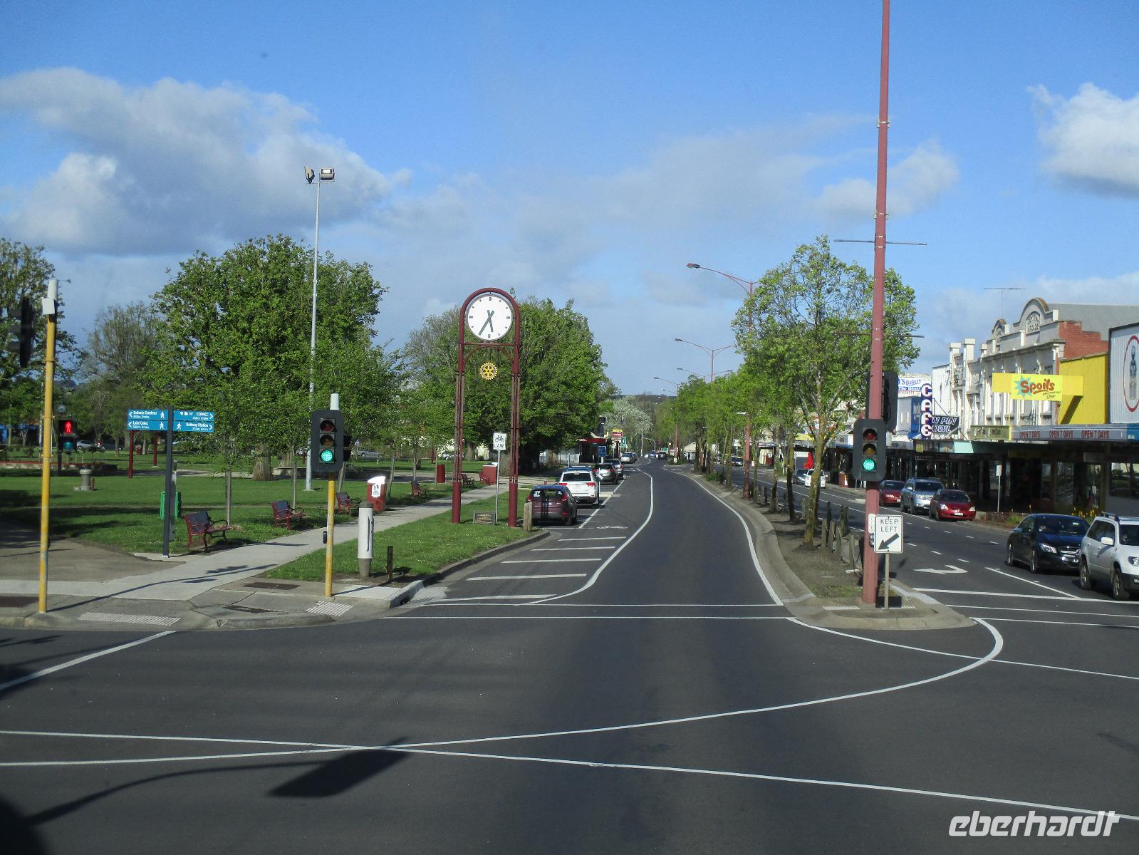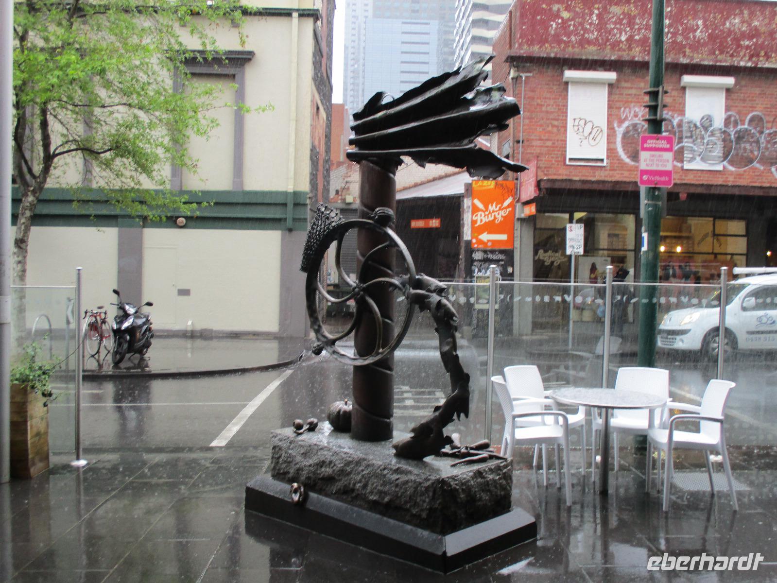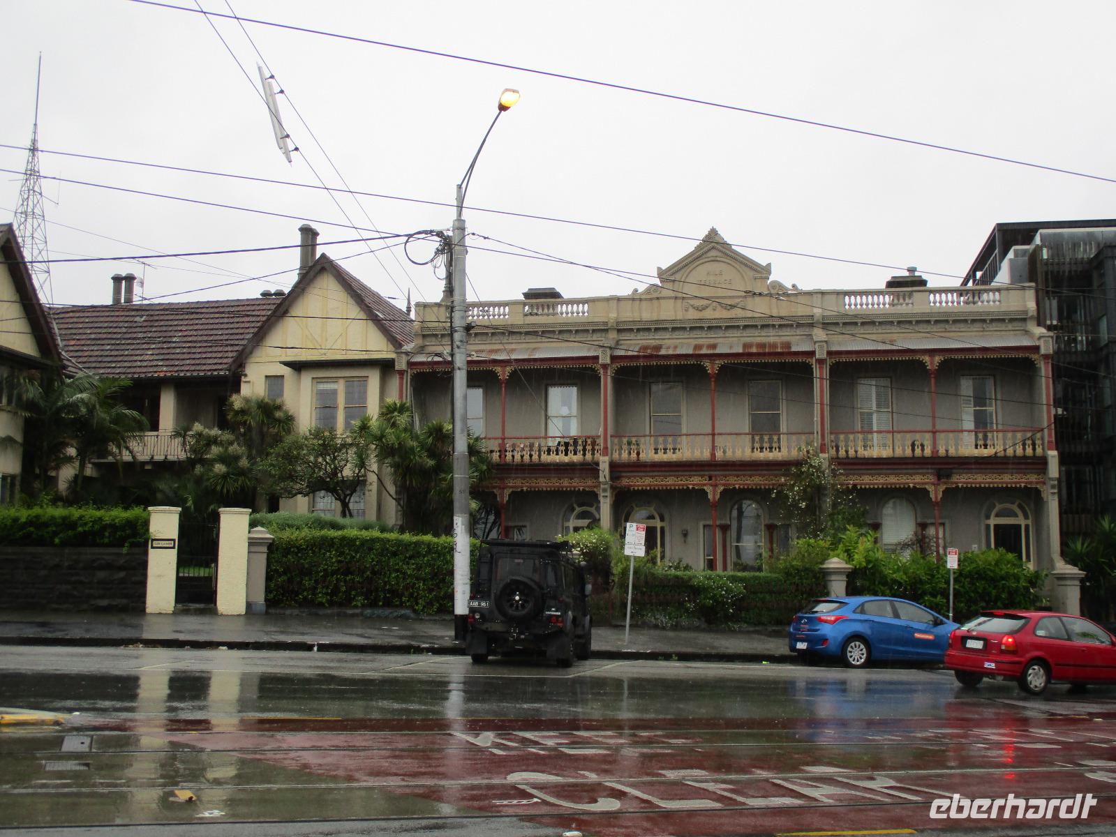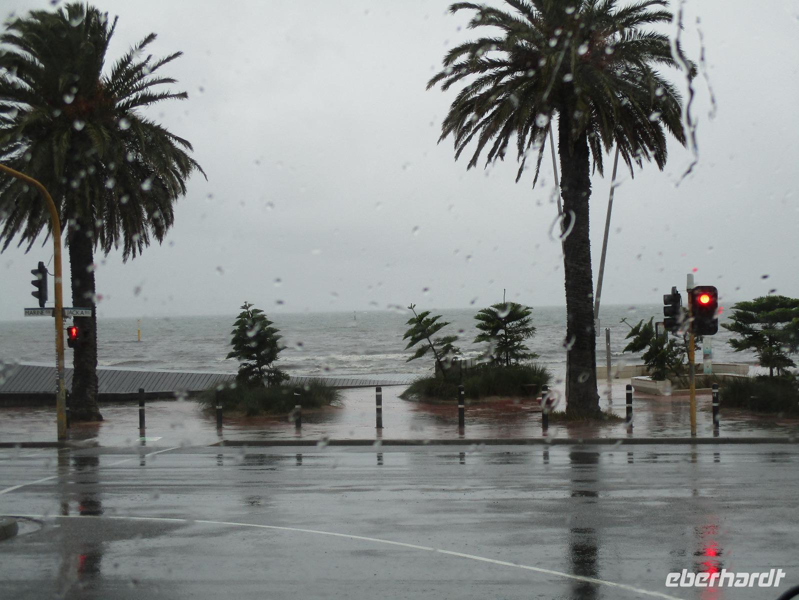 Bereits am Morgen wurden wir mit unserem Gepäck am Hotel abgeholt. Am Flughafen verabschiedeten wir uns von Uli und bestiegen unser Flugzeug nach Melbourne. Nachdem uns Sydney mit Sonne und schönem Wetter verwöhnt hatte, erwartete uns Melbourne mit reichlich Regen. Gleich am Flughafen holte uns unsere Reiseleiterin Ina ab, wir begannen unsere Stadtrundfahrt an der Markthalle Victoria Market. Es gab Gelegenheit für erste Einkäufe und einen Imbiss im historischen Markt. Sogar ein Bratwurststand ist vorhanden, und so aßen einige gleich eine deutsch anmutende Wurst im Brötchen. Während der Rundfahrt, die von reichlich Regenwetter geprägt war, sahen wir die Formel-1-Strecke, auf der wir auch ein kurzes Stück fuhren, den Eingang des Luna Parks, die Peter-und-Paul-Kirche, den Botanischen Garten und den Yarra-Fluss. Danach erreichten wir unser Hotel Travelodge Southbank. Wir spazierten um Meat & Wine - Restaurant, wo wir ein sehr gutes Abendessen mit Steak oder Fisch genossen. Danach besuchten wir kurz das Casino im Crown Hotel und bestaunten die luxuriöse Ausstattung des Gebäudes. Einige erkundeten auf ihrem Heimweg zum Hotel noch das Skydeck, das ist die Aussichtsplattform im 88. Stock des Eureka-Towers, der sich in unmittelbarer Nachbarschaft unseres Hotels befand.
