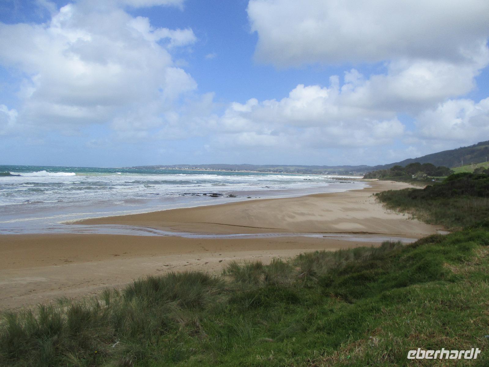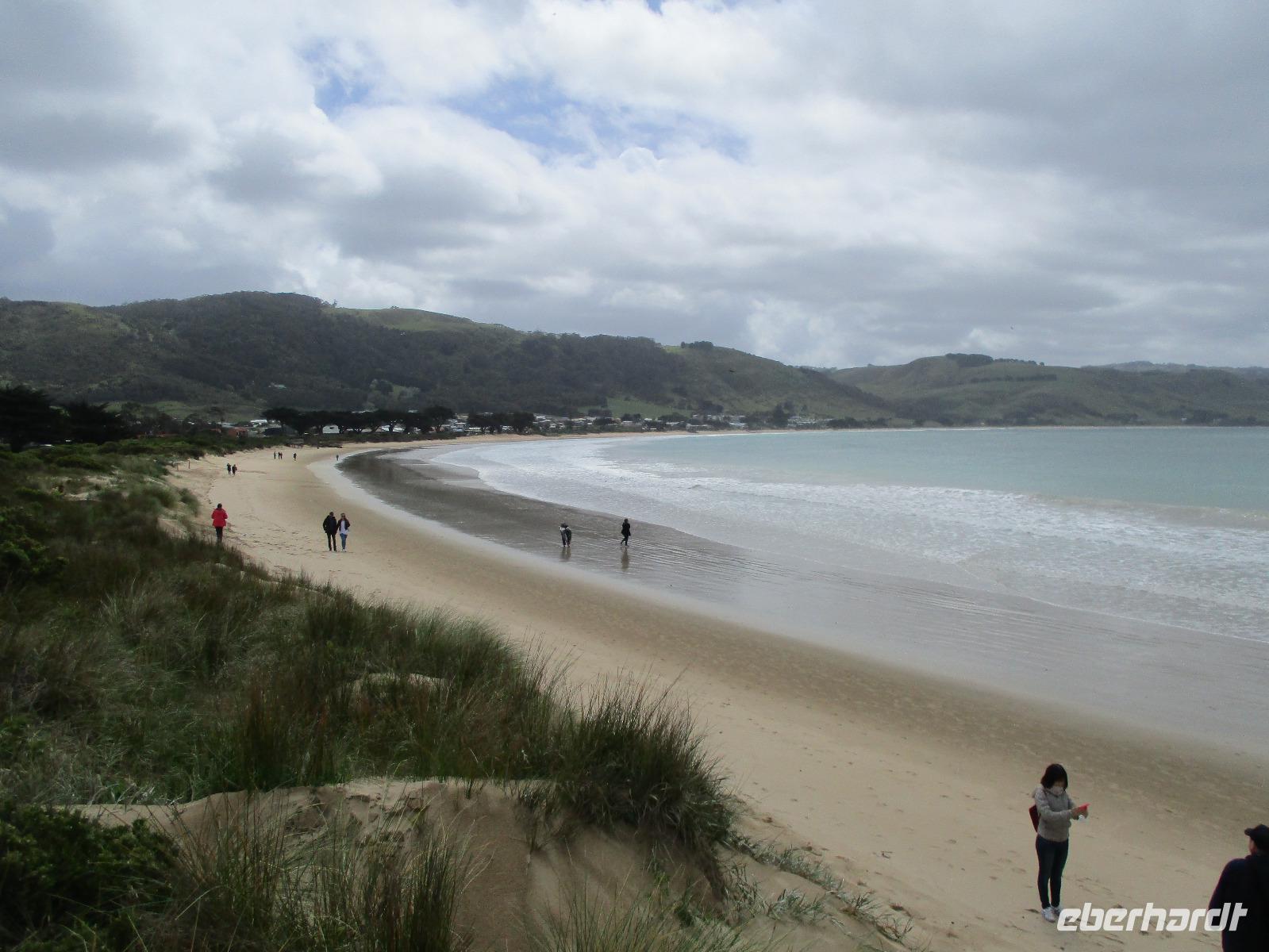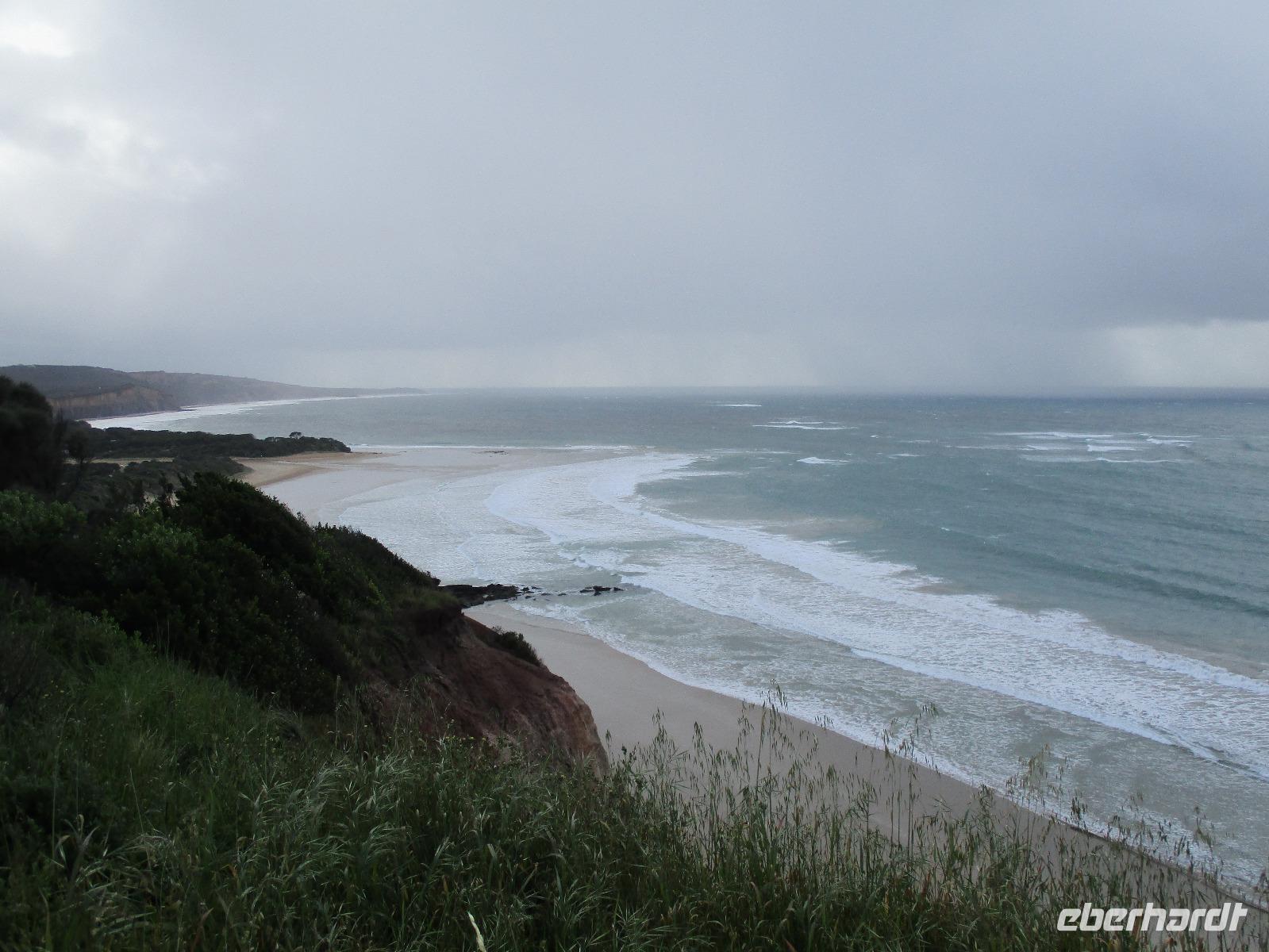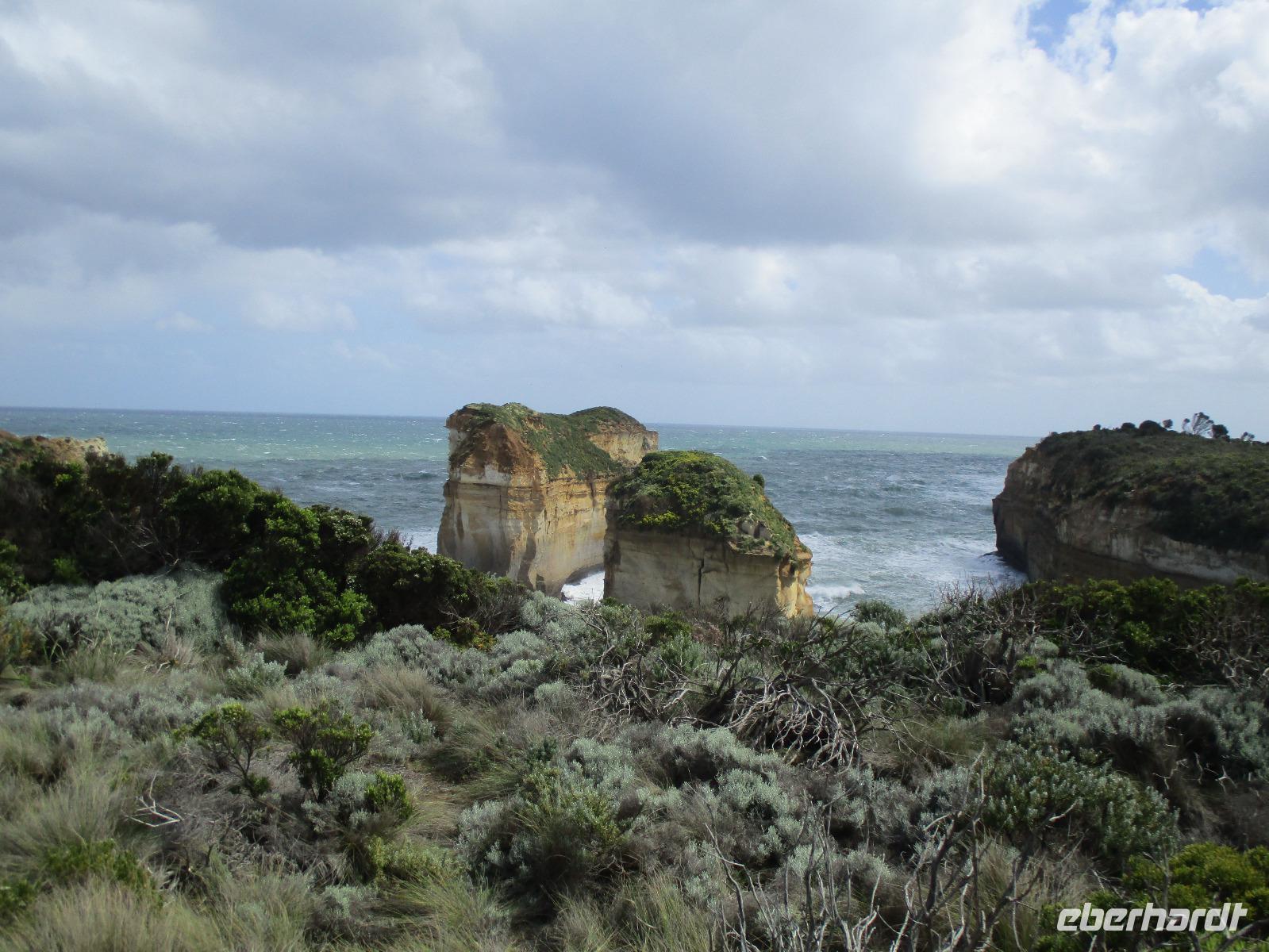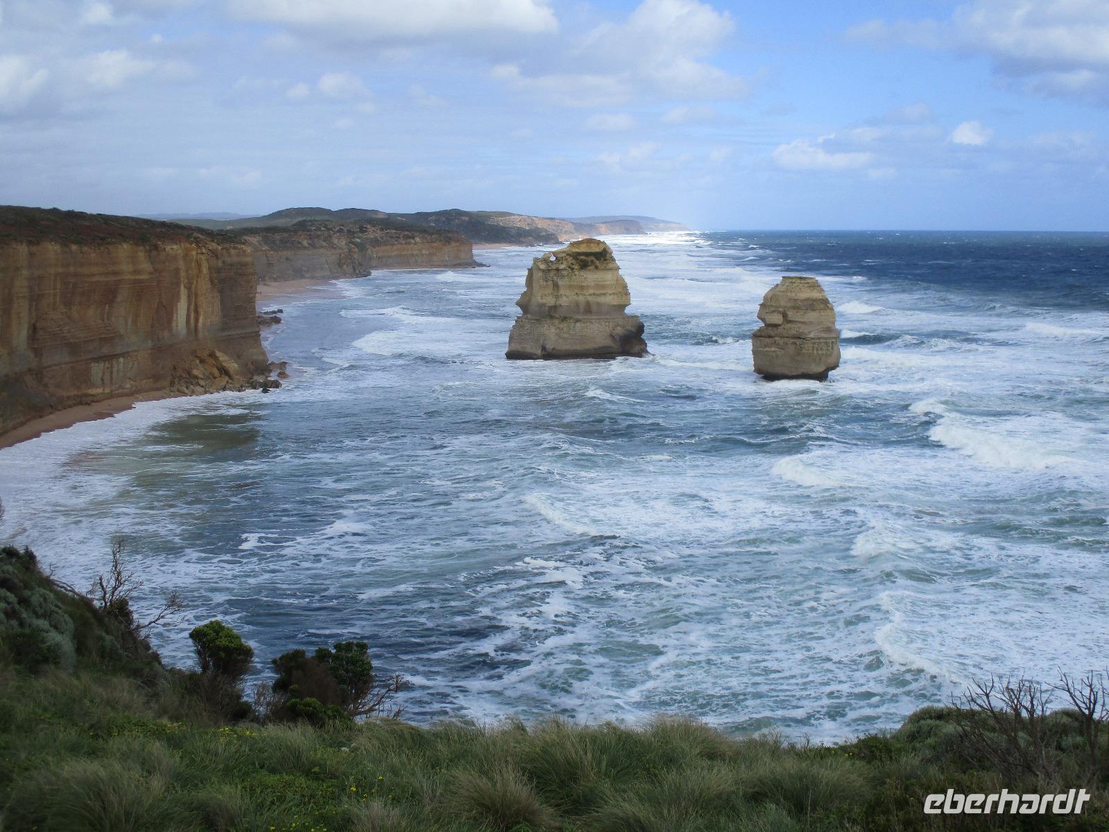 Bereits kurz nach dem Frühstück verließen wir die Stadt und fuhren zur Great Ocean Road, die imposante Blicke und Ausblicke über den Ozean und die Küste bietet. Unsere Reiseleiterin Ina erzählte uns unterwegs viel Interessantes und Wissenswertes zu Melbourne, zur Küste und Geschichte der Gegend. Leider hatte es durch den vielen Regen einen Erdrutsch gegeben, so dass wir einen Teil der Great Ocean Road nicht befahren konnten. Diesen Teil der Strecke fuhren wir durch den Wald, der hier kalter Regenwald ist. Auch diese Fahrt war beeindruckend, einmal hagelte es sogar an diesem Vormittag. Im Apollo Bay Hotel aßen wir zu Mittag und erkundeten danach noch den Strand und ein paar Geschäfte in Apollo Bay. Bei den 12 Aposteln, die tatsächlich nur 8 Apostel sind, hielten wir mehrmals an und erkundeten die raue Küste mit Wind und tosender Brandung unter den Aposteln, Felsformationen, die markant im Wasser entlang der Küste stehen. Sonne und Regen wechselten sich ab, so dass wir die raue Natur hier an der Great Ocean Road live erleben konnten.