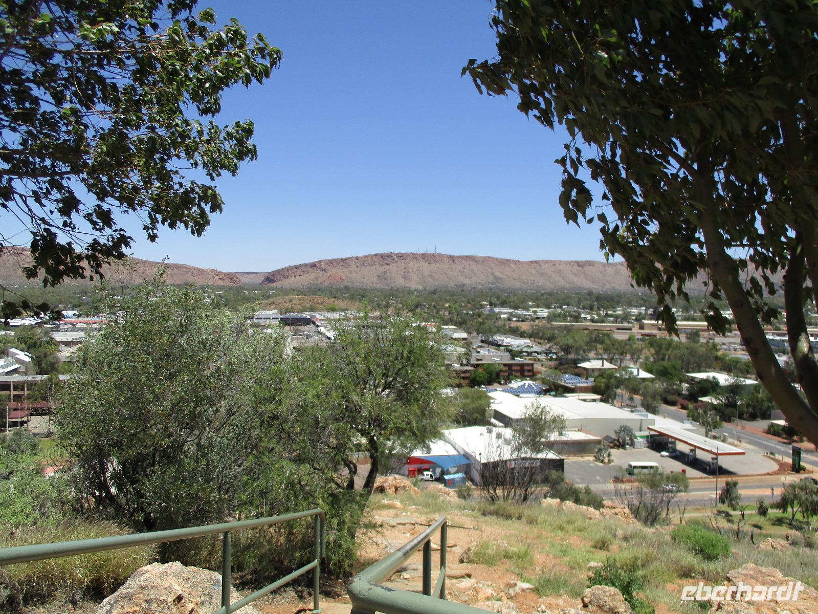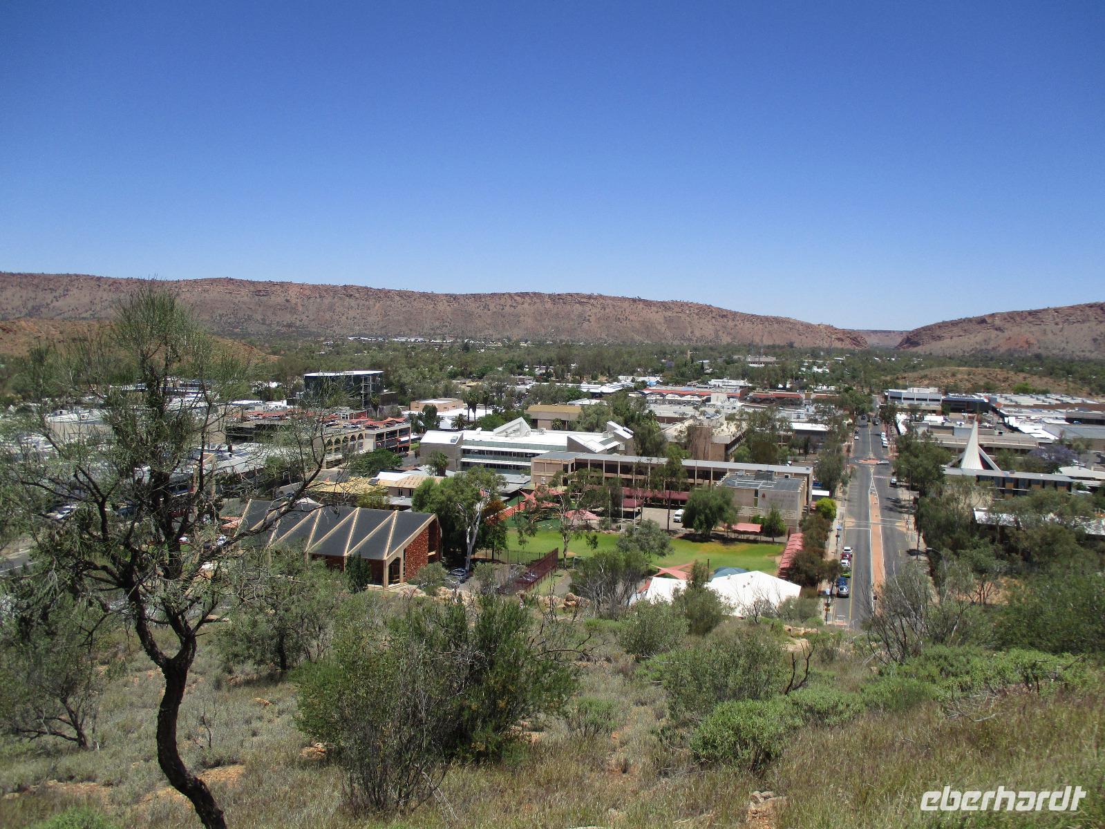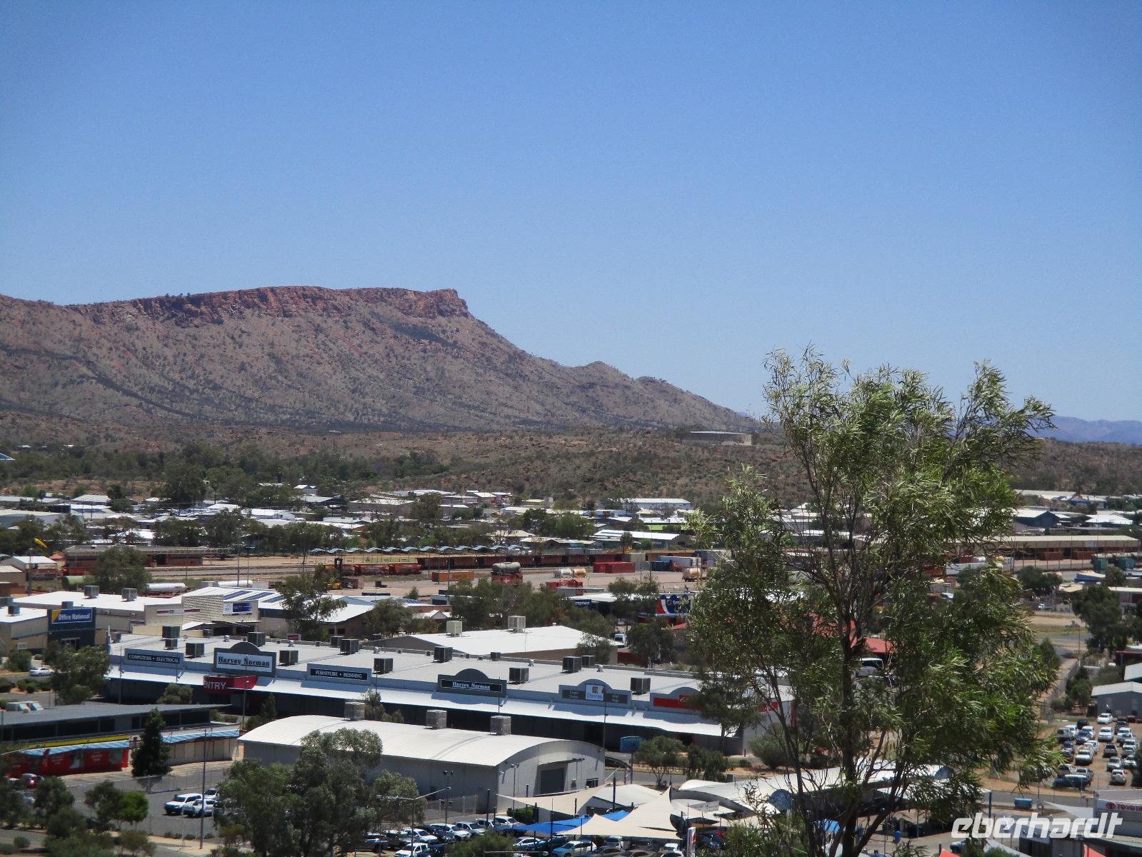 9. Tag: Flug nach Alice Springs, Stadtrundfahrt, Anzac–Hill, Telegrafen–Station, Flying Doctors, School oft he Air, Overlander Steakhouse