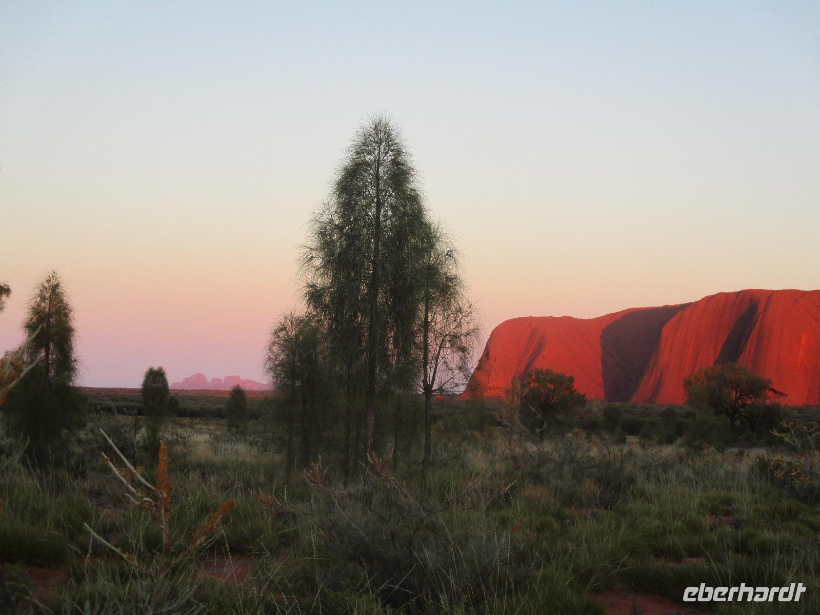 11. Tag: Ayers Rock im Sonnenaufgang, Olga–Berge, Flug nach Cairns