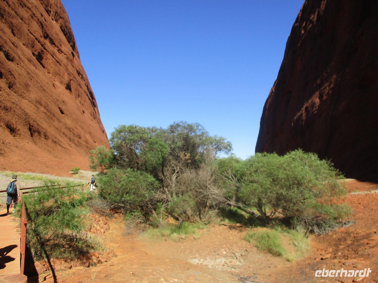 Dieser Tag begann für uns sehr früh. Noch vor Sonnenaufgang trafen wir uns wieder, um in unseren Bus zu steigen. Bevor wir einstiegen, entdeckten wir am nächtlichen Himmel sogar das Kreuz des Südens. Noch vor dem Frühstück verließen wir unser Hotel und fuhren wieder in Richtung Ayers Rock. Heute genossen wir ein neues Farbenschauspiel, nämlich den Sonnenaufgang hier im roten Zentrum des australischen Kontinents. Wir erlebten wieder einen Felsen, der seine Farben wechselte von graubraun bis leuchtend orange rot. Wir beobachteten, wie die Sonnenstrahlen langsam Besitz von dem roten Felsen ergriffen. Danach fuhren wir wieder ins Aborigini Kulturzentrum, wo wir frühstückten. Die Olga-Berge waren danach unser Ziel. Wir spazierten zwischen den markanten Felsformationen und machten beeindruckende Fotos. An diesem Tag hielten wir an mehreren Aussichtspunkten an, von wo wir die markante Felsformation fotografieren konnten. Auch den Ayers Rock konnte man ab und an in der Ferne erkennen. Da wir bis zum Transfer zum Flughafen noch etwas Zeit hatten, verbrachten wir die Mittagszeit entweder im Hotel oder im Einkaufszentrum in der Nähe. Am frühen Nachmittag dann holten wir unsere Koffer im Hotel ab und wurden von Marcel und einem Fahrer zum Flughafen gebracht. Von dort ging unser Flug nach Cairns, wo wir am frühen Abend ankamen. Unsere dortige Reiseleiterin Claudine holte uns am Flughafen ab und begleitete uns zu unserem Hotel Holiday Inn Harbourside. Dort aßen wir noch Abendessen und gingen dann zu Bett.