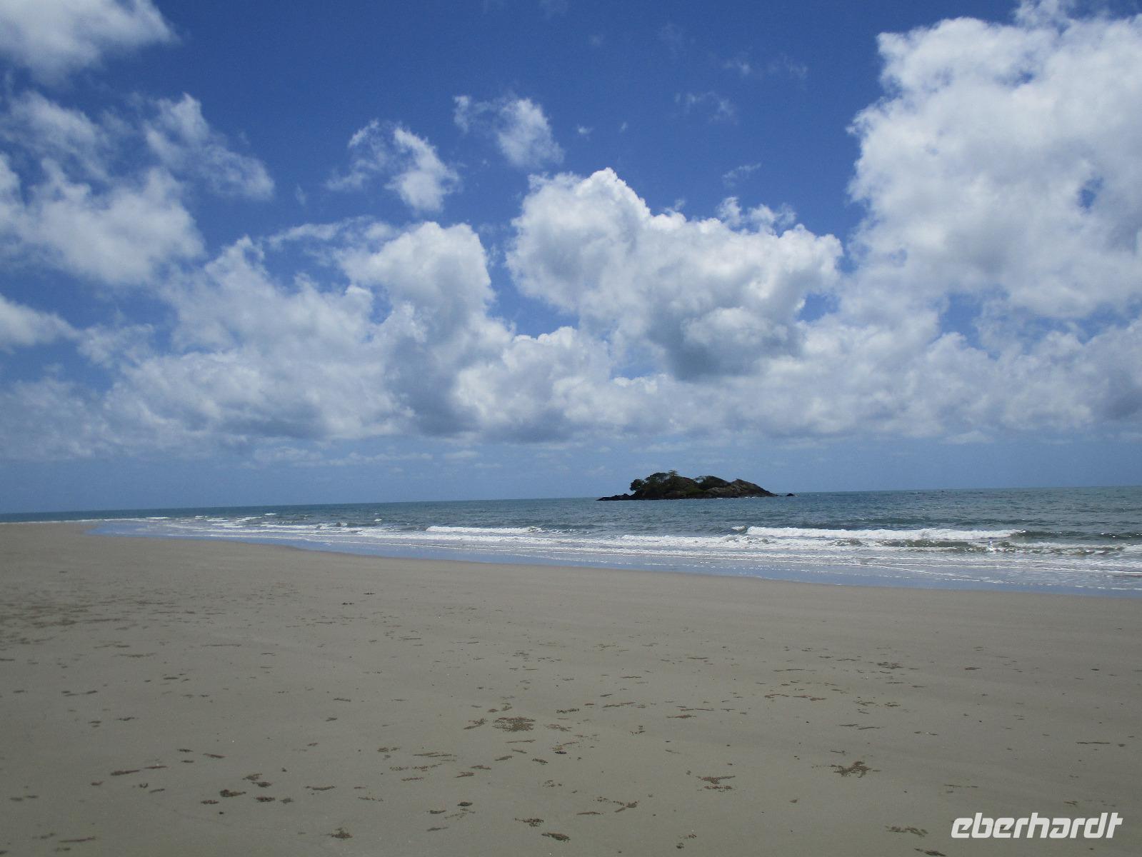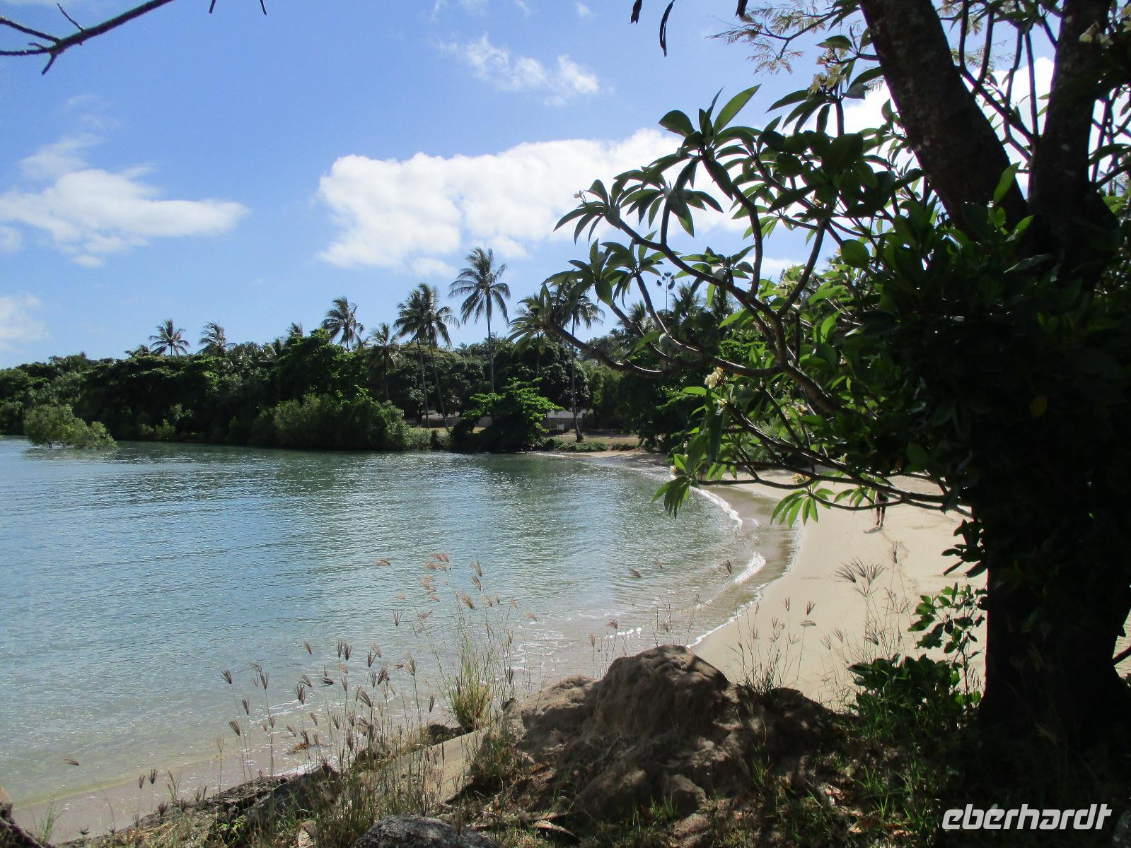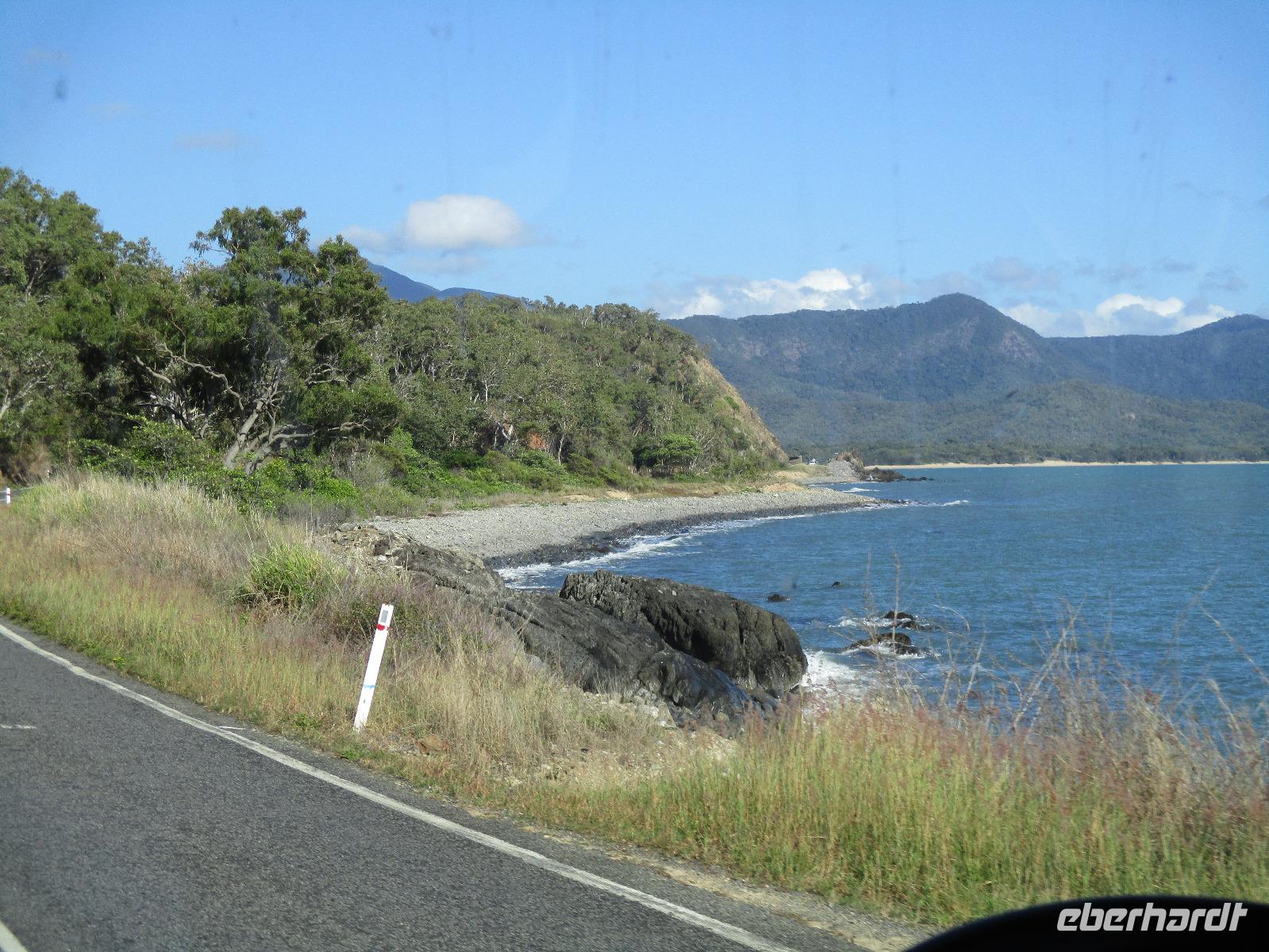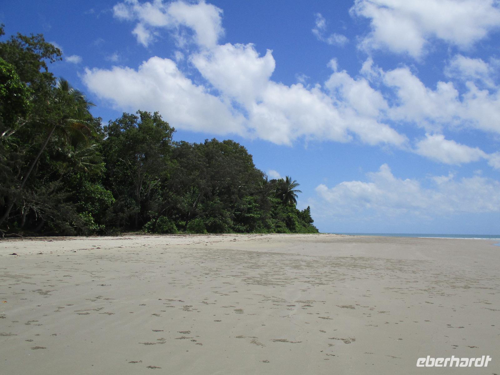 Heute holte uns Wolfgang ab, gleichzeitig Reiseleiter und Busfahrer für diesen Tag. Unser heutiges Ziel war der Daintree-Nationalpark. Auf der Fahrt dahin kamen wir große Teile der Strecke entlang der schönen und beeindruckenden Küste entlang. Wir sahen Felsen, Sandbuchten und schöne Ausblicke hinaus aufs Meer. In Port Douglas machten wir kurz Halt und suchten erste interessante Fotomotive mit Blick aufs Meer. Durch ausgedehnte Wälder führte uns unser weiterer Weg. Es gab zahlreiche Warnschilder, die die Autofahrer davor bewahren sollten, mit den dort lebenden Helmcassowaries zu kollidieren. Das ist einer der größten Laufvögel, dessen besonderes Kennzeichen ein blauer Helm auf dem Kopf ist. Scheinbar gibt es viele Unfälle mit diesen großen Tieren hier in der Gegend. An einem Strandcafé machten wir Halt. Wir konnten im herrlichen Sand des Strandes spazieren gehen oder uns gemütlich einen Kaffee mit Blick aufs Meer schmecken lassen. Aufpassen mussten wir trotzdem, denn Warnschilder informierten uns, dass es hier Krokodile gab und auch gefährliche Quallen. Wir ließen ein Bad im Meer daher ausfallen. Nach einem Schluck Kaffee ging es schon weiter. Eine Bootsfahrt im Mangrovenwald stand als nächstes auf unserem Plan. Wir waren auf der Suche nach den dort lebenden Salzwasserkrokodilen. Die Männchen können über vier Meter groß werden, Weibchen zwischen 3,5 und drei Metern. Nach einiger Suche entdeckten wir ein Krokodilweibchen, das im seichten Wasser am Ufer lauerte. Da es nicht aus dem Wasser kam, konnten wir es nicht in Gänze erkennen und auch die Fotos zeigen nur ein Stück des Tieres. Dennoch erfuhren wir viel Interessantes über die hier wachsenden verschiedenen Mangrovenarten. Nach der Bootsfahrt wurden wir in ein Restaurant mitten im Regenwald gebracht mit dem Namen „On the Turps", wo wir uns gegrilltes Steak oder Fisch schmecken ließen. Nach dem Mittagessen fuhren wir zur Mossman Gorge, wo wir auf einem schön gestalteten Pfad durch den Regenwald spazieren konnten. Riesige Farne und interessante Bäume konnten wir hier entdecken. Im Fluss badeten einige Leute und eine Hängebrücke lud zum schaukelnden Überqueren des Flusses ein. Einige wagten es sogar, im klaren Wasser des Gebirgsflusses baden zu gehen. Auch den heutigen Abend verbrachten wir beim Abendessen in unserem Hotel.