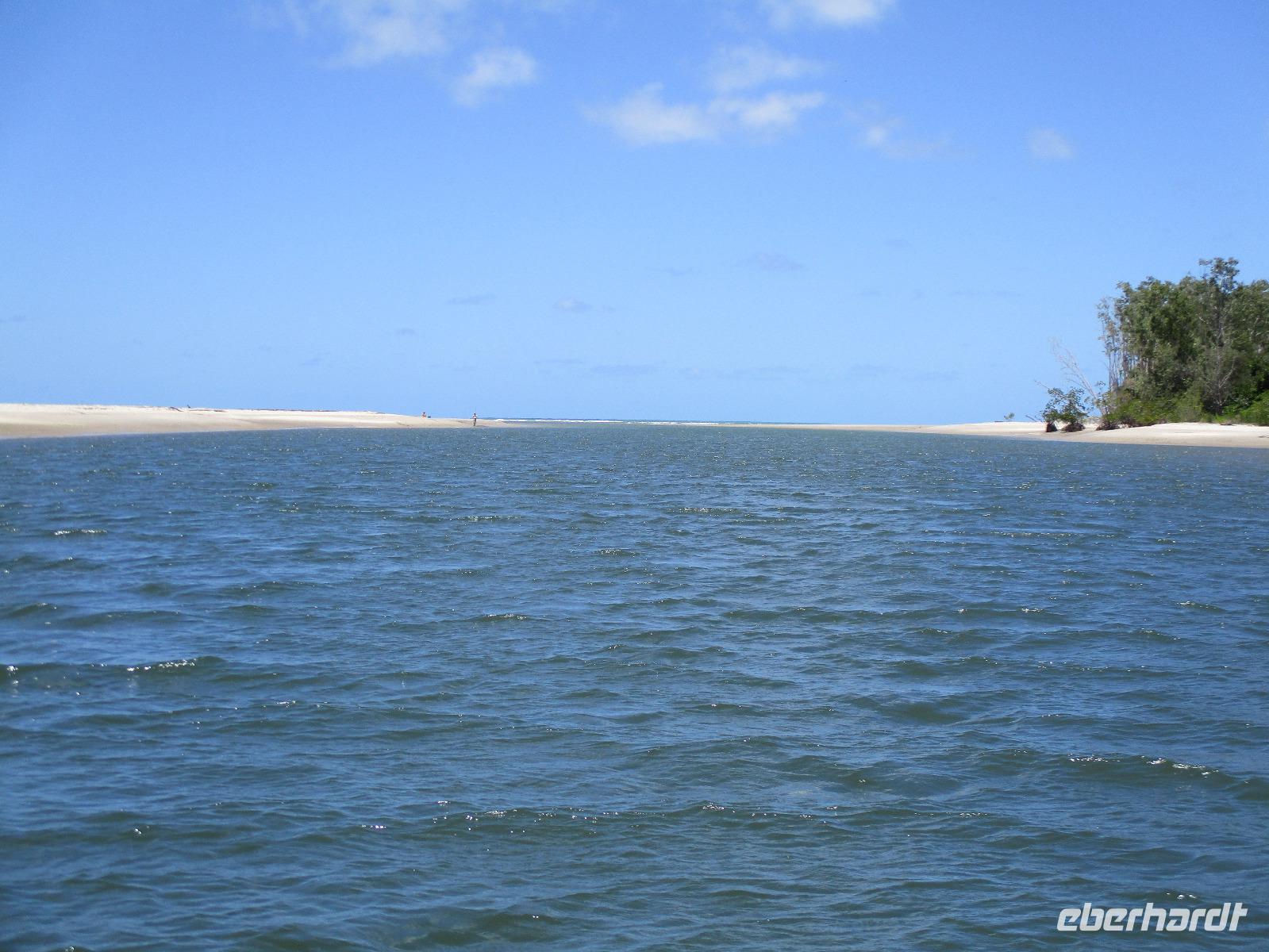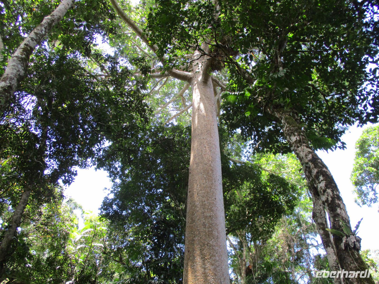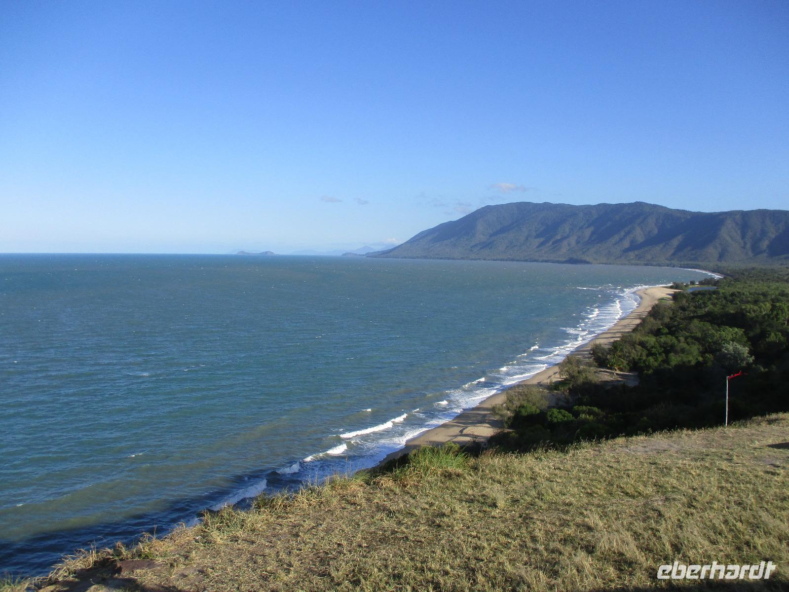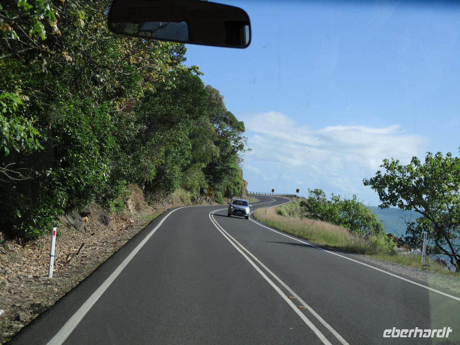 Heute holte uns Wolfgang ab, gleichzeitig Reiseleiter und Busfahrer für diesen Tag. Unser heutiges Ziel war der Daintree-Nationalpark. Auf der Fahrt dahin kamen wir große Teile der Strecke entlang der schönen und beeindruckenden Küste entlang. Wir sahen Felsen, Sandbuchten und schöne Ausblicke hinaus aufs Meer. In Port Douglas machten wir kurz Halt und suchten erste interessante Fotomotive mit Blick aufs Meer. Durch ausgedehnte Wälder führte uns unser weiterer Weg. Es gab zahlreiche Warnschilder, die die Autofahrer davor bewahren sollten, mit den dort lebenden Helmcassowaries zu kollidieren. Das ist einer der größten Laufvögel, dessen besonderes Kennzeichen ein blauer Helm auf dem Kopf ist. Scheinbar gibt es viele Unfälle mit diesen großen Tieren hier in der Gegend. An einem Strandcafé machten wir Halt. Wir konnten im herrlichen Sand des Strandes spazieren gehen oder uns gemütlich einen Kaffee mit Blick aufs Meer schmecken lassen. Aufpassen mussten wir trotzdem, denn Warnschilder informierten uns, dass es hier Krokodile gab und auch gefährliche Quallen. Wir ließen ein Bad im Meer daher ausfallen. Nach einem Schluck Kaffee ging es schon weiter. Eine Bootsfahrt im Mangrovenwald stand als nächstes auf unserem Plan. Wir waren auf der Suche nach den dort lebenden Salzwasserkrokodilen. Die Männchen können über vier Meter groß werden, Weibchen zwischen 3,5 und drei Metern. Nach einiger Suche entdeckten wir ein Krokodilweibchen, das im seichten Wasser am Ufer lauerte. Da es nicht aus dem Wasser kam, konnten wir es nicht in Gänze erkennen und auch die Fotos zeigen nur ein Stück des Tieres. Dennoch erfuhren wir viel Interessantes über die hier wachsenden verschiedenen Mangrovenarten. Nach der Bootsfahrt wurden wir in ein Restaurant mitten im Regenwald gebracht mit dem Namen „On the Turps", wo wir uns gegrilltes Steak oder Fisch schmecken ließen. Nach dem Mittagessen fuhren wir zur Mossman Gorge, wo wir auf einem schön gestalteten Pfad durch den Regenwald spazieren konnten. Riesige Farne und interessante Bäume konnten wir hier entdecken. Im Fluss badeten einige Leute und eine Hängebrücke lud zum schaukelnden Überqueren des Flusses ein. Einige wagten es sogar, im klaren Wasser des Gebirgsflusses baden zu gehen. Auch den heutigen Abend verbrachten wir beim Abendessen in unserem Hotel.