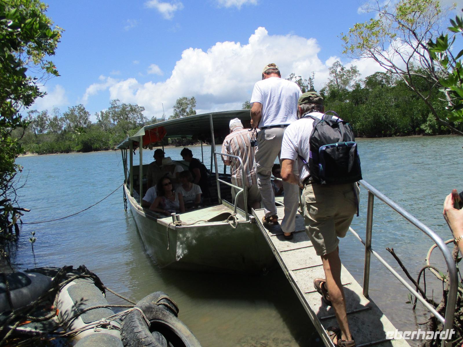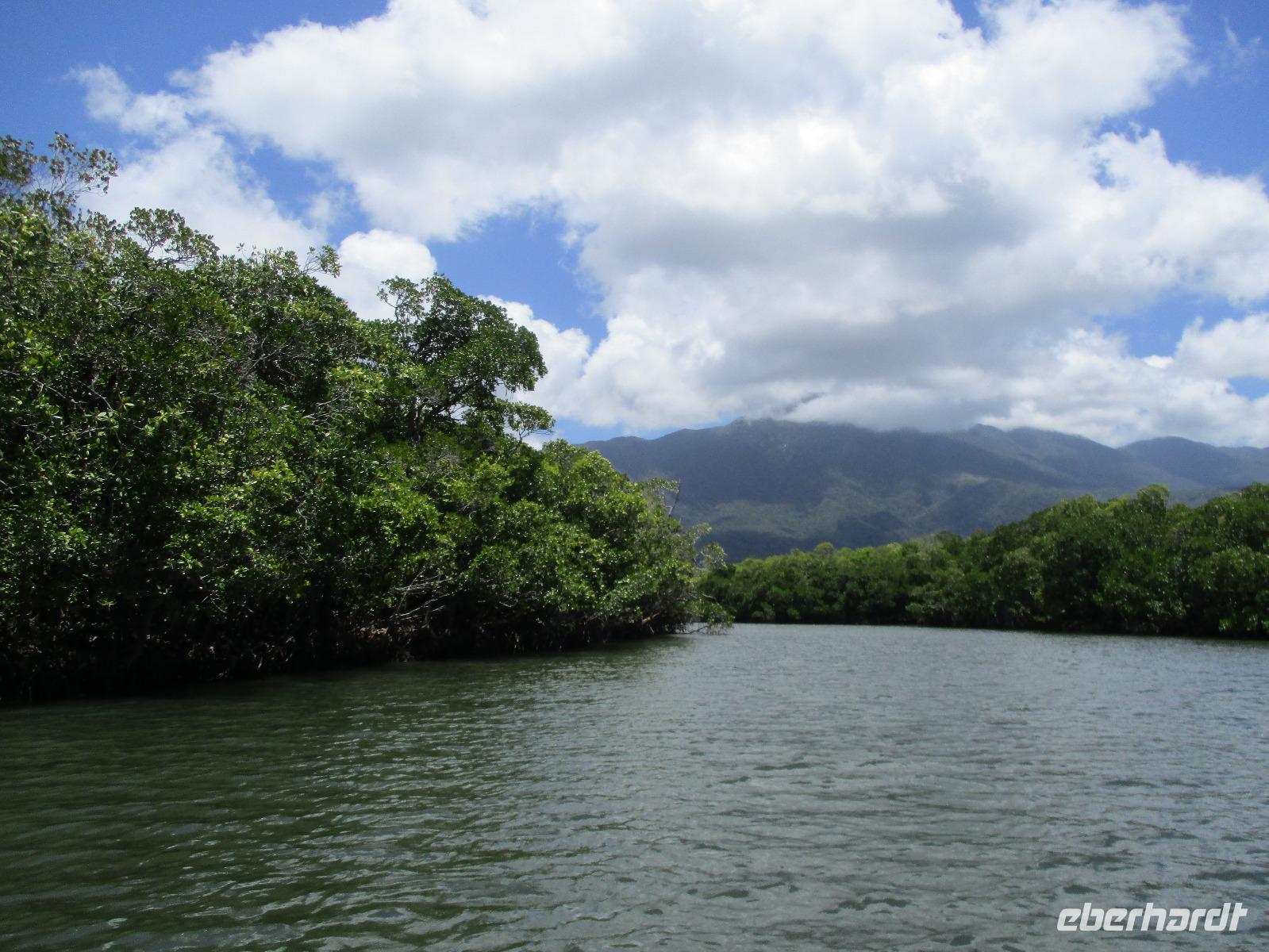 14. Tag: Daintree Nationalpark, Bootsfahrt im Mangrovenwald auf Krokodil–Suche, Mossman Gorge