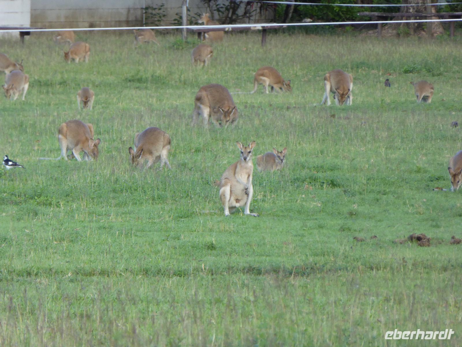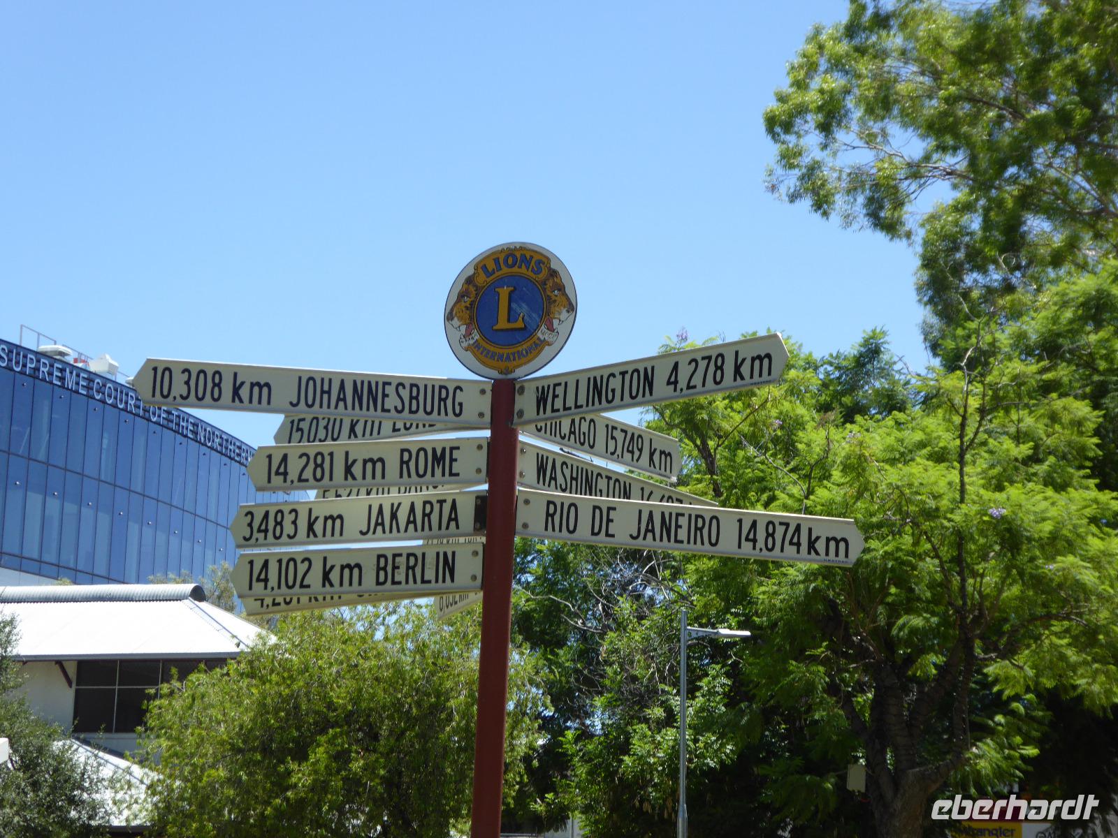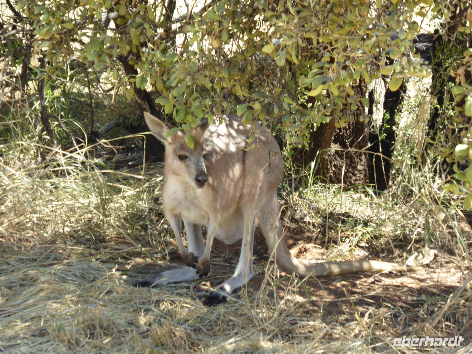 Nach einem frühen Frühstück fliegen wir von Sydney nach Alice Springs. Dort haben wir noch etwas Zeit, um durch die Stadt zu bummeln und einen Kaffee zu trinken. Unsere erste Begegnung mit den Aborigines erfolgt ebenfalls hier. Sie lungern herum, schreien sich gegenseitig an und zeigen uns ihre dunkelste Seite. Uns führt der Weg zunächst zu den Flying Doctors. Es ist noch nicht sehr lange her, da führten Erkrankungen oder Unfälle im Outback schlimmstenfalls zum Tod. Denn an medizinische Versorgung war weit und breit nicht zu denken. Erst mit der Erfindung des Flugzeugs und der elektronischen Verständigung zwischen Flugzeug und Boden, ergab sich die Möglichkeit, eine flächendeckende medizinische Versorgung aufzubauen. In einer kleinen Kinovorführung erfahren wir die Geschichte der Flying Doctors. Im anschließenden Museum ist ein Flugzeug, das einst unterwegs war, zu sehen. Wir können sogar hineinsteigen und uns das Cockpit und den, mit einer Trage ausgestatteten, Innenraum ansehen. Auch der Pedalgenerator, mit dem die Verständigung erfolgte, ist zu besichtigen. Unser nächstes Ziel ist die Telegrafenstation, die von 1885 bis 1905 in Betrieb war und als besterhaltene Telegrafenstation der Gegend gilt. Von hier aus wurden Nachrichten über das ganze Land weitergeleitet. Die oberste Aufsicht der Station hatte der Stationsleiter. Er war nicht nur für die Poststation verantwortlich, sondern auch für die Aborigines der Region. Er diente als Richter, Notarzt und verkaufte auch Lebensmittel. Wir sehen, wie die Familie hier gelebt und gearbeitet hat. Die Ausstattung der Räume ist sehr bescheiden. Schließlich musste alles, was sich hier befand, über 500 Kilometer mit dem Kamel hertransportiert werden. Das Telegrafenamt war das Herz der Station. 24 Stunden am Tag wurden hier Morsezeichen empfangen und weitergeleitet. Alles sehr interessant, dennoch werden wir abgelenkt. Unter einem Baum haben es sich nämlich zwei Kängurus gemütlich gemacht, die nun unsere ganze Aufmerksamkeit auf sich ziehen. Nachdem wir uns satt fotografiert haben, fahren wir weiter zur School oft the Air. Wir erfahren, wie es den Australiern gelungen ist, den Unterricht für Kinder in abgelegenen Gebieten zu organisieren. Wurden früher Schulbücher und Aufgaben per Post hin- und her geschickt, ist es heute über das Internet viel einfacher, Schüler in eine virtuelle Klasse zu bringen und zu unterrichten. Unsere letzte Station für heute ist der Anzac Hill. Hier befindet sich ein Denkmal für im Krieg gefallene Soldaten. Außerdem hat man eine schöne Aussicht auf Alice Springs. Auf dem Rückweg zum Hotel zeigt uns Eva, wo sich das Restaurant Overlander Steakhouse befindet, in dem wir heute zu Abend essen. Die Aussicht dorthin zu Fuß zu gehen, behagt uns gar nicht und wir beschließen mit dem Taxi zu fahren. Leichter gedacht als getan. Unser 13-Personen Taxi, das der freundliche Rezeptionist bestellt hat, kommt nicht. Nachdem es zehn Minuten über die Zeit ist, ruft der Kollege nochmal in der Zentrale an und es stellt sich heraus, das Taxi fährt heute gar nicht. Nur das zusätzliche Taxi ist bereits da und wir schicken die Wiener schon mal vor zum Restaurant. Jetzt sollen zwei 7-Mann Taxis kommen. Es dauert eine Weile, aber dann kommt tatsächlich eins. Also die Nächsten weg. Warten, warten, warten. Ein weiteres großes Taxi kommt. Die Fahrerin springt heraus, umarmt ein vor dem Hotel wartendes Mädchen, beide steigen wieder ein und fahren davon. Uns schwant schon böses. Das wird doch wohl nicht unser Taxi gewesen sein? Ein normales Taxi kommt. Wurde bestellt für eine Person. Tatsache. Das Mädchen hat das falsche Taxi genommen. Egal, nun steigen wieder ein paar Gäste von uns ein und nur Antje und ich bleiben übrig. Ein Pizzafahrer taucht auf. Ob er uns denn mitnehmen würde? Wir haben ihn fast überredet, da taucht noch ein Taxi auf. Und so gelingt es uns, dass tatsächlich alle zusammen zu Abend essen können.