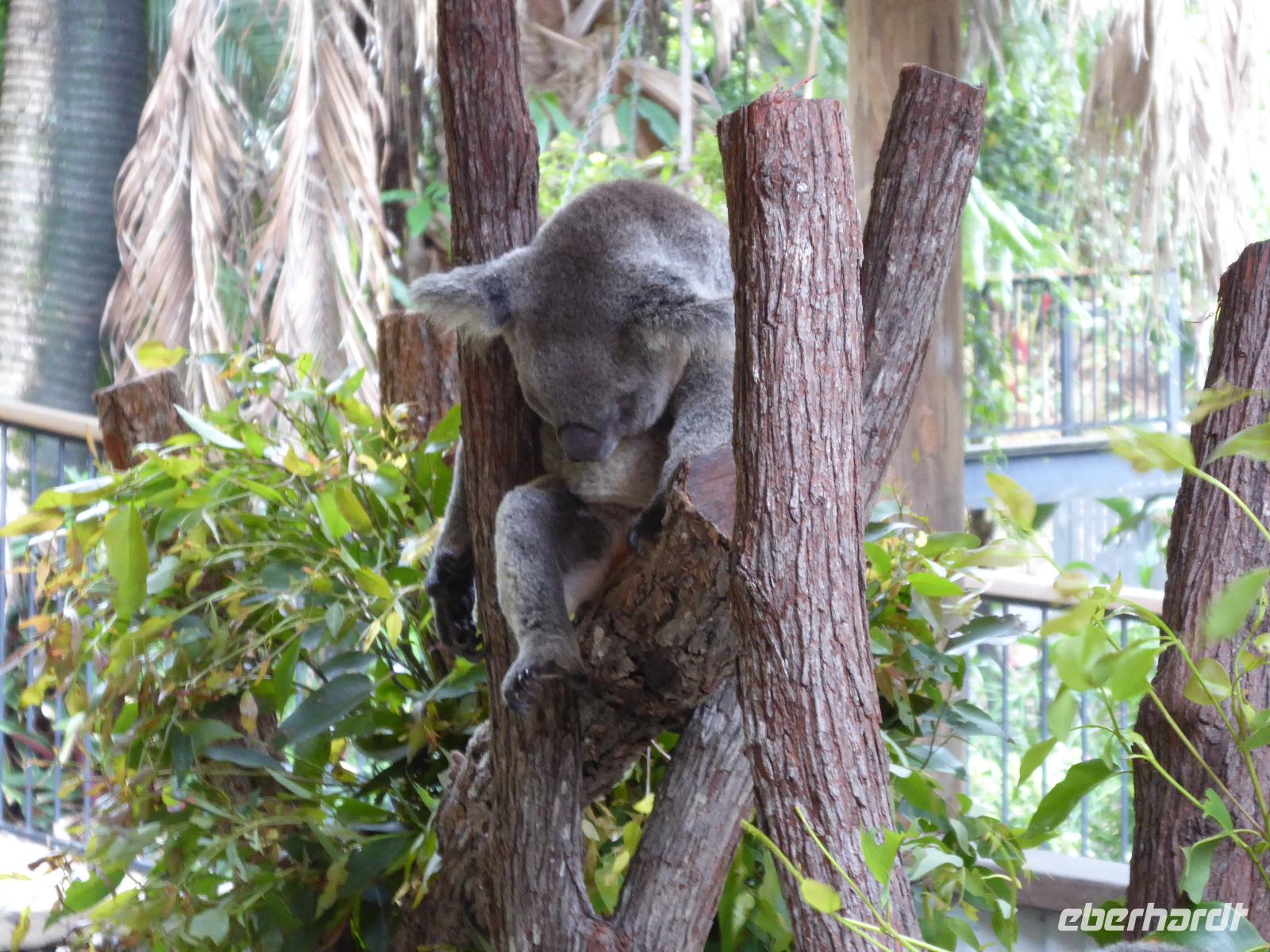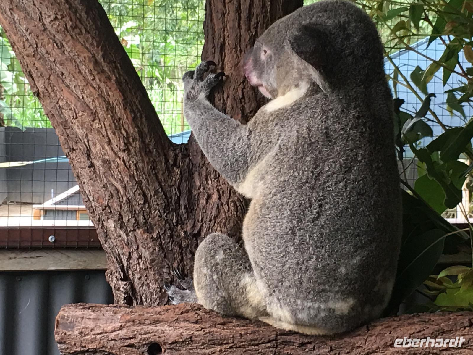 Nach dem Frühstück fahren wir heute in die Blauen Berge. Diese haben ihren Namen von den Eukalyptusbäumen, die ätherisches Öl verdunsten, der als feiner Nebel über den Bergen liegt und diese bläulich schimmern lässt. Am Aussichtspunkt Katoomba halten wir an, denn hier haben wir einen tollen Blick auf die Berge und die Felsformation der Drei Schwestern. Wie die Sage erzählt, hat ein Vater seine drei Töchter versteinert, um sie vor unerwünschten Liebhabern zu schützen. Ulli hat noch einen ganz geheimen Geheimtipp für uns und führt uns bei einer kleinen Wanderung zu einer Stelle, wo wir nocheinmal eine atemberaubende Aussicht haben und die Drei Schwestern von hinten betrachten können. In Leura, einem der Hauptorte in den Blue Mountains, haben wir Zeit zum Bummeln. Das Städtchen ist geprägt Kunstgalerien, Cafés und Restaurants und kleinen Boutiquen (sogar eine von Trump ist dabei ). Natürlich besuchen wir auch den berühmten Candy Store, ein Bonbonladen, der viel kleiner ist, als sein Ruf verspricht. Trotzdem türmen sich in den Regalen tausende Süßigkeiten, die das Herz begehren könnte. Wir setzen unser Programm fort. Nun steht der Besuch des Featherdale Wildlife Parks auf dem Programm. Was für ein Pech. Genau hier erwischt uns ein mächtiger Regenguss. Trotzdem gelingt es uns Koalas, Kängurus und sogar den gefährlichen Kasuar zu erspähen, bevor wir den Park verlassen müssen. Den Abend verbringen wir in Eigenregie. Gegenüber vom Hotel befindet sich ein Pub. Hier lassen wir den Tag bei einem frisch gezapften Bierchen, Pizza und Livemusik ausklingen.