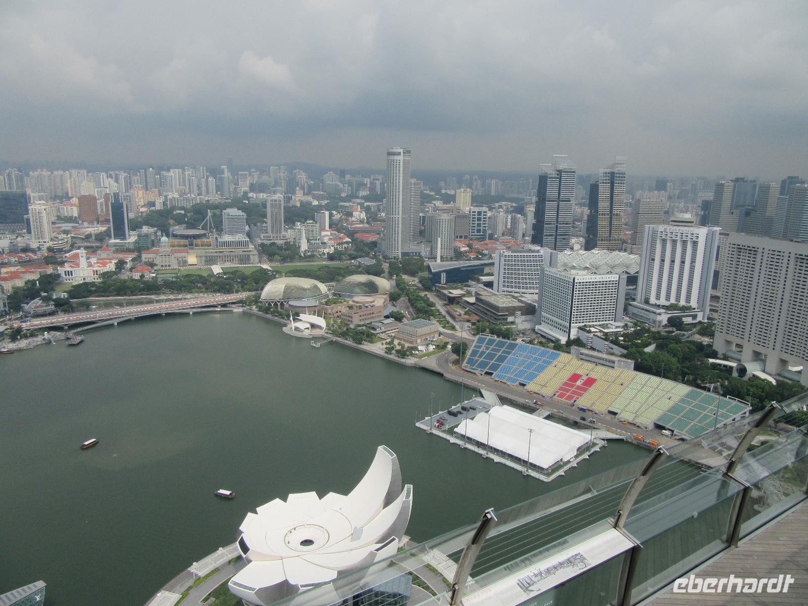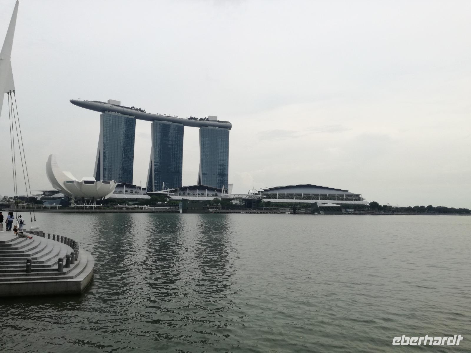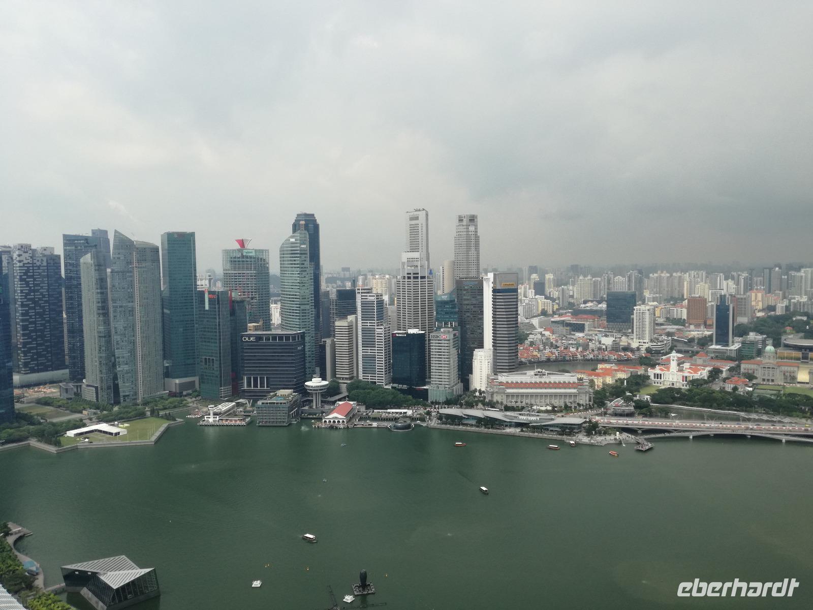 Der Vormittag steht uns noch zur freien Verfügung und wir nutzen unsere Freizeit natürlich gern aus. Nach dem Frühstück fahren wir zum Marina Bay Sands Hotel um dort auf den Skypark hinauf zu fahren. Von hier oben haben wir eine fantastische Aussicht über ganz Singapur. Danach genießen wir einen zweiten "Kaffee" ;) und haben Glück, denn genau in diesem Moment beginnt es zu regnen. Wenig später fahren wir dann zurück ins Hotel und jeder nimmt sich noch einmal ein paar Minuten für sich.