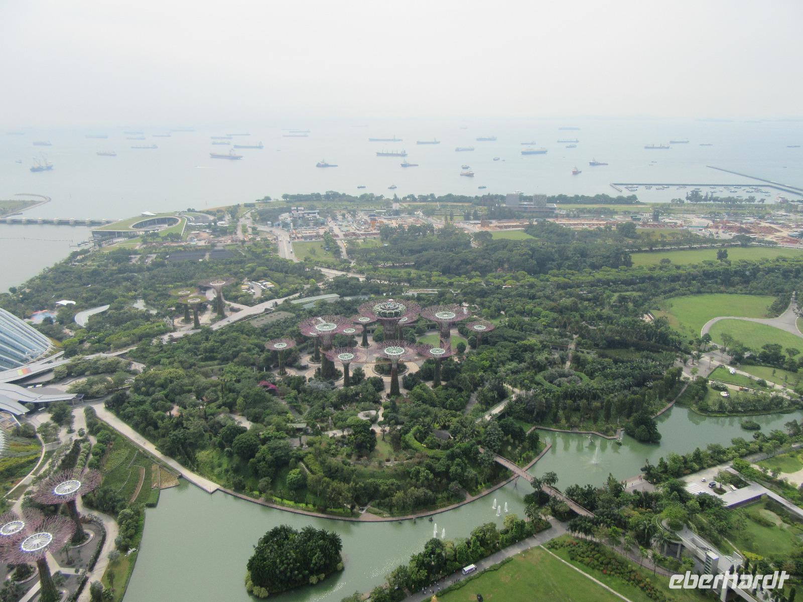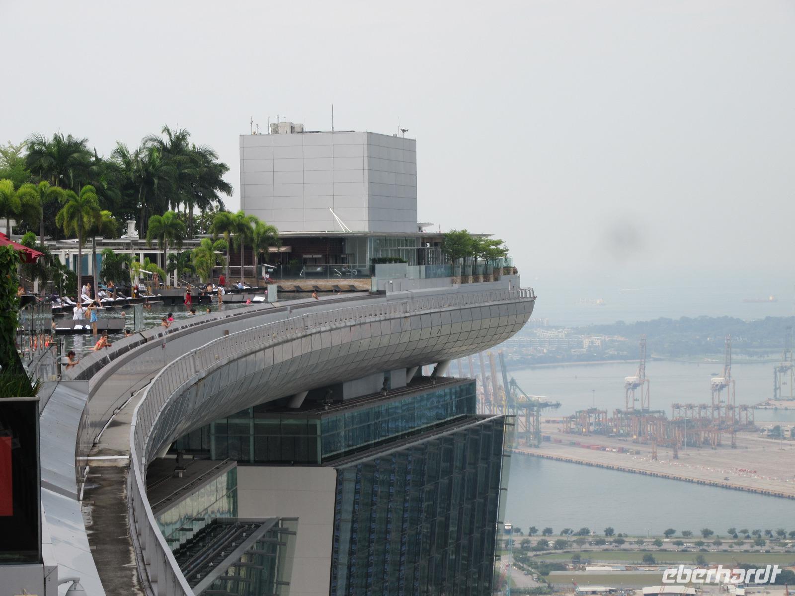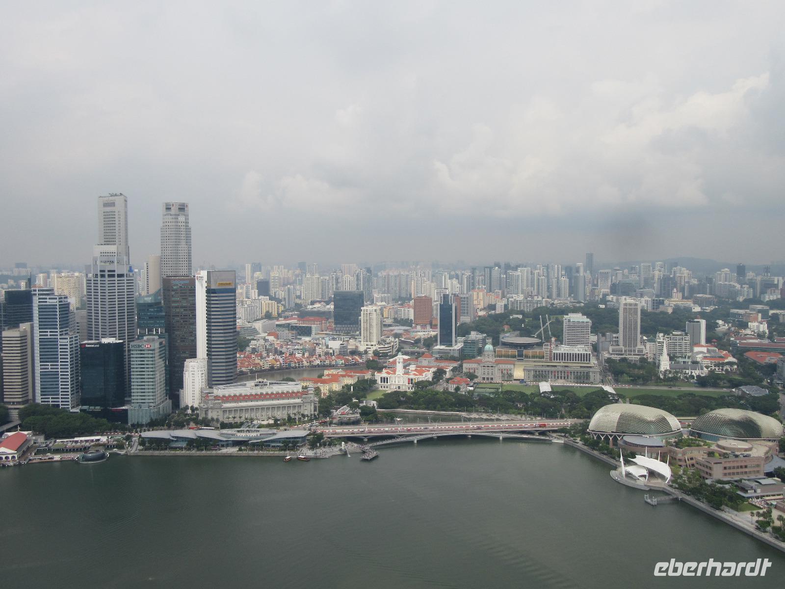 Der Vormittag steht uns noch zur freien Verfügung und wir nutzen unsere Freizeit natürlich gern aus. Nach dem Frühstück fahren wir zum Marina Bay Sands Hotel um dort auf den Skypark hinauf zu fahren. Von hier oben haben wir eine fantastische Aussicht über ganz Singapur. Danach genießen wir einen zweiten "Kaffee" ;) und haben Glück, denn genau in diesem Moment beginnt es zu regnen. Wenig später fahren wir dann zurück ins Hotel und jeder nimmt sich noch einmal ein paar Minuten für sich.