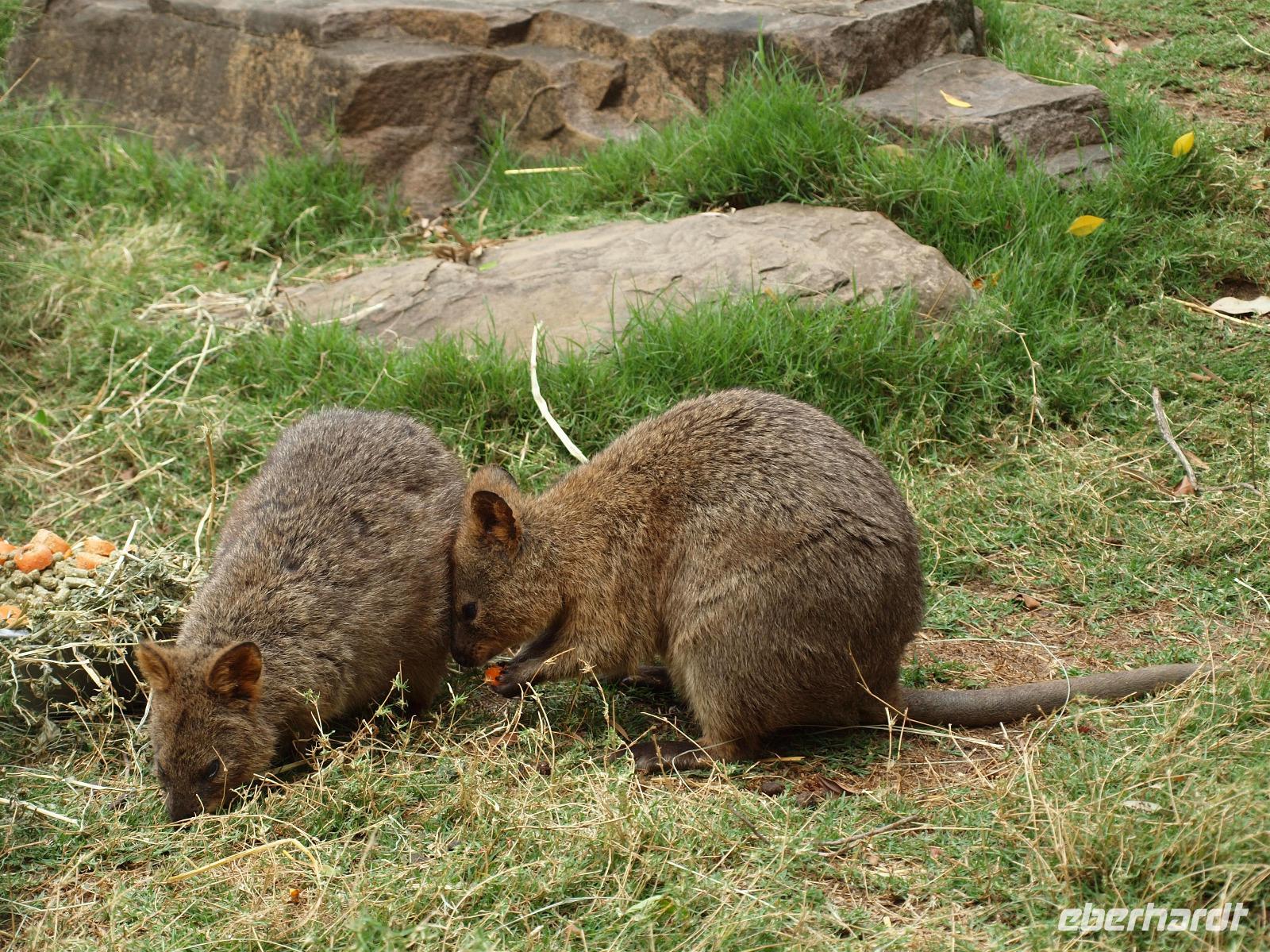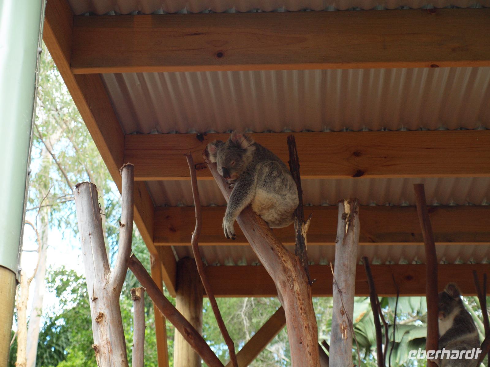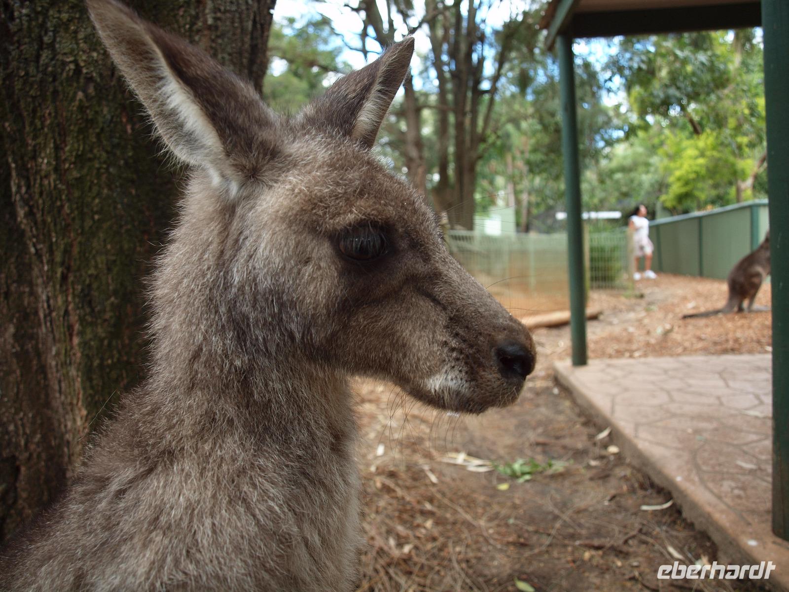 Eine Traumzeitlegende der Aborigines erzählt uns was mit den Schwestern passiert ist... "Ihre Namen sind Meehni (922 m), Wimlah (918 m) und Gunnedoo (906 m). Die drei lebten mit ihrem Vater, Tyawan, einem Zauberdoktor, in der Gegend. Nahebei wohnte auch der Bunyip, vor dem sie Angst hatten. Eines Tages, als der Vater ins Tal ging und seine Töchter auf den höchsten Punkt der Klippen gebracht hatte um sie in Sicherheit zu wissen, erschrak Meehni, als sie einen Tausendfüßler erblickte. Sie warf einen Stein nach ihm, der aber über die Klippen rollte. Bunyip wachte dadurch auf und war verärgert; als er die Schwestern erblickte, ging er wütend auf sie los. Tyawan sah das vom Tal aus und nahm seinen Zauberknochen und verwandelte die drei nahe beieinander stehenden Schwestern in drei Felstürme, um sie zu schützen. Der Bunyip wandte sich nun gegen Tyawan, der sich aber selber in einen Leierschwanz verwandelte und davonflog. Dabei verlor er leider seinen Zauberknochen, den er auch heute noch sucht und die drei Schwestern warten und hoffen, dass er ihn bald findet." Nach dem Mittagessen verlassen wir die blauen Berge, legen noch einen kleinen Stadtbummel in Leura. Das Städtchen ist geprägt von Kunstgalerien, Cafés und Restaurants und kleinen Boutiquen. Besonders berühmt ist hier der Candy Store, ein Bonbonladen in dem sich tausende Süßigkeiten in den Regalen türmen, die das Herz begehren könnte. Weiter geht es und ein Besuch im Featherdale Wildlife Park steht auf dem Programm. Hier sehen wir Kängurus, Koalas, Dingos und den gefährlichen Kasuar. Nach dem Besuch heißt es dann auch schon Abschied nehmen, das war unser letzter Tag in Sydney und auch mit Ulli. Zurück im Hotel verbringen wir den Abend in Eigenregie. Bei einem abendlichen Spaziergang zieht es uns noch zum Queen Victoria Gebäude. Irgendwie scheint dieses Gebäude aus einer anderen Zeit übrig geblieben zu sein, tatsächlich wurde es Mitte des 19. Jahrhunderts gebaut. Mitten zwischen gläsernen Wolkenkratzern steht dieses prunkvolle viktorianische Gebäude. Auch der Innenbereich erinnert an die gute alte Zeit. Überall Säulen, Kuppelchen, eine schmale Wendeltreppe, Gold und Glas. Zwei große mechanische Uhren zeigen Geschichten aus dem englischen Königreich. Einfach Wundervoll! Bei einem zweiten Anlauf für die Obar müssen wir widerwillig den Plan ändern und kehren schließlich in eines der Restaurants ein und lassen den letzten Abend dann bei einem Spaziergang zurück zum Hotel ausklingen.