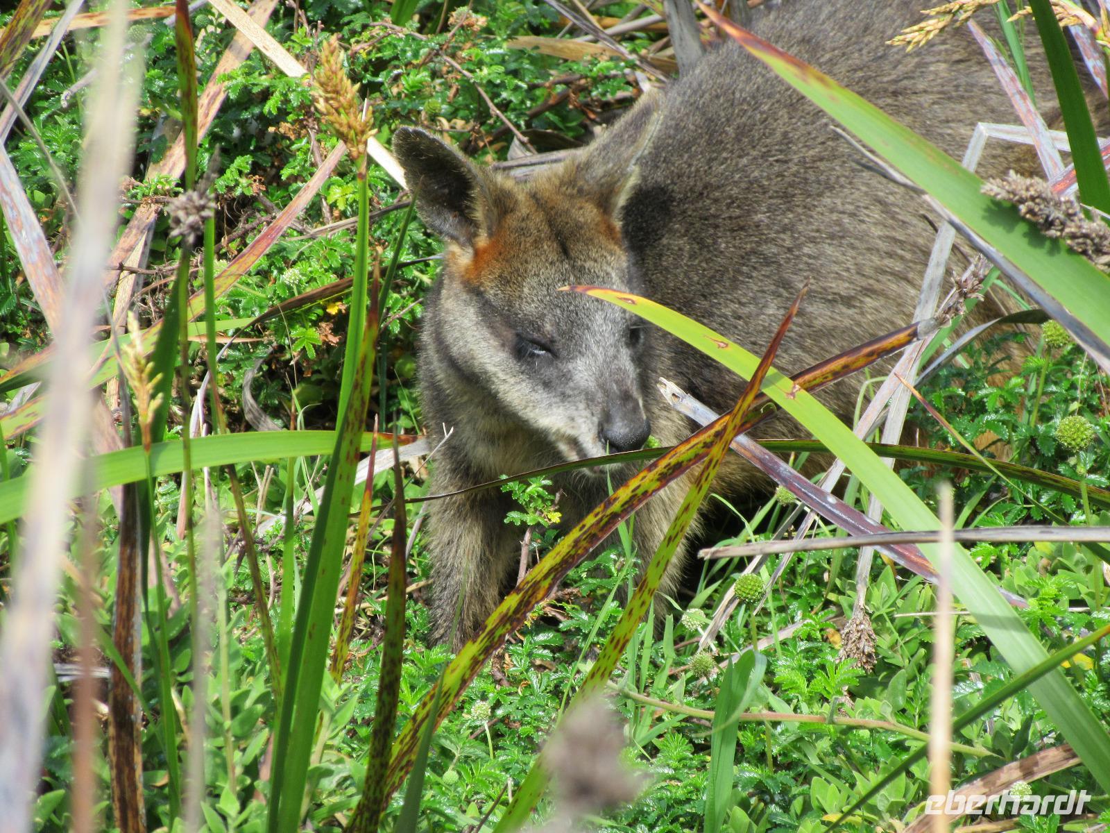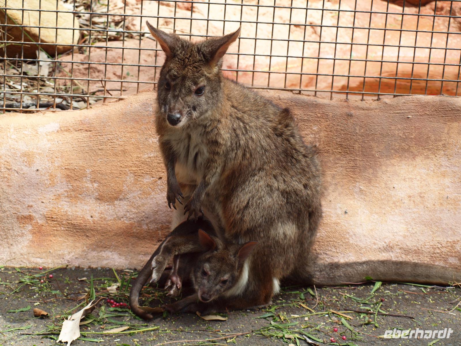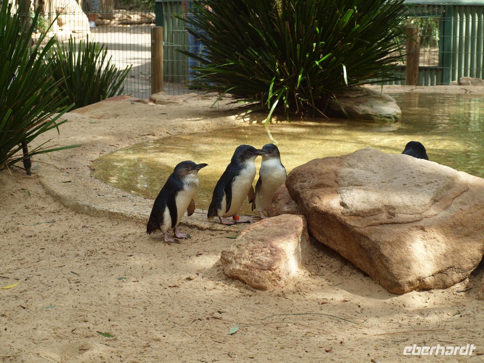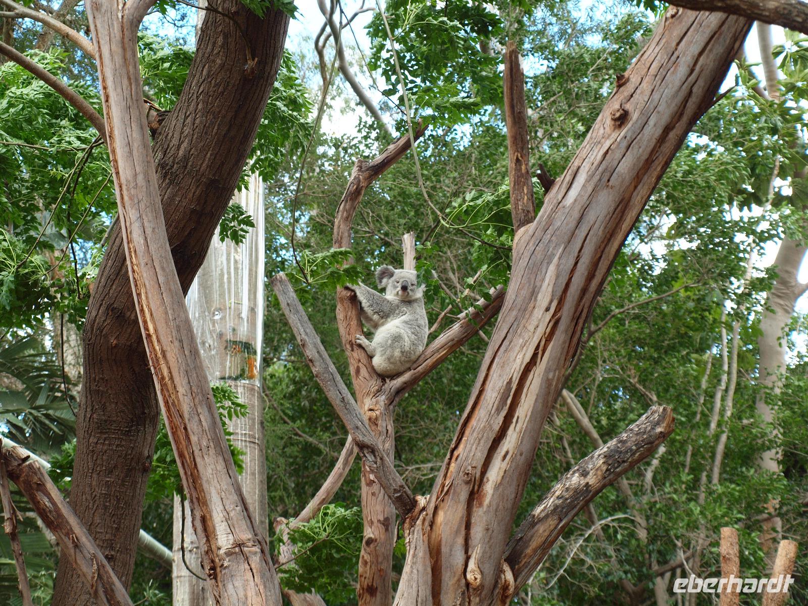 Eine Traumzeitlegende der Aborigines erzählt uns was mit den Schwestern passiert ist... "Ihre Namen sind Meehni (922 m), Wimlah (918 m) und Gunnedoo (906 m). Die drei lebten mit ihrem Vater, Tyawan, einem Zauberdoktor, in der Gegend. Nahebei wohnte auch der Bunyip, vor dem sie Angst hatten. Eines Tages, als der Vater ins Tal ging und seine Töchter auf den höchsten Punkt der Klippen gebracht hatte um sie in Sicherheit zu wissen, erschrak Meehni, als sie einen Tausendfüßler erblickte. Sie warf einen Stein nach ihm, der aber über die Klippen rollte. Bunyip wachte dadurch auf und war verärgert; als er die Schwestern erblickte, ging er wütend auf sie los. Tyawan sah das vom Tal aus und nahm seinen Zauberknochen und verwandelte die drei nahe beieinander stehenden Schwestern in drei Felstürme, um sie zu schützen. Der Bunyip wandte sich nun gegen Tyawan, der sich aber selber in einen Leierschwanz verwandelte und davonflog. Dabei verlor er leider seinen Zauberknochen, den er auch heute noch sucht und die drei Schwestern warten und hoffen, dass er ihn bald findet." Nach dem Mittagessen verlassen wir die blauen Berge, legen noch einen kleinen Stadtbummel in Leura. Das Städtchen ist geprägt von Kunstgalerien, Cafés und Restaurants und kleinen Boutiquen. Besonders berühmt ist hier der Candy Store, ein Bonbonladen in dem sich tausende Süßigkeiten in den Regalen türmen, die das Herz begehren könnte. Weiter geht es und ein Besuch im Featherdale Wildlife Park steht auf dem Programm. Hier sehen wir Kängurus, Koalas, Dingos und den gefährlichen Kasuar. Nach dem Besuch heißt es dann auch schon Abschied nehmen, das war unser letzter Tag in Sydney und auch mit Ulli. Zurück im Hotel verbringen wir den Abend in Eigenregie. Bei einem abendlichen Spaziergang zieht es uns noch zum Queen Victoria Gebäude. Irgendwie scheint dieses Gebäude aus einer anderen Zeit übrig geblieben zu sein, tatsächlich wurde es Mitte des 19. Jahrhunderts gebaut. Mitten zwischen gläsernen Wolkenkratzern steht dieses prunkvolle viktorianische Gebäude. Auch der Innenbereich erinnert an die gute alte Zeit. Überall Säulen, Kuppelchen, eine schmale Wendeltreppe, Gold und Glas. Zwei große mechanische Uhren zeigen Geschichten aus dem englischen Königreich. Einfach Wundervoll! Bei einem zweiten Anlauf für die Obar müssen wir widerwillig den Plan ändern und kehren schließlich in eines der Restaurants ein und lassen den letzten Abend dann bei einem Spaziergang zurück zum Hotel ausklingen.