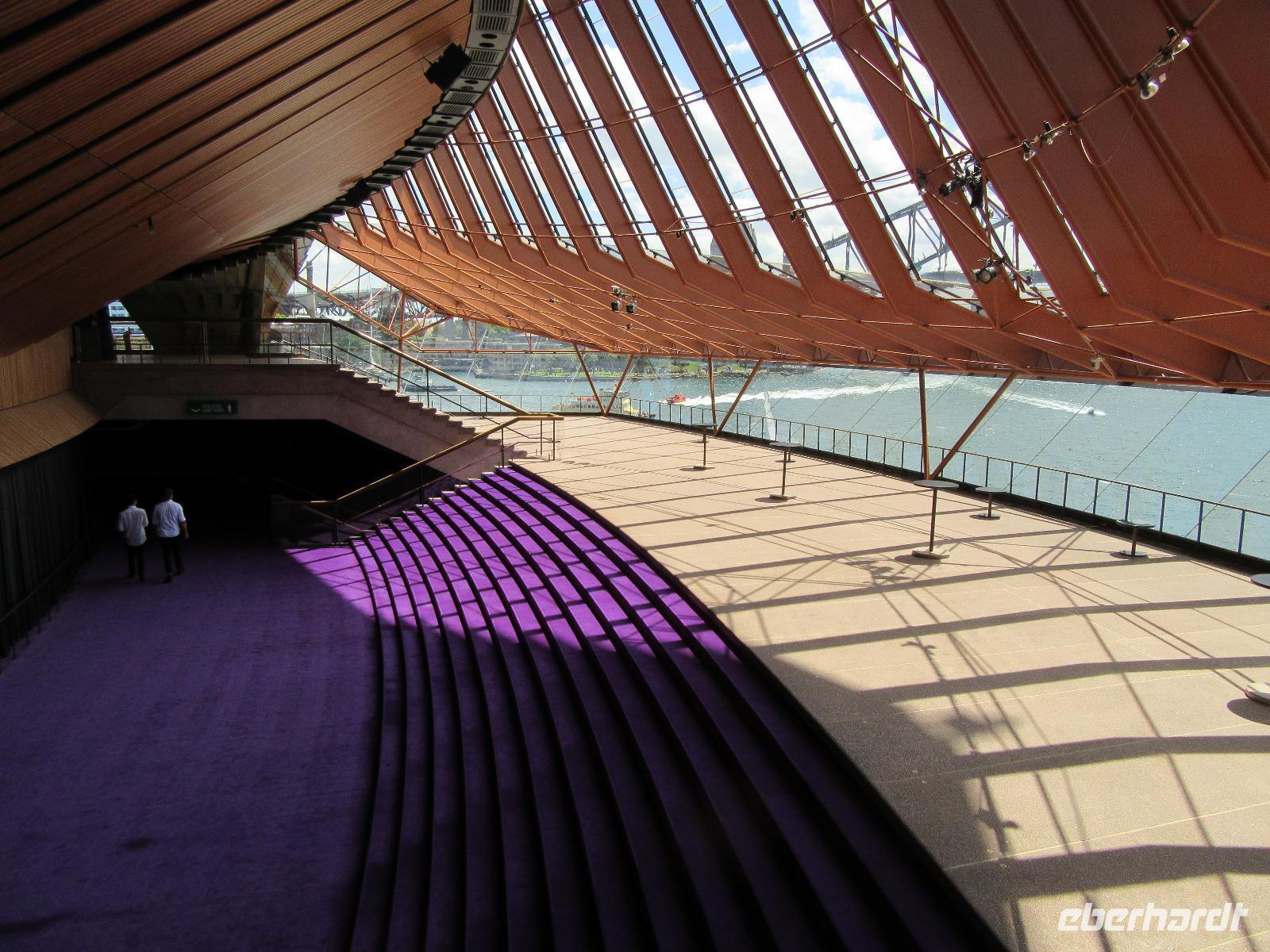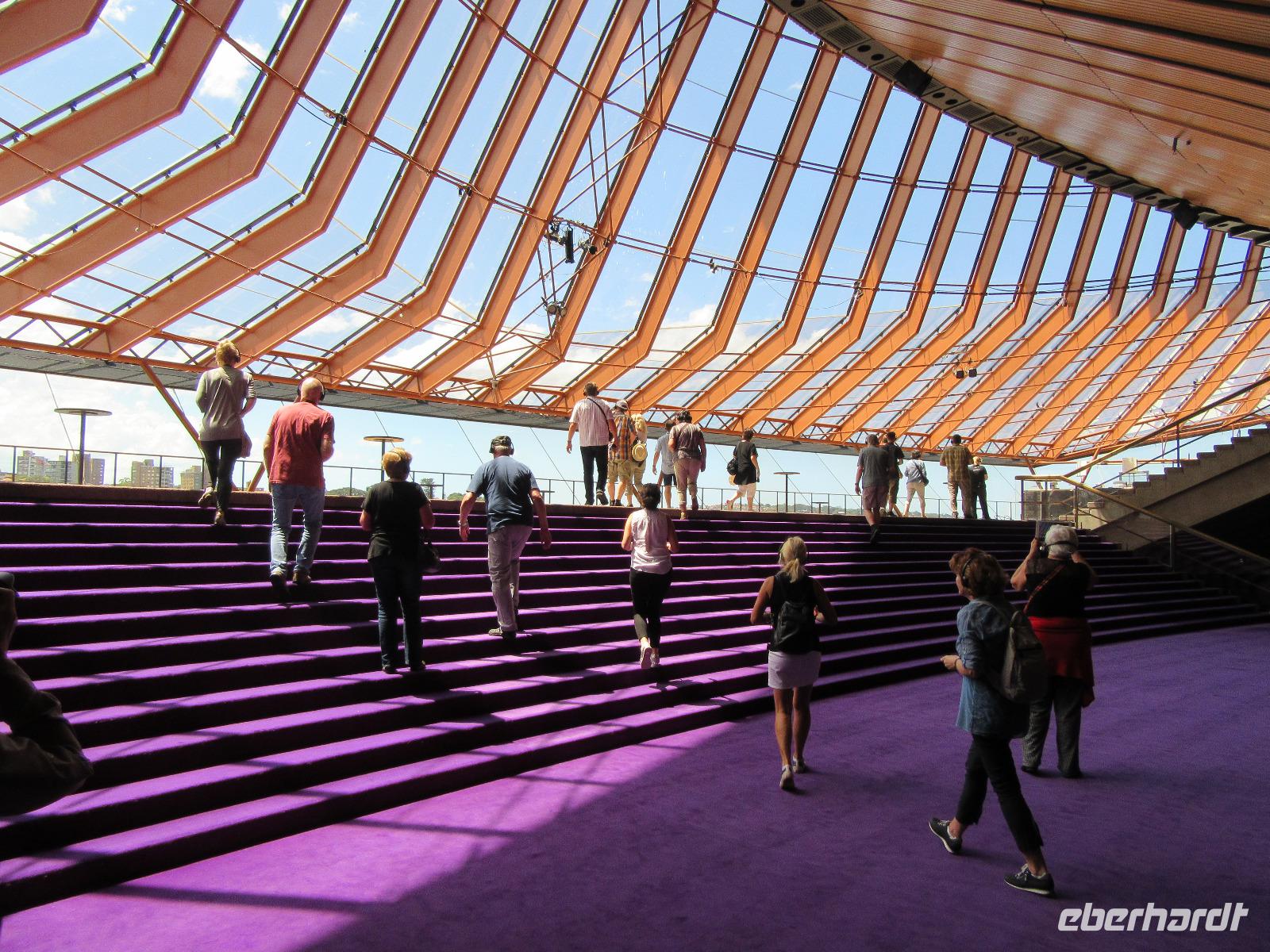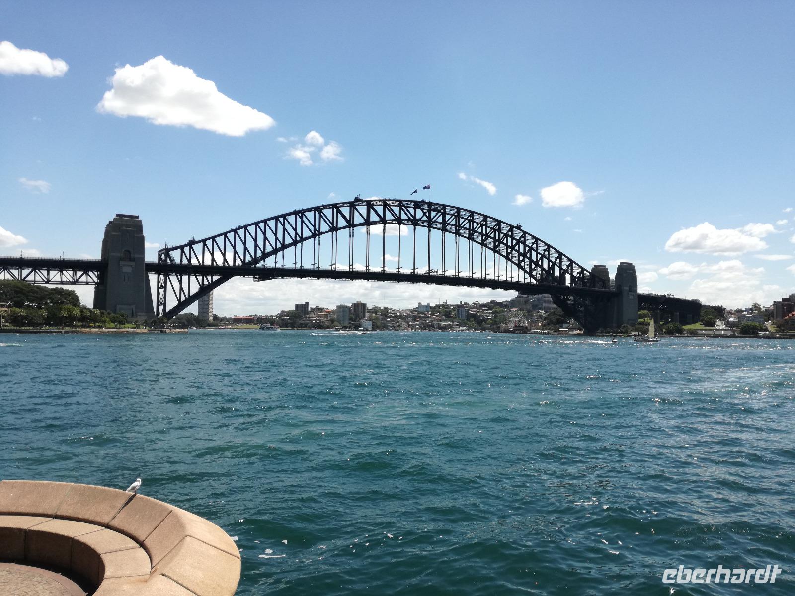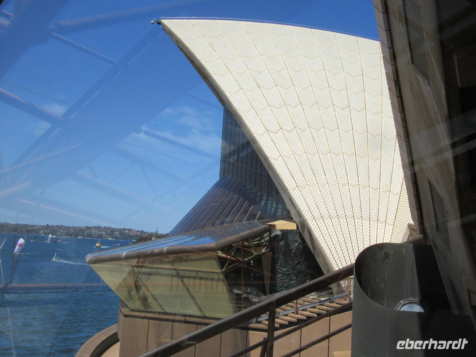 Nach dem Frühstück beginnt am späten Vormittag unser Spaziergang zum Opernhaus. Wir durchqueren den Hyde Park, der nur eine Straße vor unserem Hotel beginnt. Vorbei am ANZAC Memorial gehen wir bis zum Queens Square durch den Park, bleiben immer mal wieder stehen, schauen uns um und schlendern weiter. Links und rechts der Macquarie Straße befinden sich viele alte Gebäude wie das Oberste Gericht, das älteste Gebäude Sydneys - The Mint, ein Krankenhaus mir Sparschwein und goldener Nase für der Tür, das Parlament und die öffentliche Bibliothek. Rechter Hand beginnt dann bereits der Botanische Garten von Sydney und wir haben unser Ziel, das Opernhaus auch schon erreicht. Wir machen uns einen Treffpunkt aus und haben noch etwas Zeit zum Fotografieren. Ulli übergibt uns dann an Susanne, die uns durch das Opernhaus führen wird. Vom Dänischen Architekten Jörn Utzon entworfen, wurde sie 1953 eingeweiht. Sie steht auf der Unseco Welterbeliste. Utzon hat das selbst noch mitbekommen, hat sein Werk aber nie vollendet gesehen, denn er hatte sich mit den Auftraggebern noch während der Bauzeit so überworfen, dass er Australien verließ und nie wieder zurückkehrte. Nachdem wir eine sehr ausführliche Führung in der Oper genossen haben und sogar bei einer Probe lauschen durften, gehen wir zur Anlegestelle am Circular Quay. Mit „Captain Cook Cruises" unternehmen wir eine Hafenrundfahrt bei Sonnenschein und genießen eine Tasse Kaffee oder Tee. Vom Wasser aus haben wir nun auch noch tolle Sicht auf die Skyline, das Opernhaus und die Brücke. Wir fahren entlang der Buchten, die wir gestern schon mit dem Bus umfahren haben und schließlich kommen wir wieder zurück zur Anlegestelle. Von hier aus geht Ulli mit uns noch ein paar Schritte durch den Stadtteil „The Rocks". Wir werden von hier dann vom Bus abgeholt und zum Hotel gebracht. Abends genießen wir direkt am Darling Harbour im berühmten Nicks Seafoodrestaurant unser Abendessen. Zum Ausklang geht's für einige von uns noch in die Obar.