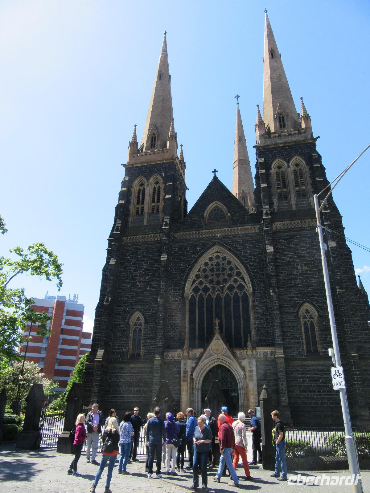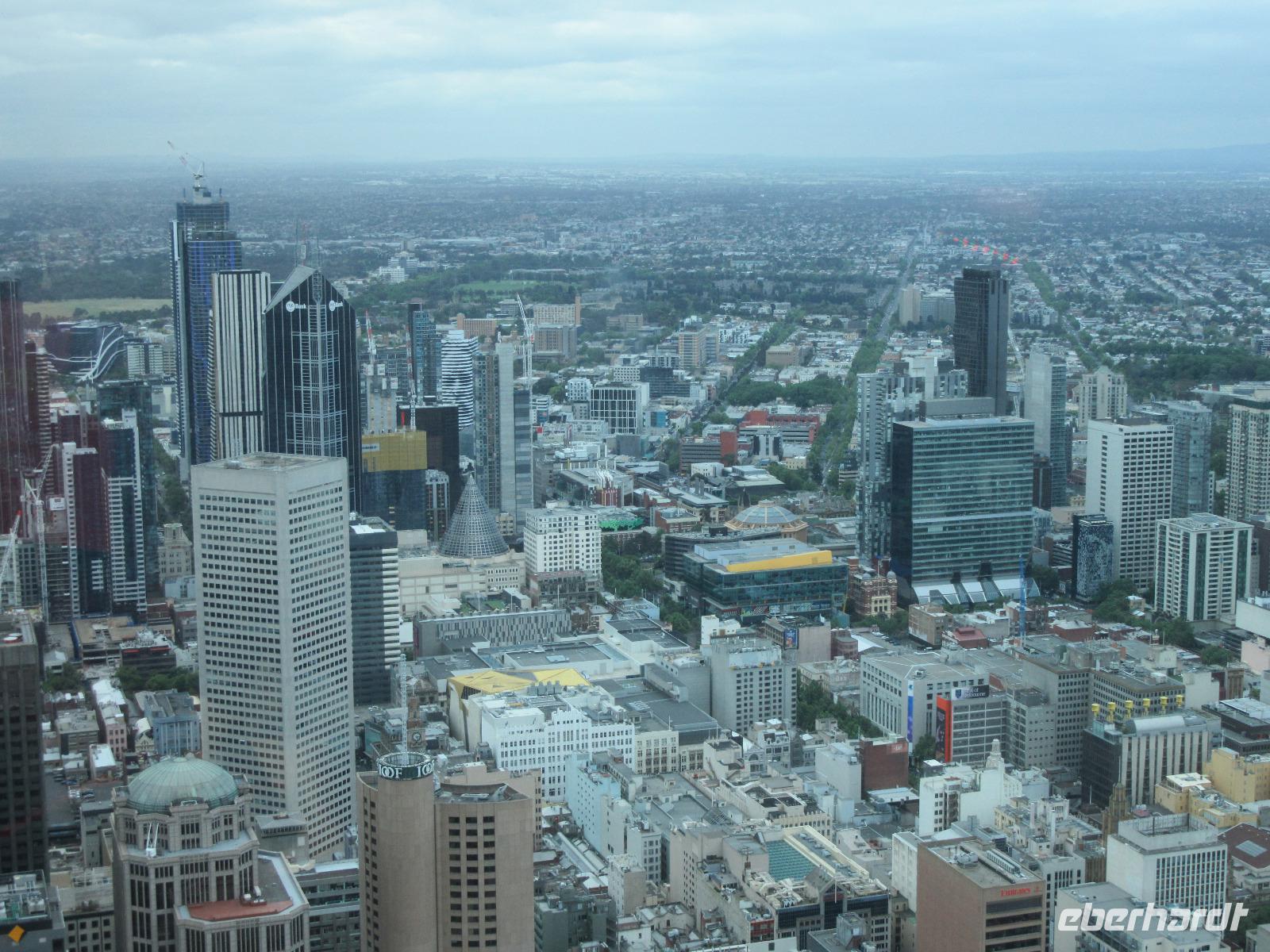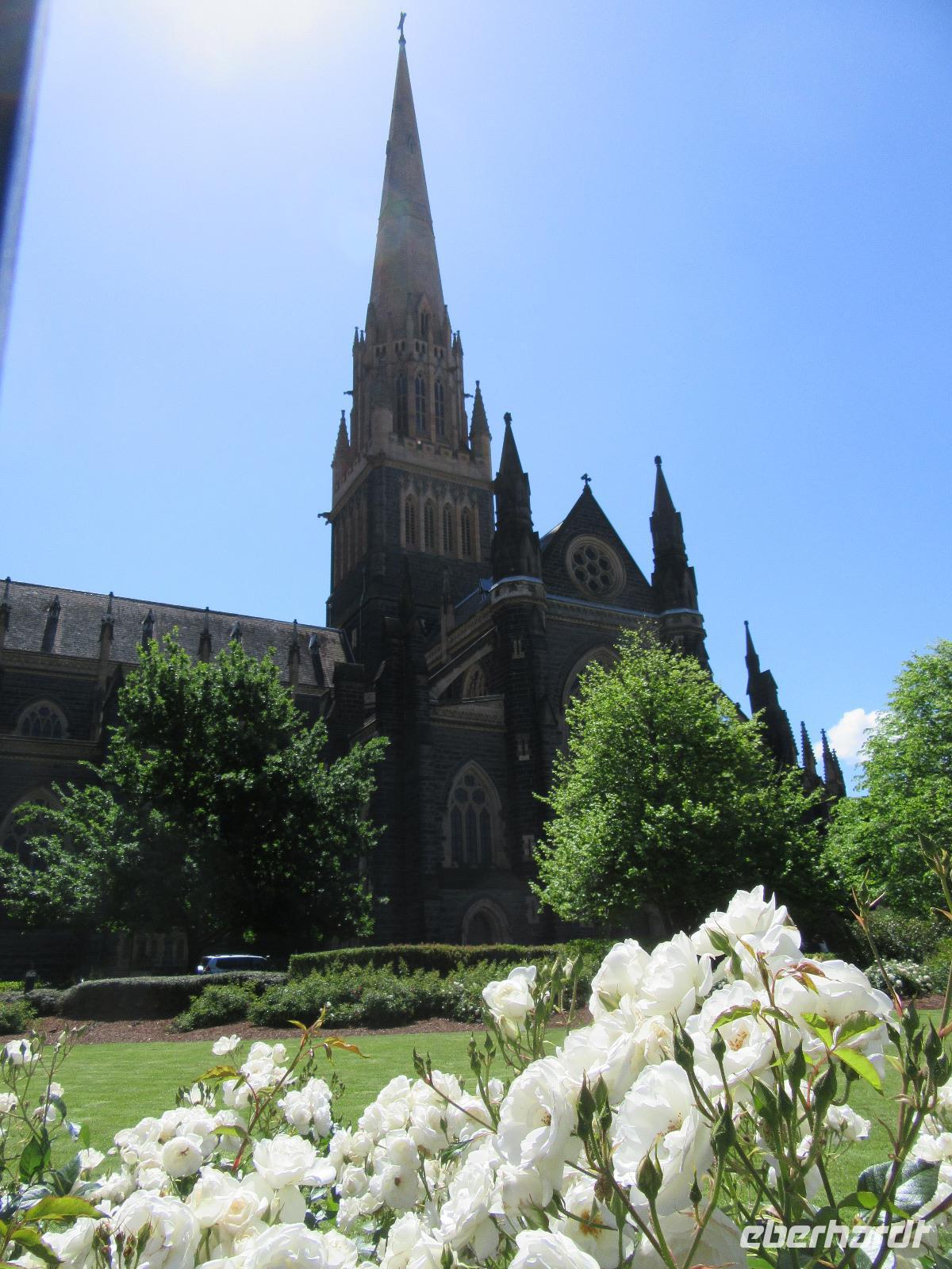 Schon sehr früh werden wir von unserem Fahrer abgeholt und zum Flughafen gebracht. Am Flughafen checken wir dann gemeinsam ein und bereiten uns auf den kurzen Flug nach Melbourne vor. In Melbourne angekommen werden wir von Kirstin, unserer Reiseleiterin für die nächsten zwei Tage, in Empfang genommen. Mit Sack und Pack starten wir dann auch direkt mit unserer Stadtrundfahrt. Erster Stopp ist der Victoria Markt. Hier versammeln sich den ganzen Tag über Händler und verkaufen frisches Obst und Gemüse, Fleisch, Fisch und Spezialitäten aus dem Ausland, sogar einen deutschen Stand finden wir hier. Frisch gestärkt, bei den Leckereien kann man ja gar nicht anders, als zu probieren, fahren wir weiter. Melbourne ist die zweitgrößte Stadt in Australien und zählt zu den lebenswertesten Städten der Welt. Im Vergleich zu Sydney ist es hier etwas „luftiger" zwischen den Straßen. Kreativ, aufregend, multikulti - genau so wird Melbourne beschrieben und wir wollen uns nun davon überzeugen lassen. Wir fahren durch die Straßen des Zentrums, des CBDs, hier sind einige Banken, Büros, Shoppingmalls und Restaurants zu finden. Etwas außerhalb des Stadtzentrums sieht man noch die alten, teils bereits restaurierten Terrassenhäuser. Als nächstes halten wir vor dem Royal Exhibition Gebäude. Es ist ein Ausstellungsgebäude in den Carlton Gardens, neben dem Melbourne Museum und dient u.a. für Ausstellungen und Zwischen 1901 und 1928 tagte das Parlament Victorias ebenfalls hinter diesen Mauern. Nächster Halt ist die St. Patricks Kathedrale in der wir sogar eine kleine Kostprobe des Orgelspiels zu hören bekommen. Direkt neben der kleinen Kathedrale befindet sich der Fitzroy Garten, dieser ist bekannt für Cooks Cottage. Das Haus von Cooks Eltern ist das einzige im 18. Jahrhundert erbaute Gebäude in Melbourne, wurde jedoch ursprünglich in Yorkshire (England) erbaut. 1933 wurde es abgebaut und nach Australien transportiert. Viele Menschen erinnert es heute an den Entdecker der australischen Ostküste, James Cook, der Melbourne und Victoria allerdings nie betreten hat auch das Haus hat nie ihm, sondern seinen Eltern gehört. Der Weg führt uns weiter an einigen Stadien des Olympiaparks vorbei. Wieder im Stadtzentrum steigen wir am Forum aus und machen einen kleinen Spaziergang. Dabei sehen wir u.a. die St. Pauls Cathedrale und überqueren den Yarra Fluss. Von der Brücke aus sieht man sogar noch einmal das Cricket Stadion. Wir steigen noch einmal in den Bus ein um zu einem weiteren und den damit letzten Punkt auf unserer Liste zu fahren. Die botanischen Gärten sind unser Ziel, auch gibt es wieder ein ANZAC Denkmal, dieses bietet uns einen tollen Blick auf die Skyline Melbournes. Kirstin bringt uns noch mit ins Hotel, welches in direkter Nachbarschaft zum höchsten Gebäude Melbournes liegt, dem Eureka Tower.