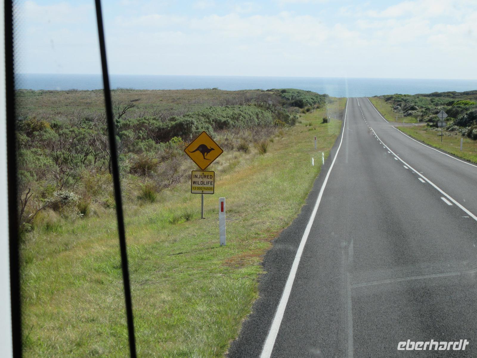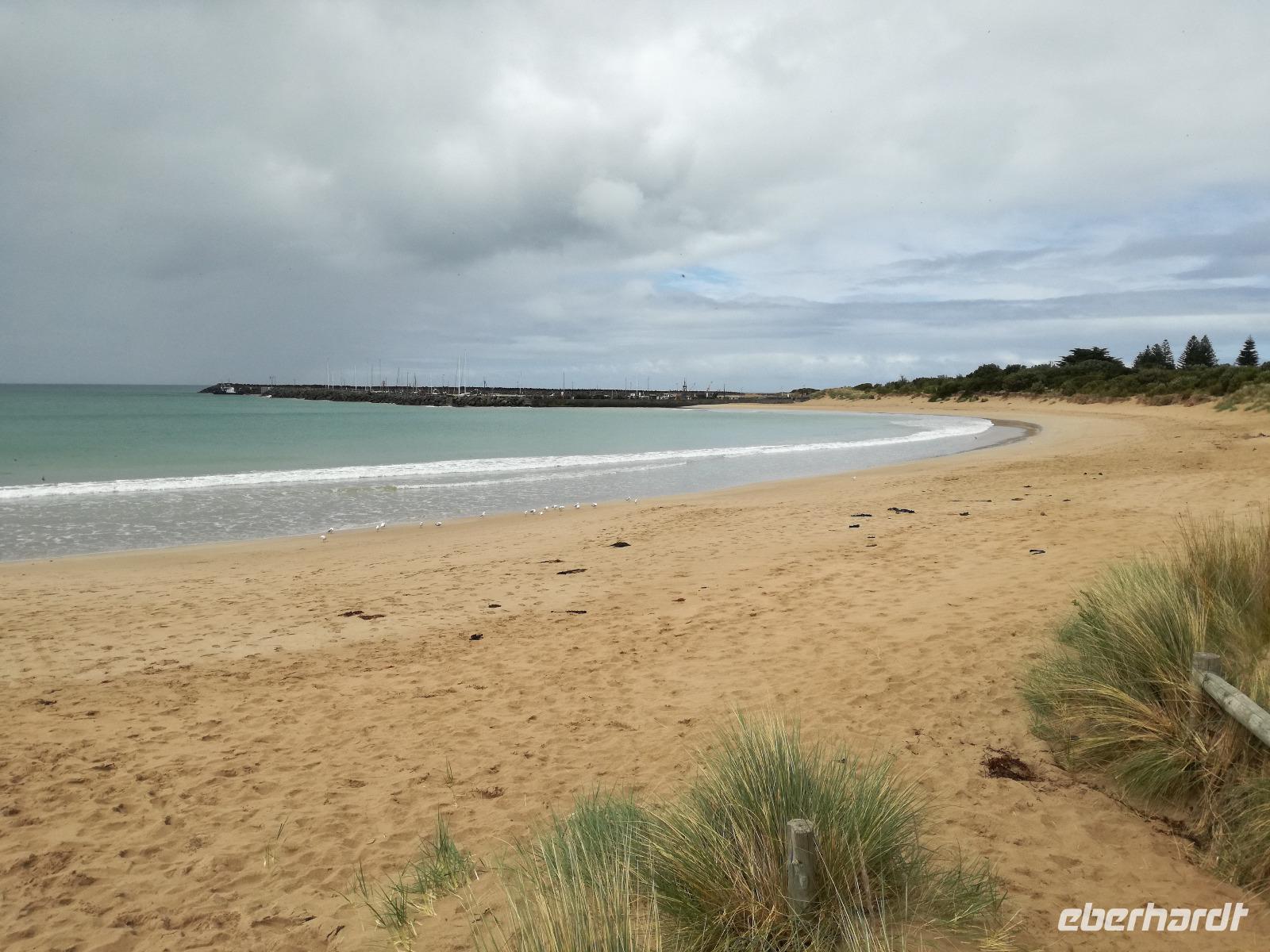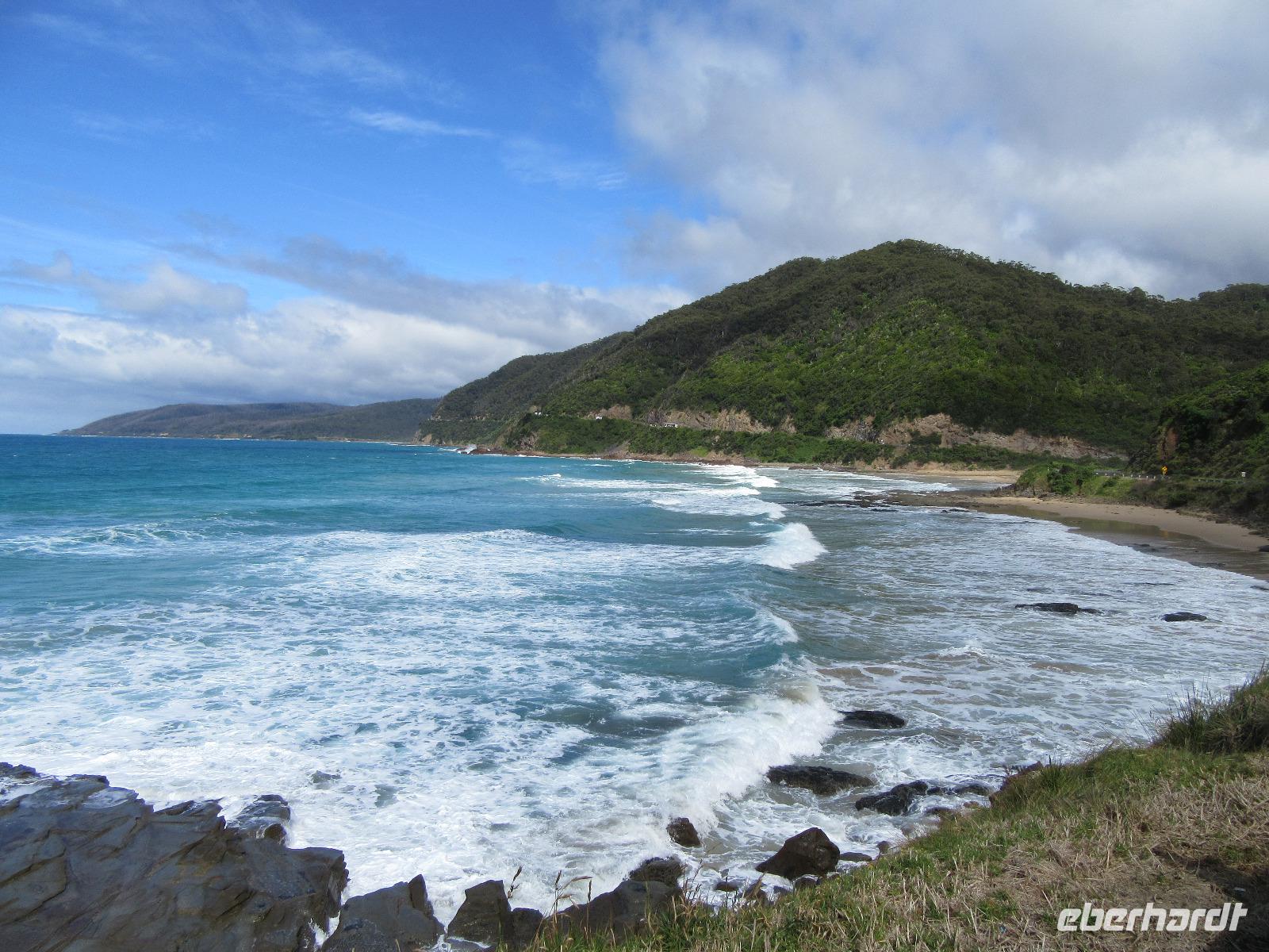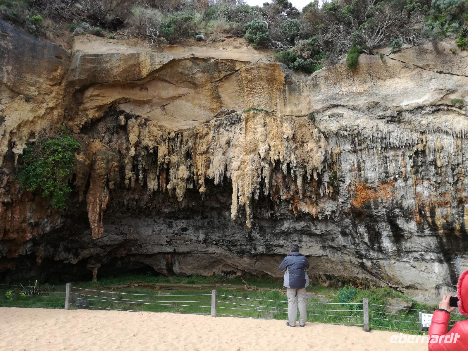 Ein langer, aber auch vielseitiger Tag steht uns heute bevor. Wir beginnen unseren Tagesausflug mit Sonnenschein und guter Laune in Richtung Südwesten. Vorbei an Werribee und Geelong, zwei relativ großen Vororten von Melbourne, erreichen wir Torquay. Nach einer kurzen Pause geht es direkt weiter entlang der Küste. Immer wieder sehen wir große Buchten, lange Sandstrände, das Farbenspiel des Wassers ist wundervoll. Ab und an werden wir von Regenwolken begleitet, vor allem aber immer genau dann, wenn wir für einen Fotostopp anhalten wollen. Aber wir sind ja nicht aus Zucker, richtig? Bevor wir Apollo Bay erreichen, halten wir an einem Campingplatz und werden von bunten Papageien ganz schön auf Trapp gehalten, die flauschigen Koalas scheint das nicht aus der Ruhe zu bringen, im Gegenteil, nicht mal eine Horde Touristen scheint den Schlaf der Tierchen zu stören, hier muss es gutes Eukalyptus geben ;-).