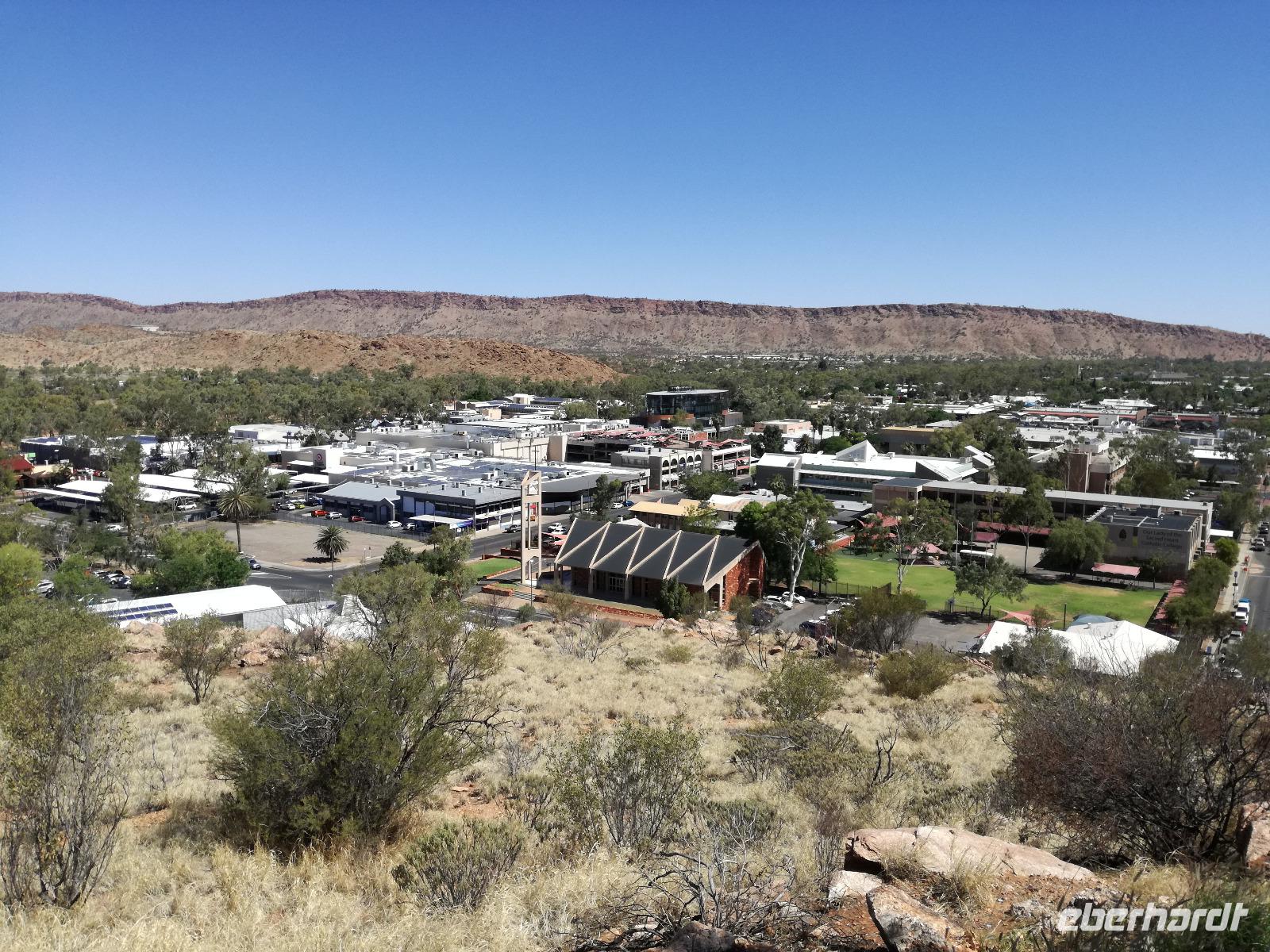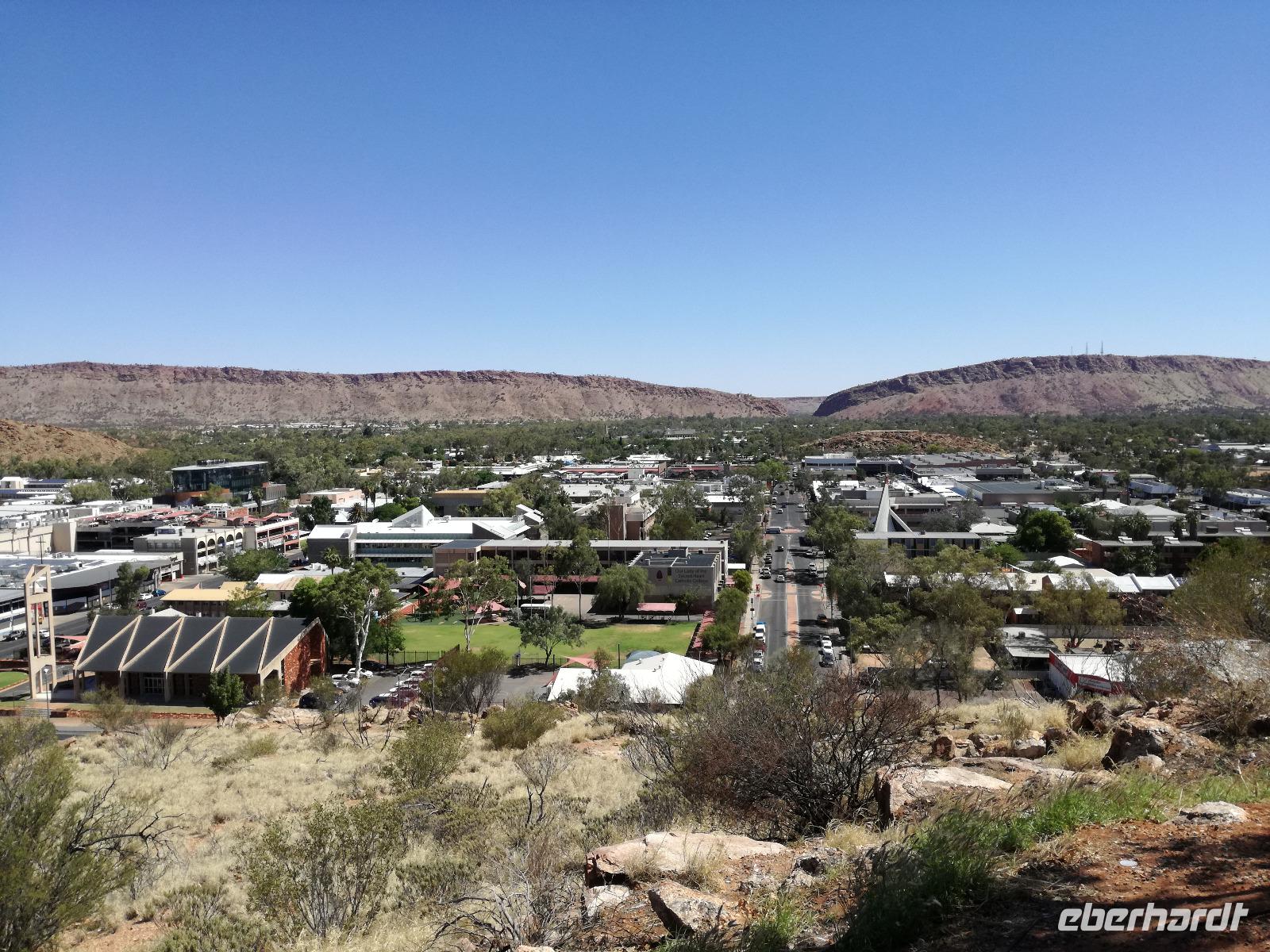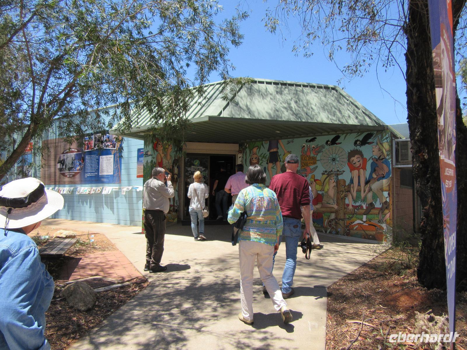 Sehr früh geht es auch heute wieder in Richtung Flughafen. Der Check-In geht relativ flott und schwupps sind wir auch schon wieder im Sicherheitsbereich. Die Maschine nach Alice Springs hat am Ende leider etwas Verspätung und wir erreichen unser Ziel eine Stunde später als geplant. Aber all das ist kein Problem, denn Eva, unsere Reiseleiterin im Outback, hat alle Termine die wir vor uns haben bereits nach hinten verschoben. Wir halten zuerst im Zentrum von Alice Springs. Wir schauen uns etwas um, gehen in die kleinen Läden und versorgen uns mit Fliegennetzen. Als nächstes gehen wir in die Schule. Die School of the Air ist eine Schule die mittlerweile über das Internet mit den Kindern auf den Farmen im Outback zusammen arbeitet und diese unterrichtet. Der Schultag findet also im Kinderzimmer vorm PC statt, es gibt ganz normale Hausaufgaben und Projektarbeiten. Die Kinder aber sehen ihre Mitschüler nur ein-zweimal im Jahr in Alice Springs. Wir schauen den Lehrern beim Unterrichten zu und schauen uns einen Film an, der das Leben der Kinder im Outback beschreibt und das System der SOA erklärt. Nach diesem interessanten Besuch fahren wir zur Telegrafenstation von Alice. Hier begann quasi die Geschichte von Alice. Die Telegraphenstation hat eine bewegende Vergangenheit und hatte eine sehr bedeutende Stellung in der Geschichte der Kommunikation. Vom ANZAC Hill aus haben wir einen tollen Ausblick über Alice, bevor wir unseren letzten Stopp bei den fliegenden Ärzten einlegen. Bei einem Film erfahren wir viel über die medizinische Versorgung der Menschen im Outback. Die unendliche Weite und die teilweise schwierigen Lebensverhältnisse zeigen uns, wie wichtig die Arbeit der fliegenden Ärzte ist. Farmer und Aborigines leben oft so weit entfernt von jeglicher Zivilisation, dass nur per Flugzeug Hilfe organisiert werden kann. Ein sehr interessanter Tag in Alice. Eva bringt uns nun ins Hotel. Es liegt etwas außerhalb des Zentrums, eine große Anlage mit einer schönen Poollandschaft. Hier gönnen wir uns eine kleine Abkühlung bevor es heute Abend noch einmal zum Abendessen in die Stadt geht. Im Overlander Steakhouse erwartet uns ein richtiges Drovers Blowout.