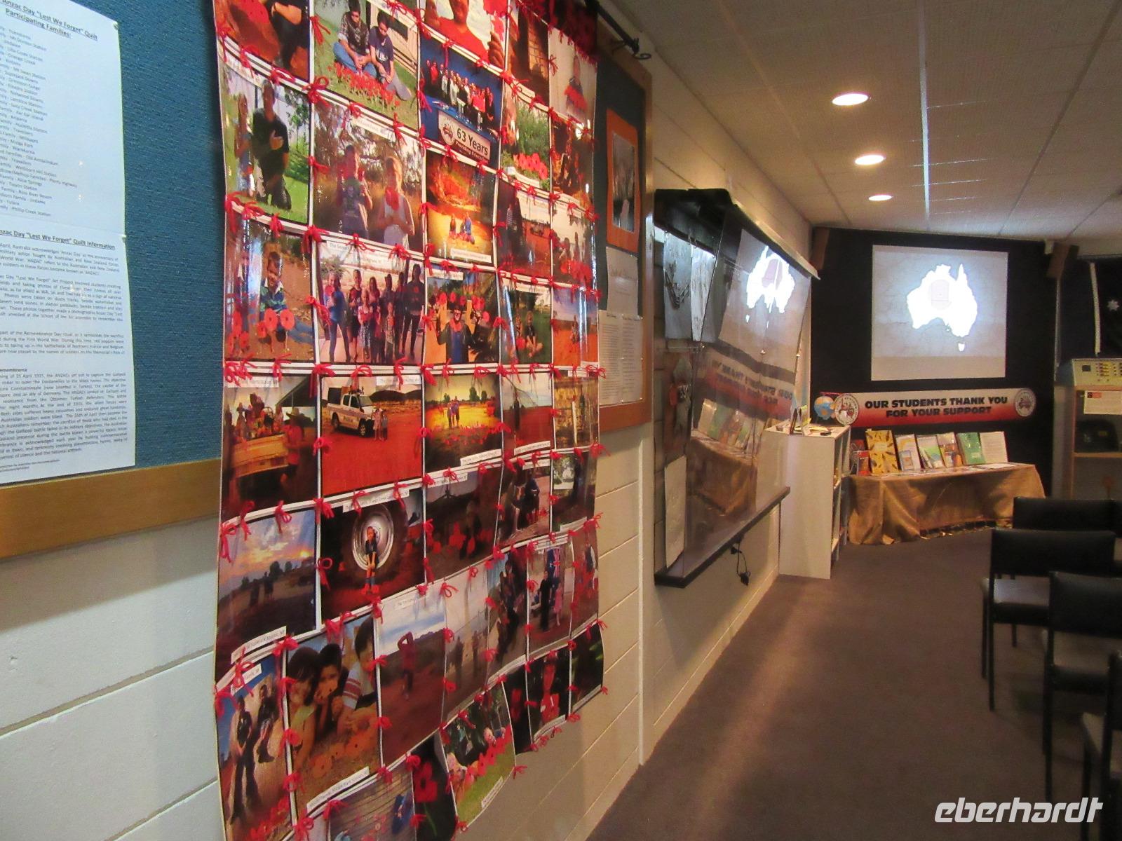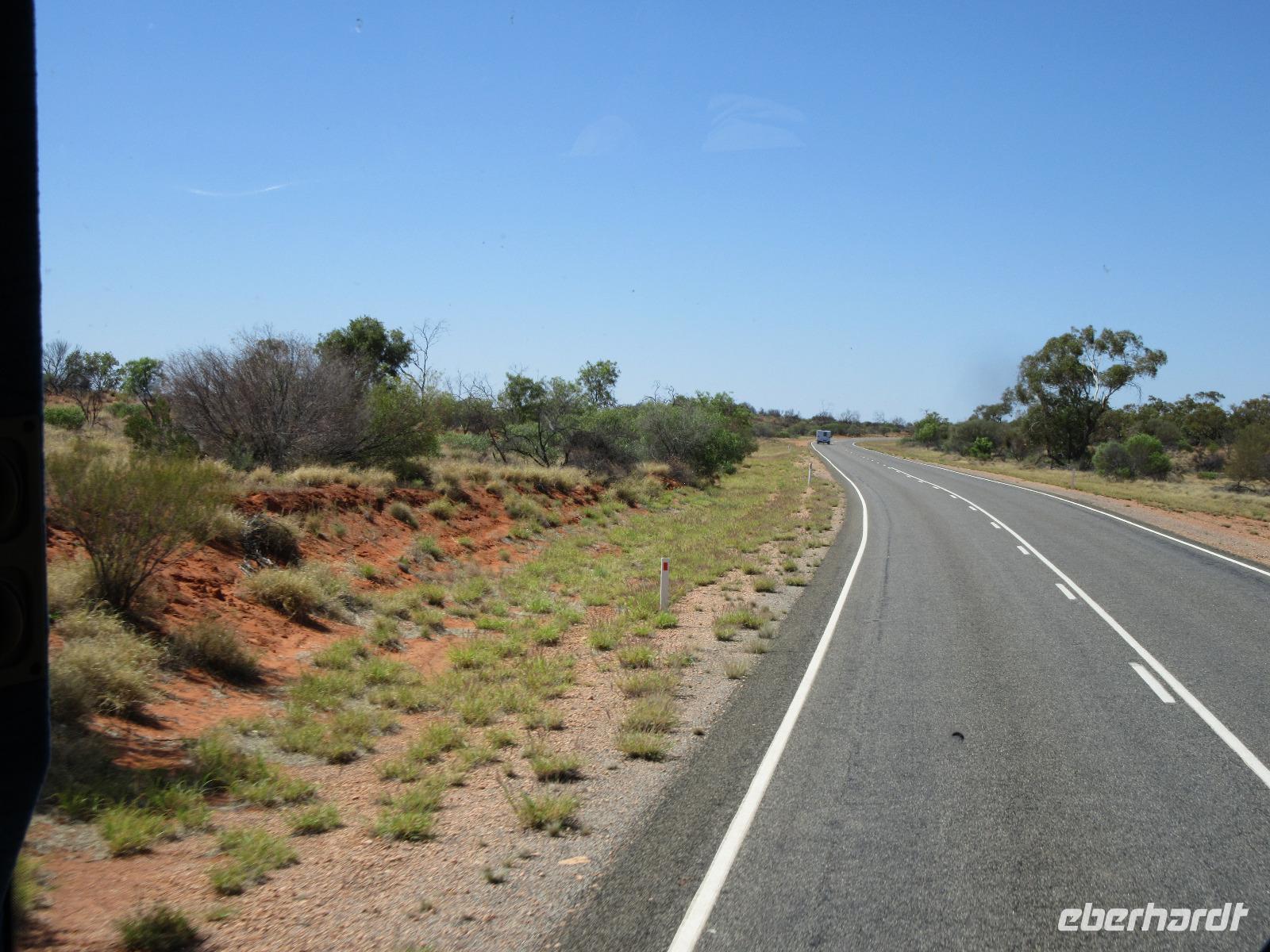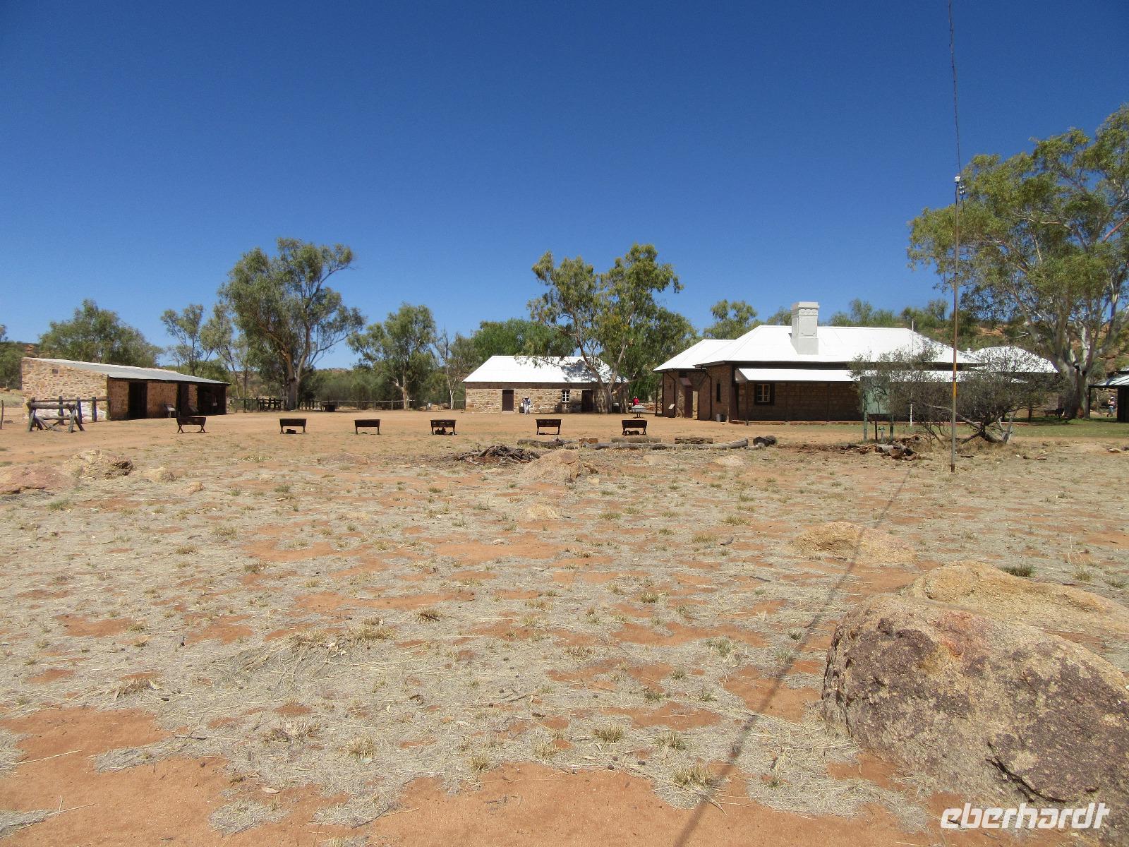 Sehr früh geht es auch heute wieder in Richtung Flughafen. Der Check-In geht relativ flott und schwupps sind wir auch schon wieder im Sicherheitsbereich. Die Maschine nach Alice Springs hat am Ende leider etwas Verspätung und wir erreichen unser Ziel eine Stunde später als geplant. Aber all das ist kein Problem, denn Eva, unsere Reiseleiterin im Outback, hat alle Termine die wir vor uns haben bereits nach hinten verschoben. Wir halten zuerst im Zentrum von Alice Springs. Wir schauen uns etwas um, gehen in die kleinen Läden und versorgen uns mit Fliegennetzen. Als nächstes gehen wir in die Schule. Die School of the Air ist eine Schule die mittlerweile über das Internet mit den Kindern auf den Farmen im Outback zusammen arbeitet und diese unterrichtet. Der Schultag findet also im Kinderzimmer vorm PC statt, es gibt ganz normale Hausaufgaben und Projektarbeiten. Die Kinder aber sehen ihre Mitschüler nur ein-zweimal im Jahr in Alice Springs. Wir schauen den Lehrern beim Unterrichten zu und schauen uns einen Film an, der das Leben der Kinder im Outback beschreibt und das System der SOA erklärt. Nach diesem interessanten Besuch fahren wir zur Telegrafenstation von Alice. Hier begann quasi die Geschichte von Alice. Die Telegraphenstation hat eine bewegende Vergangenheit und hatte eine sehr bedeutende Stellung in der Geschichte der Kommunikation. Vom ANZAC Hill aus haben wir einen tollen Ausblick über Alice, bevor wir unseren letzten Stopp bei den fliegenden Ärzten einlegen. Bei einem Film erfahren wir viel über die medizinische Versorgung der Menschen im Outback. Die unendliche Weite und die teilweise schwierigen Lebensverhältnisse zeigen uns, wie wichtig die Arbeit der fliegenden Ärzte ist. Farmer und Aborigines leben oft so weit entfernt von jeglicher Zivilisation, dass nur per Flugzeug Hilfe organisiert werden kann. Ein sehr interessanter Tag in Alice. Eva bringt uns nun ins Hotel. Es liegt etwas außerhalb des Zentrums, eine große Anlage mit einer schönen Poollandschaft. Hier gönnen wir uns eine kleine Abkühlung bevor es heute Abend noch einmal zum Abendessen in die Stadt geht. Im Overlander Steakhouse erwartet uns ein richtiges Drovers Blowout.
