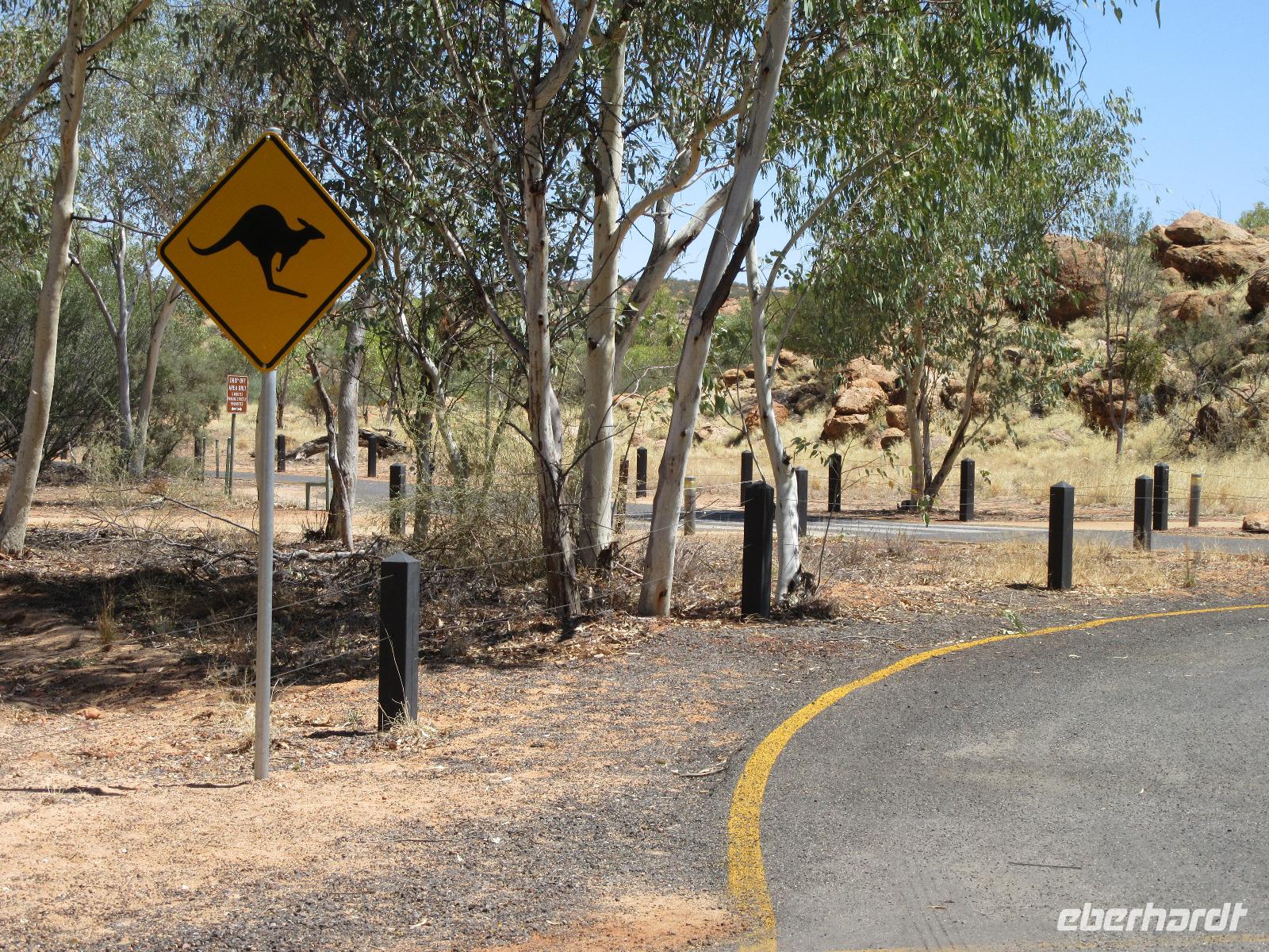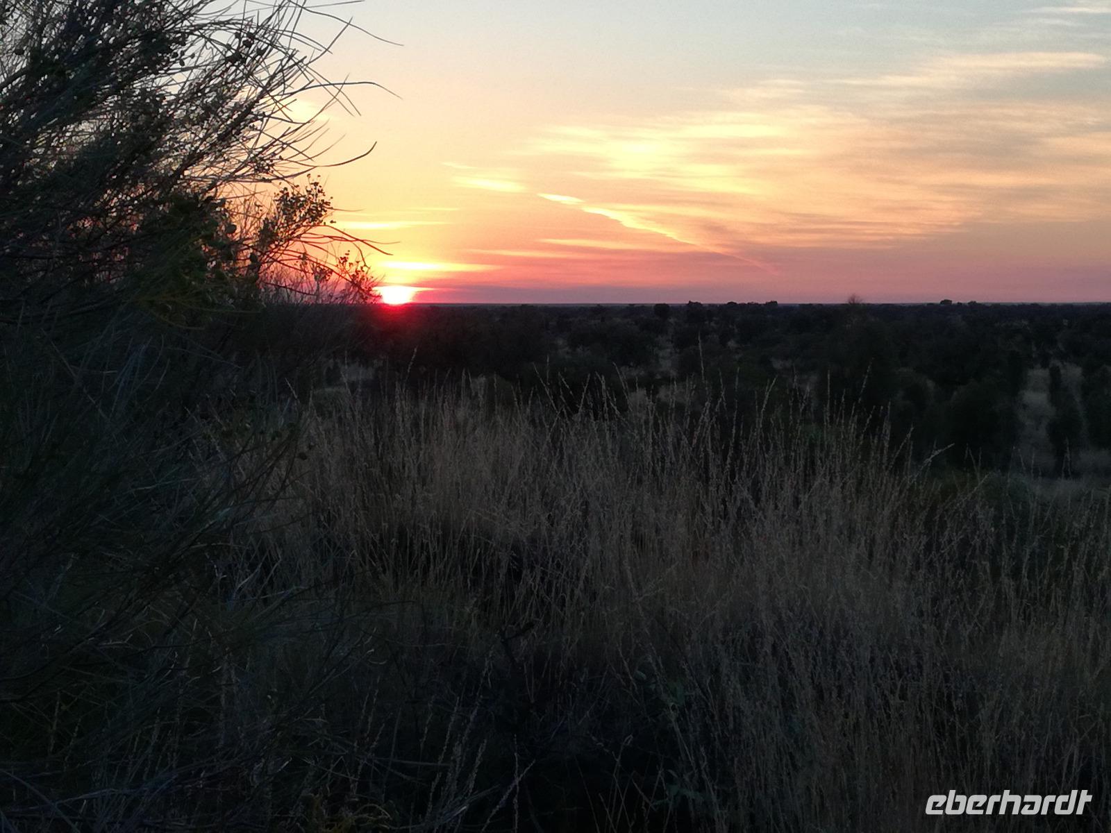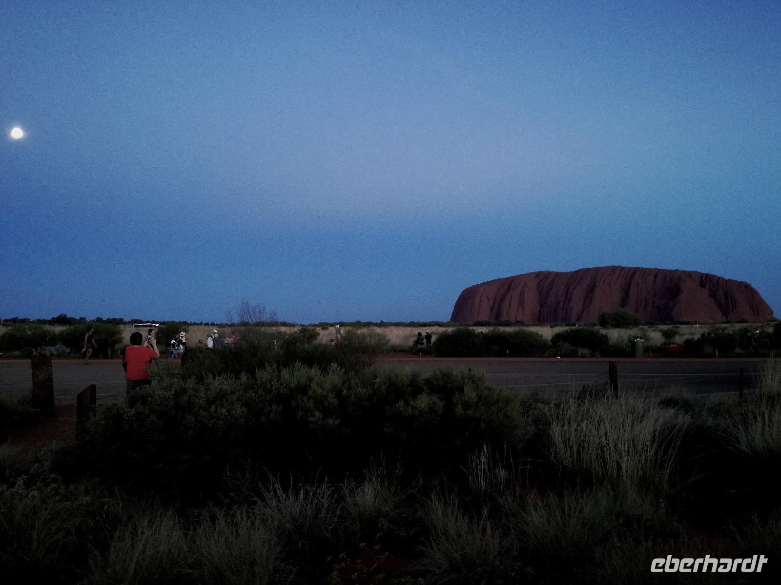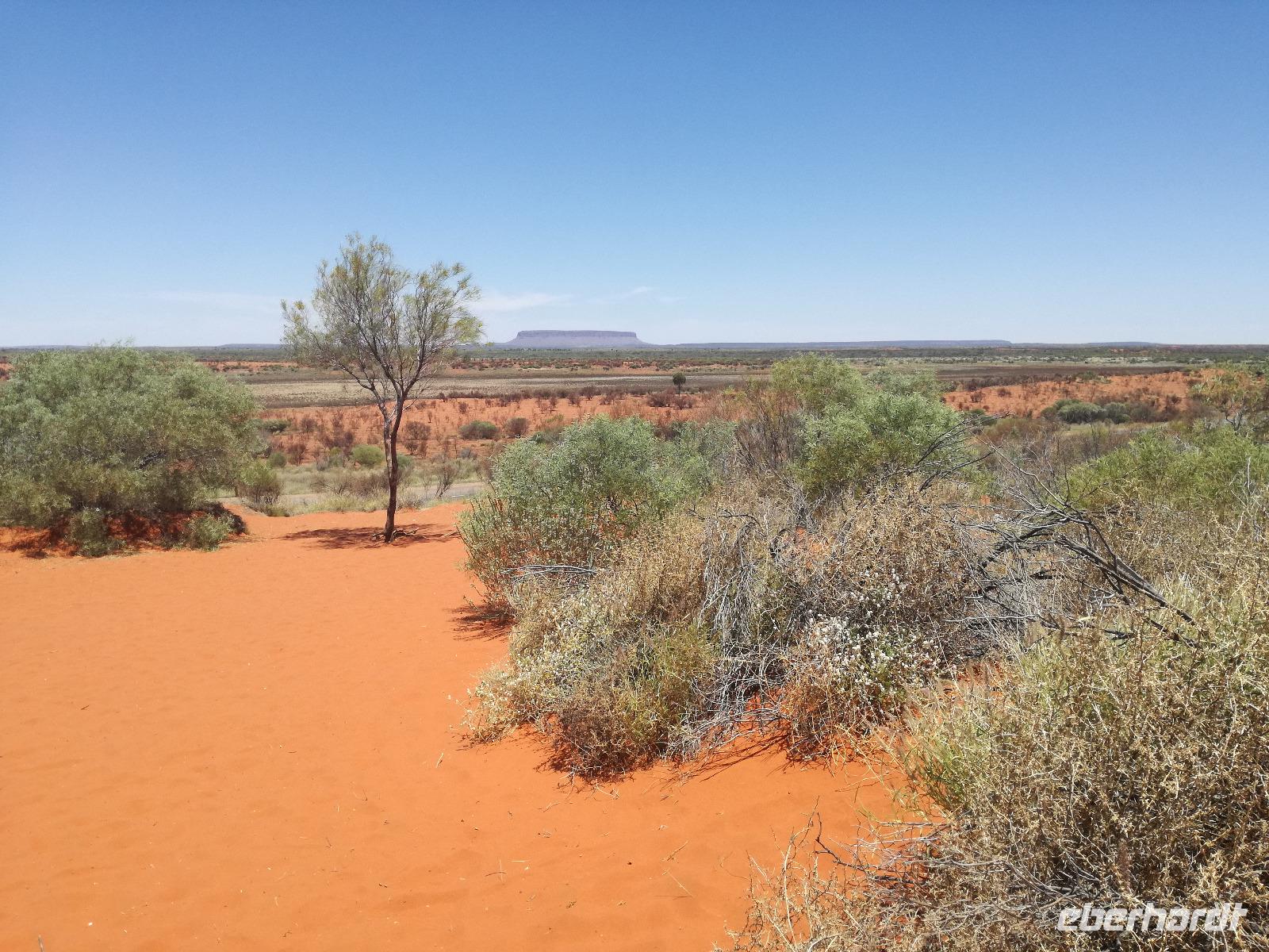 Nach dem Frühstück geht die Reise ins Outback weiter. Wir verlassen Alice Springs und begeben uns in Richtung Süden. Ein scheinbar endlos wirkende lange Straße, die immer nur gerade aus geht... Eva hat viele interessante Infos für uns auf Lager, sodass wir das Outback nicht gänzlich verschlafen, besonders die Idee bezüglich der Helikopterrundflüge weckt das Interesse bei einigen besonders. Nach einer Weile halten wir immer mal wieder an geeigneten und den einzigen Möglichkeiten an um eine Pause einzulegen. Gar nicht so leicht hier draußen, aber wir wurden ja gewarnt, richtig? Am frühen Nachmittag erreichen wir den Ort Ayers Rock Village und beziehen zuerst unser Hotelzimmer, nach einer kurzen Verschnaufpause und einem Snack fahren wir in den Nationalpark. Wir fahren zu den Olgas, Kata Tjuta - Köpfe Viele, und unternehmen eine kleine Wanderung in die Walpa Schlucht. Das ist der einzige Walk den wir aufgrund der Hitze und den steigenden Temperaturen unternehmen können, andere Strecken sind bereits gesperrt. Nach der Wanderung ist es auch schon fast Zeit den Platz für den Sonnenuntergang aufzusuchen. Ein richtiger Höhepunkt unserer Reise - der Sonnenuntergang am Ayers Rock mit einem Glas Sekt in der Hand. Wir genießen das spektakuläre Farbenspiel bis zur letzten Minute. Zurück im Hotel grillen wir unser Abendessen selbst bei einem Barbeque und gehen dann bei Zeiten schlafen, morgen früh müssen wir zeitig aufstehen...