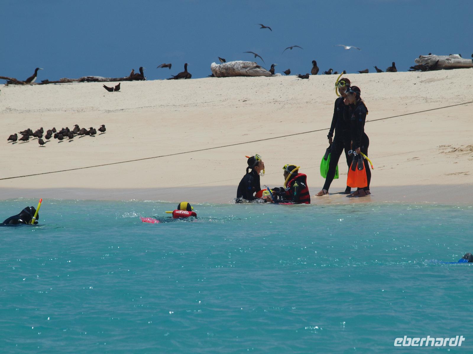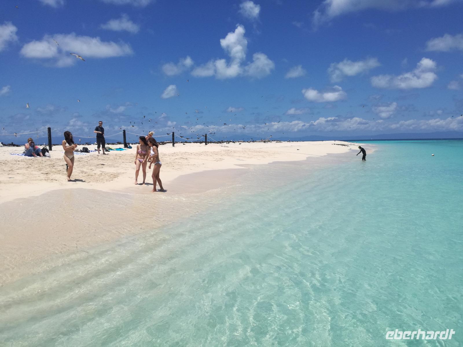Wir fahren ca. eineinhalb Stunden bis zum Riff. Die Ocean Spirit liegt in der Nähe der Riffinsel Michaelmas Cay vor Anker und mit einem Wassertaxi pendeln wir zwischen dem Katamaran und der Insel. Wir verbringen den Vormittag also mit baden, schnorcheln, sonnen, fotografieren und genießen. An Bord gibt es dann ein Mittagsbuffet und danach gehen wir alle noch auf Tauchstation mit dem Semi Uboot. Wir sind die letzten, die mit dem Uboot unterwegs sind und als wir wieder zurück an Bord der Ocean Spirit sind fahren wir wieder zurück nach Cairns. Zurück im Hotel sehen wir uns zum Abendessen wieder und schlendern danach noch etwas durch die Stadt.