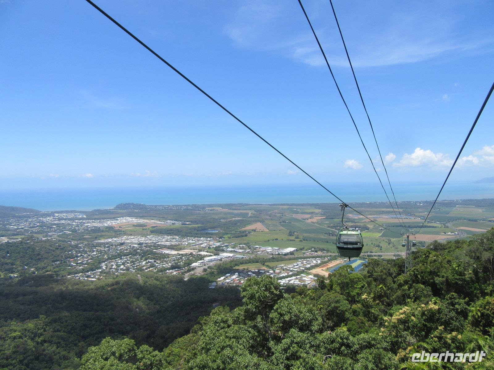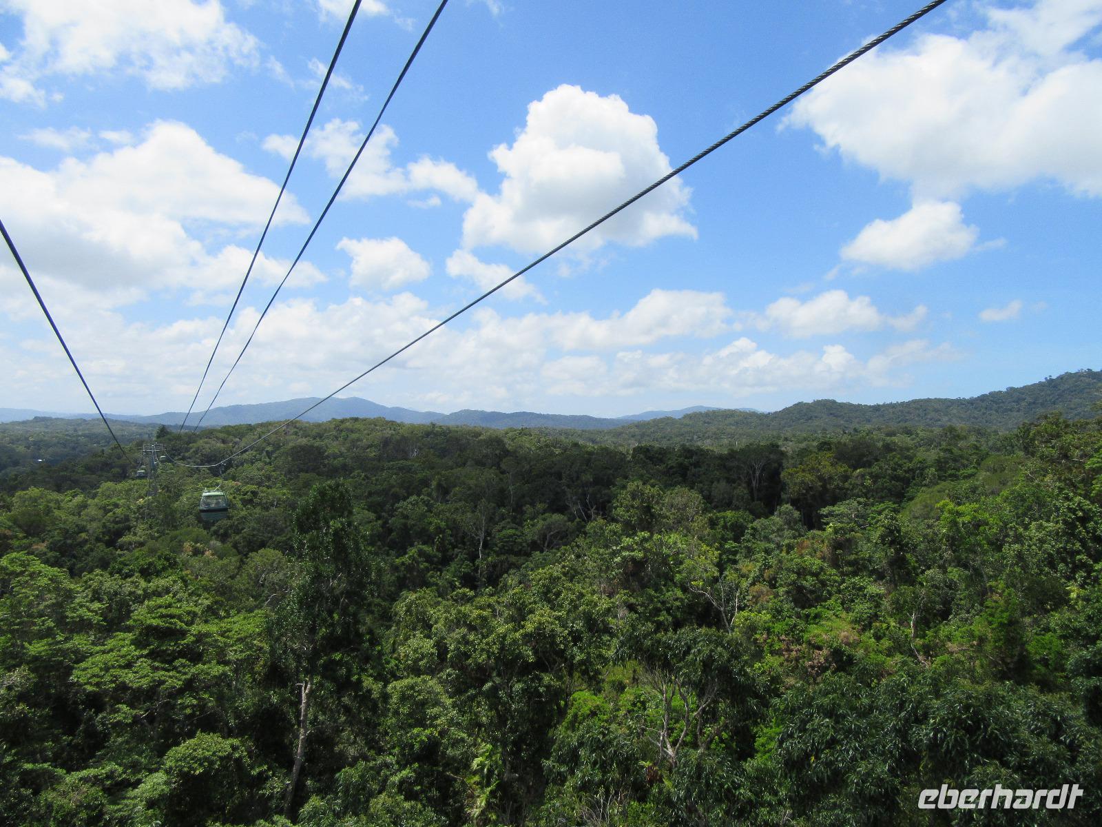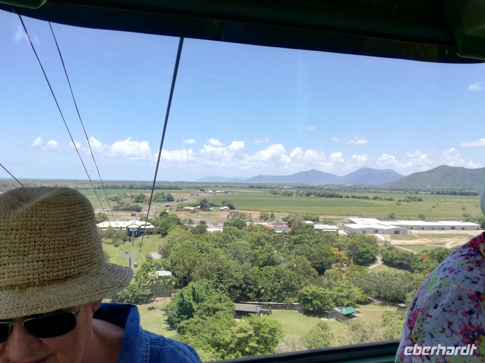 Nur wenige Meter vom Center entfernt ist die Seilbahn, die uns nach Kuranda bringt. Kuranda liegt am Barron River auf der westlichen Seite der Kuranda Range und ist vom Regenwald umschlossen. Über die Baumwipfel des Regenwaldes bringt uns die Seilbahn über zwei Zwischenstationen in rund 1,5 Stunden nach Kuranda. An der ersten Station geht man über einen kleinen Pfad durch den Regenwald, an der zweiten Station hat man einen tollen Ausblick auf die Barron Wasserfälle. In Kuranda dann angekommen haben wir Freizeit und können die Stadt auf eigene Faust erkunden. Zurück fahren wir mit der historischen Eisenbahn, die uns im gemächlichen Tempo an beeindruckenden Tälern, den Barron Falls und tollen Einblicken in die Landschaft nach Cairns bringt. In Freshwater angekommen, werden wir abgeholt und fahren zum Hotel. Wie jeden Abend treffen wir uns auch heute wieder zum gemeinsamen Essen und späteren Spaziergang durch die Stadt.