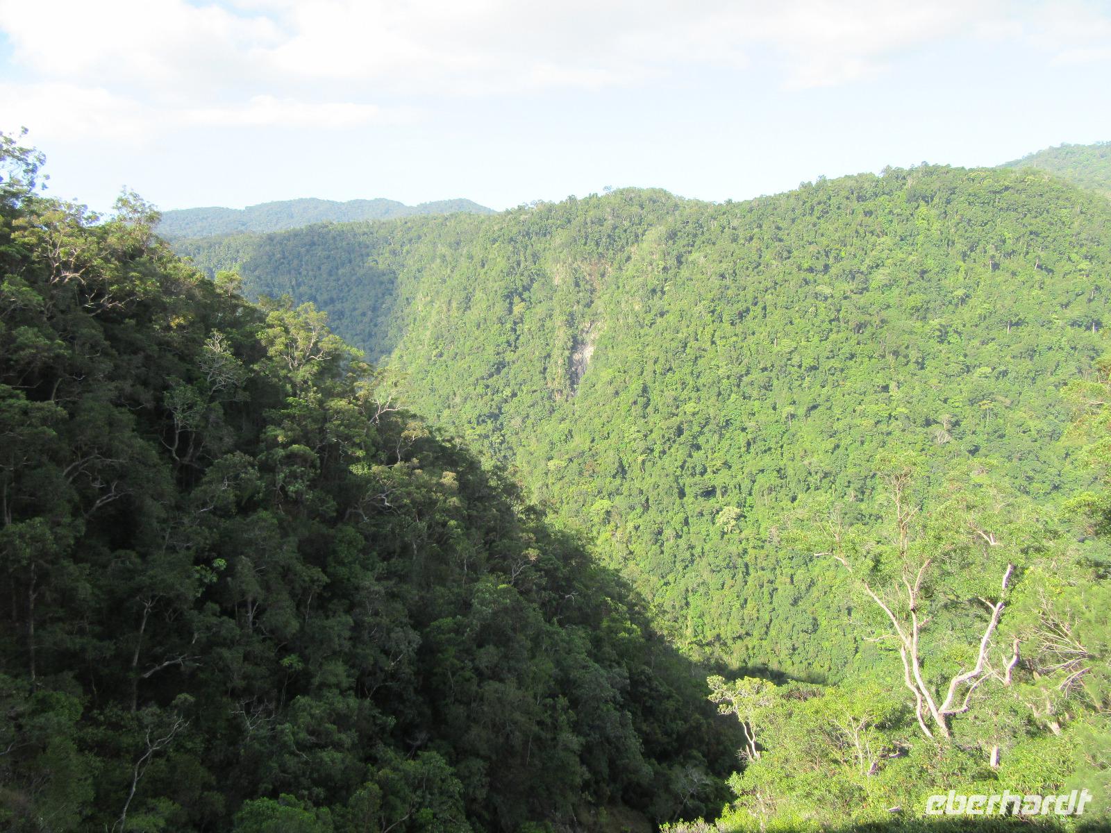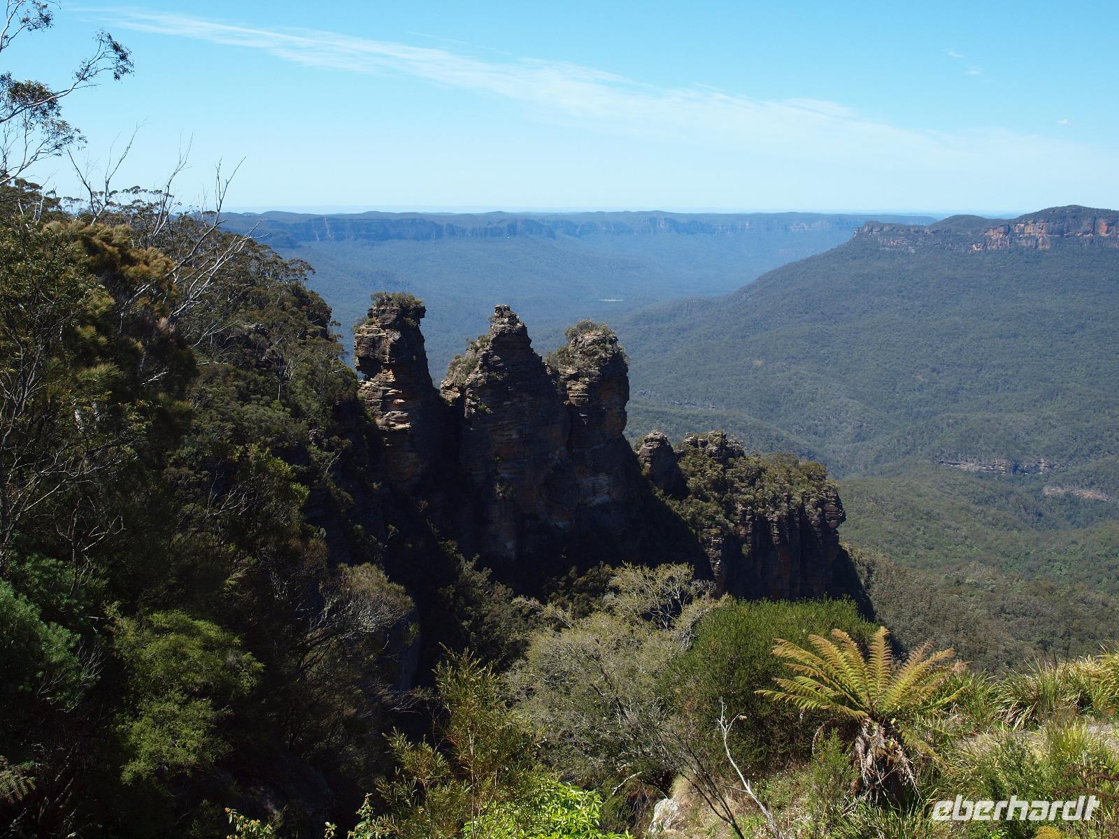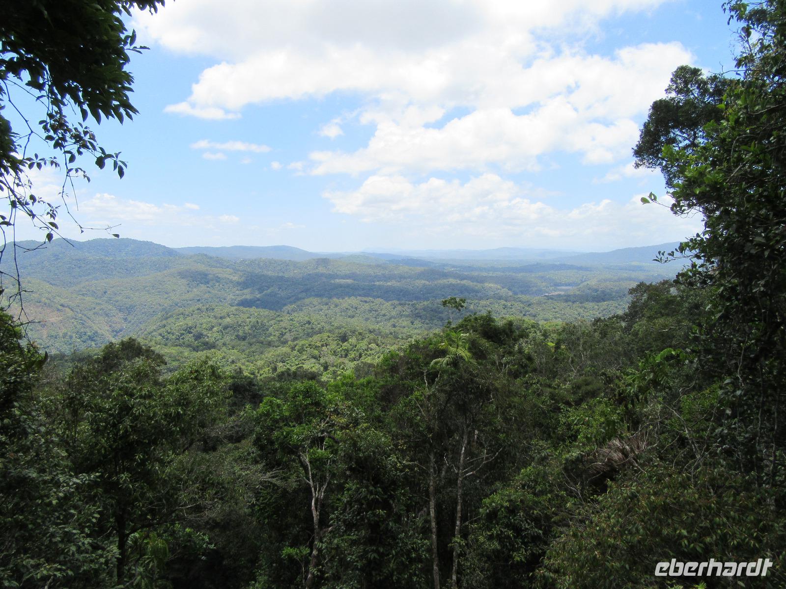 Heute sind wir schon etwas früher auf den Beinen um einen Ausflug in die Berge zu unternehmen. Ulli holt uns wieder ab und es geht in Richtung Westen. Durch den Dunst, der über dem Regenwald liegt, hat die Landschaft tatsächlich einen leicht bläulichen Touch. Unser erstes Ziel ist ein Aussichtspunkt von dem aus wir nahezu alleine die Aussicht genießen können. Nächstes Ziel sind die drei Schwestern, hier sind wir dann aber leider nicht mehr alleine.