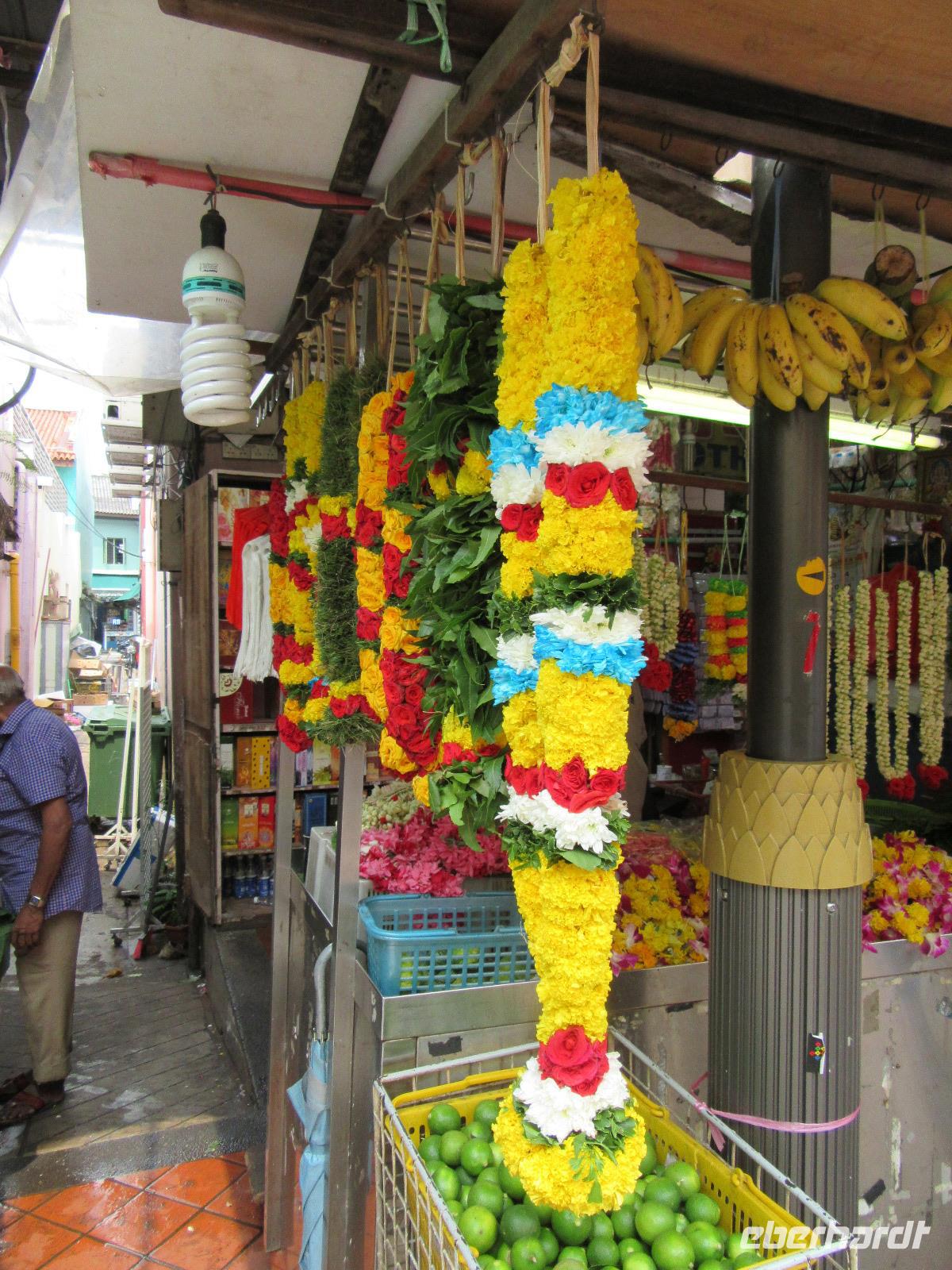 Pünktlich auf die Minute ist dann auch schon David mit unserem Bus im Hotel. Wir verladen die Koffer und beginnen mit der Stadtrundfahrt. Erster Halt ist Little India, wir unternehmen einen kleinen Spaziergang und David zeigt uns verschiedene Früchte und Allheilmittel. Danach fahren wir in den botanischen Garten um uns die wohl prächtigste Orchideen"sammlung" anzusehen. Nach einem Spaziergang durch den Garten, folgt ein weiterer in der Marina von Singapur. Von hier haben wir nocheinmal einen tollen Blick auf die Skyline, den Merlion und das Marina Bay Sands Hotel. Zum Abschluss gehen wir noch nach China Town. Auch hier zeigt uns David wieder die Besonderheiten, die dieses Viertel birgt.