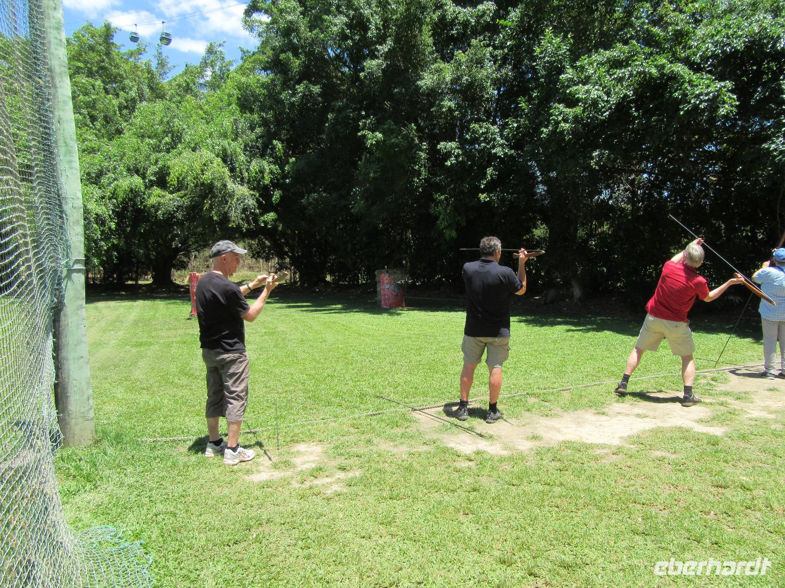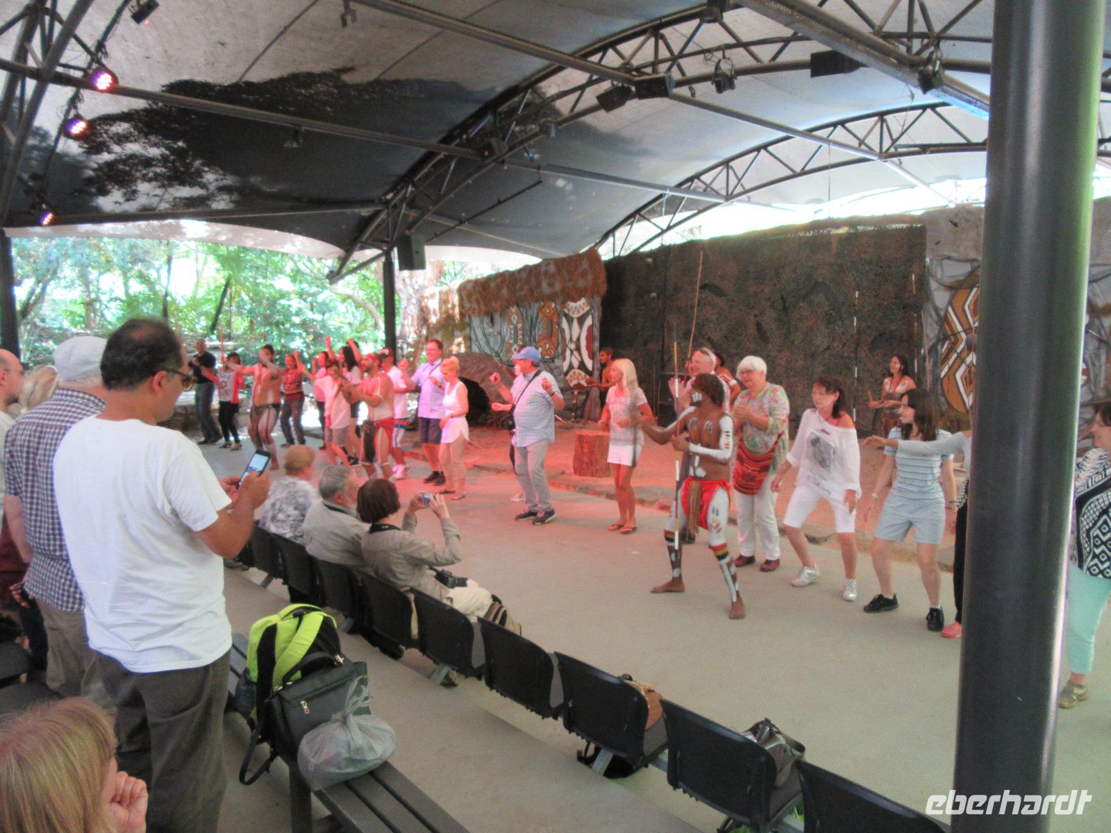 Nur eine kurze Busfahrt vom Hotel entfernt liegt das Kulturcenter der Tjapukai, dem hier lebenden Aboriginestamm. Hier in Tjapukai lernen wir, wie man den Boomerang wirft, wie wir mit Hilfe der im Regenwald vorkommenden Früchte und Pflanzen überleben kann und wie der Speer geworfen wird. Außerdem sehen wir eine tolle Show der Aborigines in der sie uns ihre Entstehungsgeschichte erzählen, die in ihrem Stamm über Generationen weiter gegeben wurde. Außerdem gibt es noch eine Tanzvorführung mit der Möglichkeit daran teilzunehmen?.
