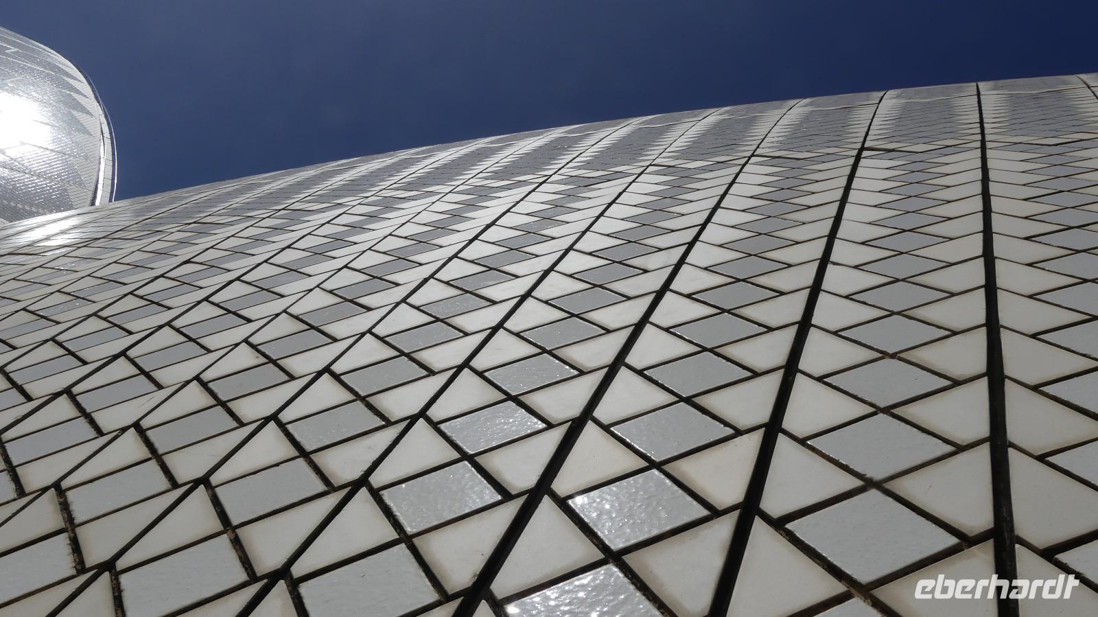 Im Fall des Opernhauses ist es gut, wenn man sich vorher nicht so genau mit der Geschichte des Hauses beschäftigt, denn an diesem Ort zu erfahren, was es mit der Baugeschichte auf sich hat, ist überwältigend. Es geht insbesondere um den dänischen Architekten Jorn Utzon (1908 - 2008), der dieses architektonische Meisterwerk leider nie in Vollendung sehen konnte, aber späte Ehrungen mit dem Pritzker-Preis erfuhr und sein Sydney Opera House 2007 kurz vor seinem Tod auf die UNESCO-Weltkulturerbeliste kam.