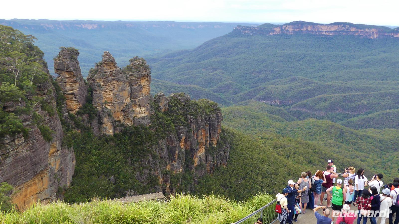 Am Morgen verlassen wir Sydneys Innenstadt über die ANZAC-Brücke. Auch heute ist es wieder ein schöner Sommertag. Ziel heute sind die „Blaue Berge", Blue Mountains. Doch zunächst kommen wir durch die weitläufigen Außenbezirke Sydneys, schön grün, Gartenstadt ähnlich. Beim Vorort Parramatta ist das Olympia-Stadion der Sommerspiele 2000 zu sehen. Uli versorgt uns mit vielen interessanten Informationen, zum Beispiel welche Strafen bei Vergehen im Straßenverkehr verhängt werden, wie hier die Fahrschule funktioniert, wie die Löhne und das Gesundheitssystem sind.