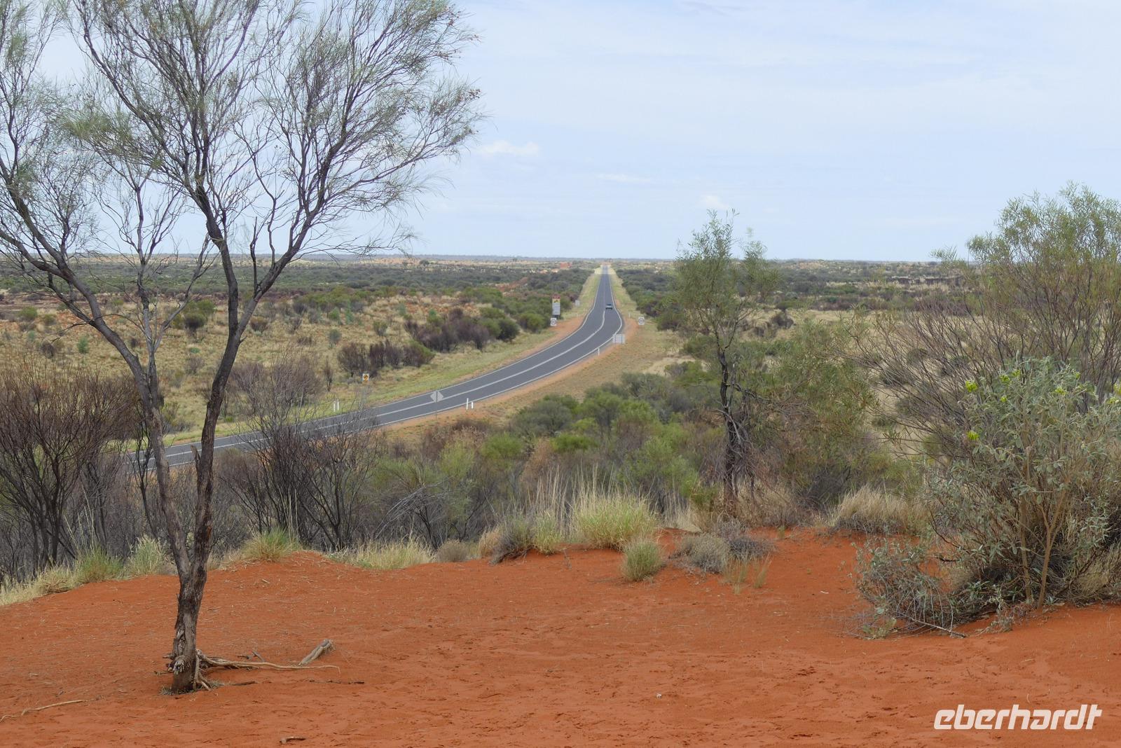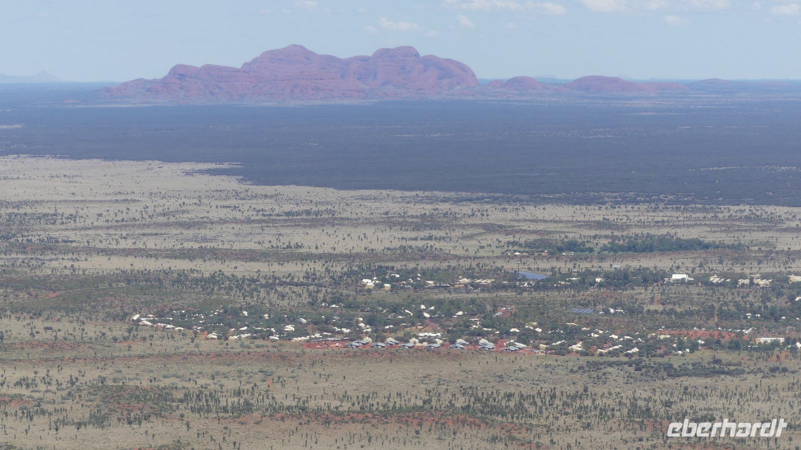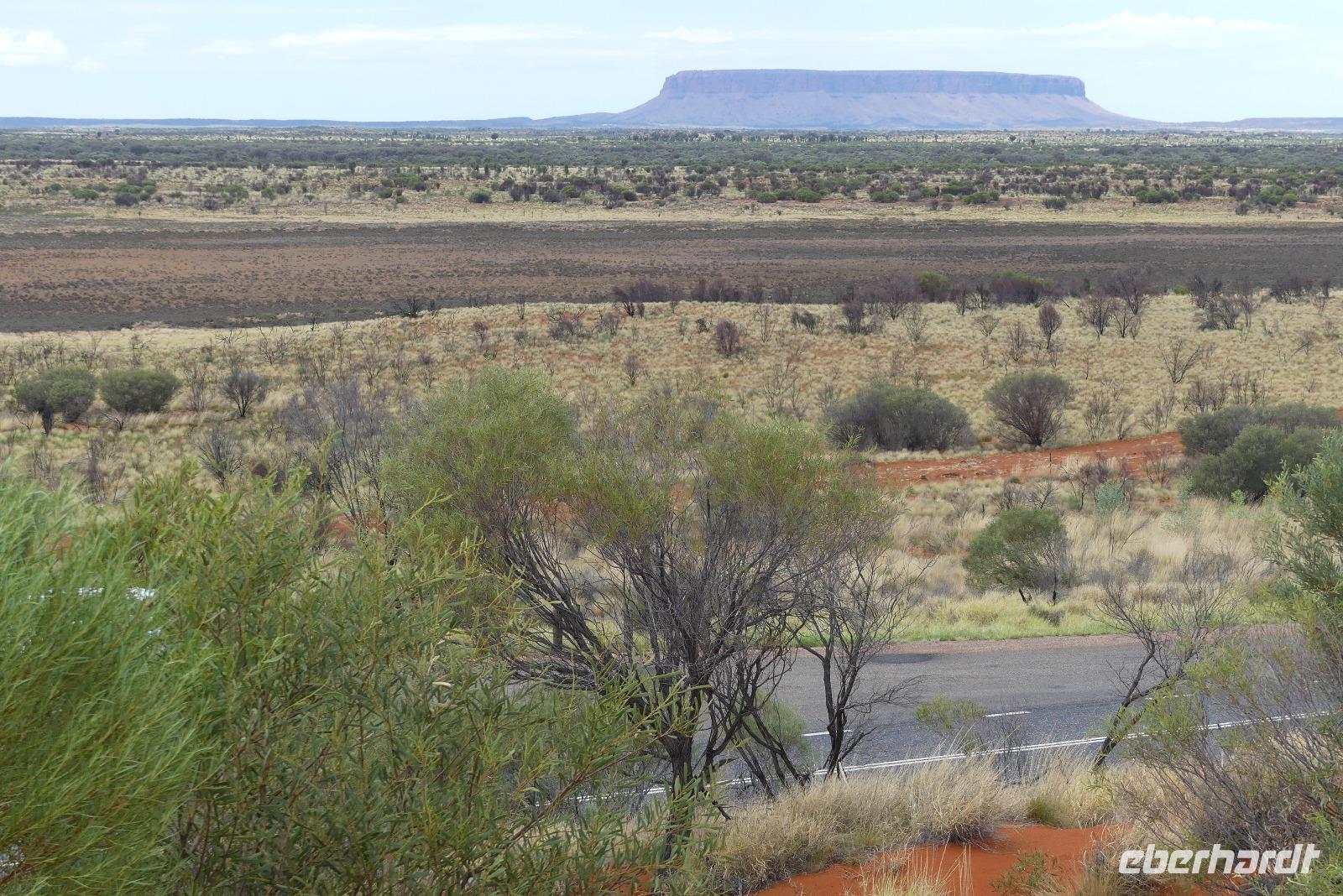Toni chauffiert uns sicher die etwa 450 Kilometer nach Alice Springs. Unterwegs lernen wir noch einen weiteren Inselberg kennen, den Mount Conner (859 m).Während der Busfahrt lässt uns Marcel an einem seiner Hobbys teilhaben, den Opalen. Er zeigt uns viele Exemplare in den unterschiedlichsten Farben. Je mehr Farben in einem Stein vorkommen, umso wertvoller ist er.