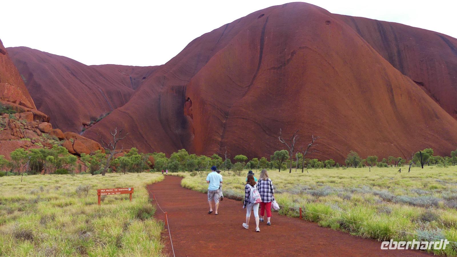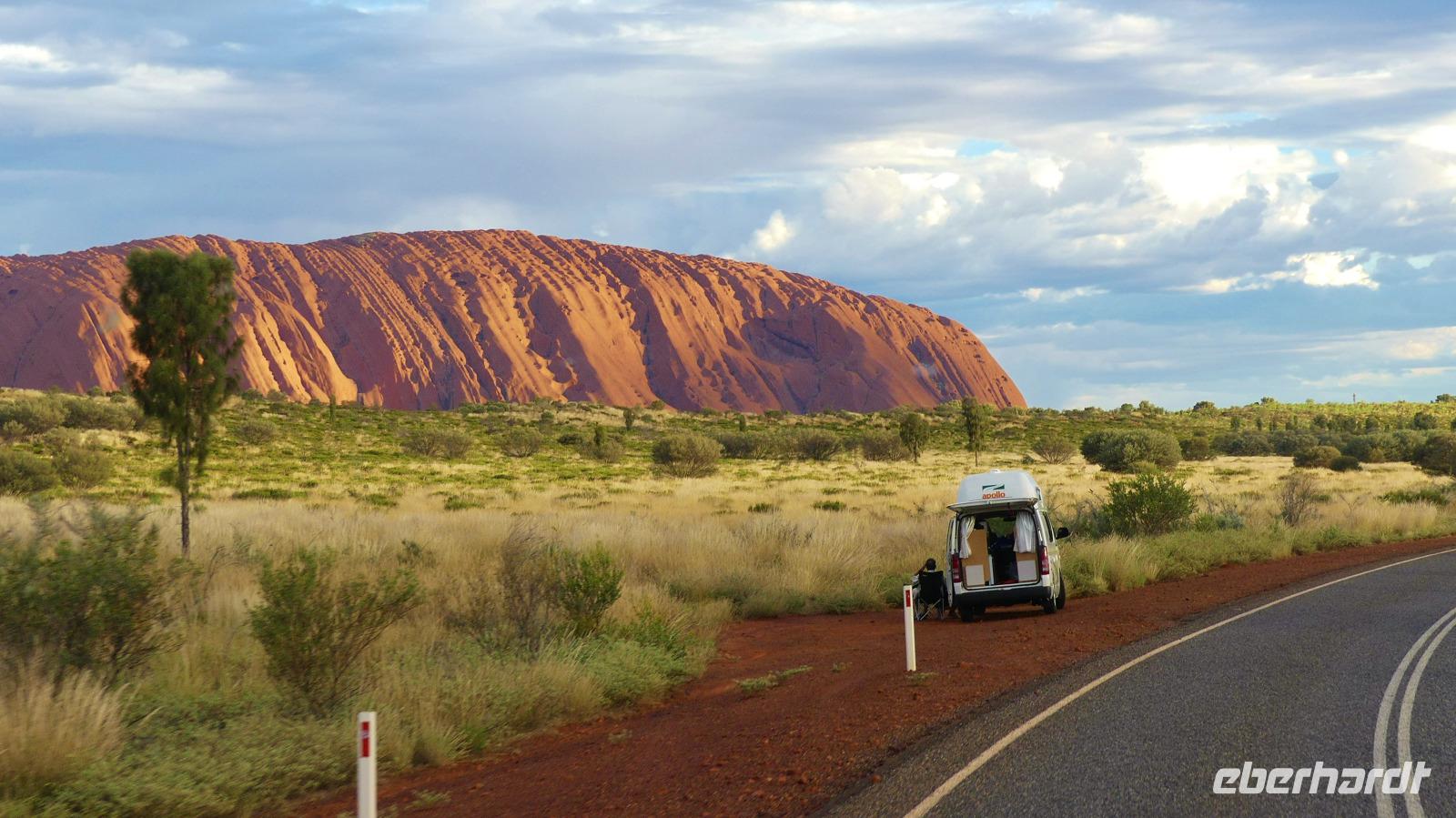 Es ist Zeit sich vom Ayers Rock zu verabschieden. Wer den 350 Meter hohen Berg noch sehen möchte, der sollte sich beeilen, denn jährlich schrumpft er durch Erosion 2,5 Zentimeter. Damit wird er in 14.000 Jahren verschwunden sein.