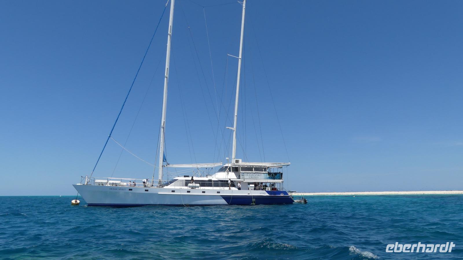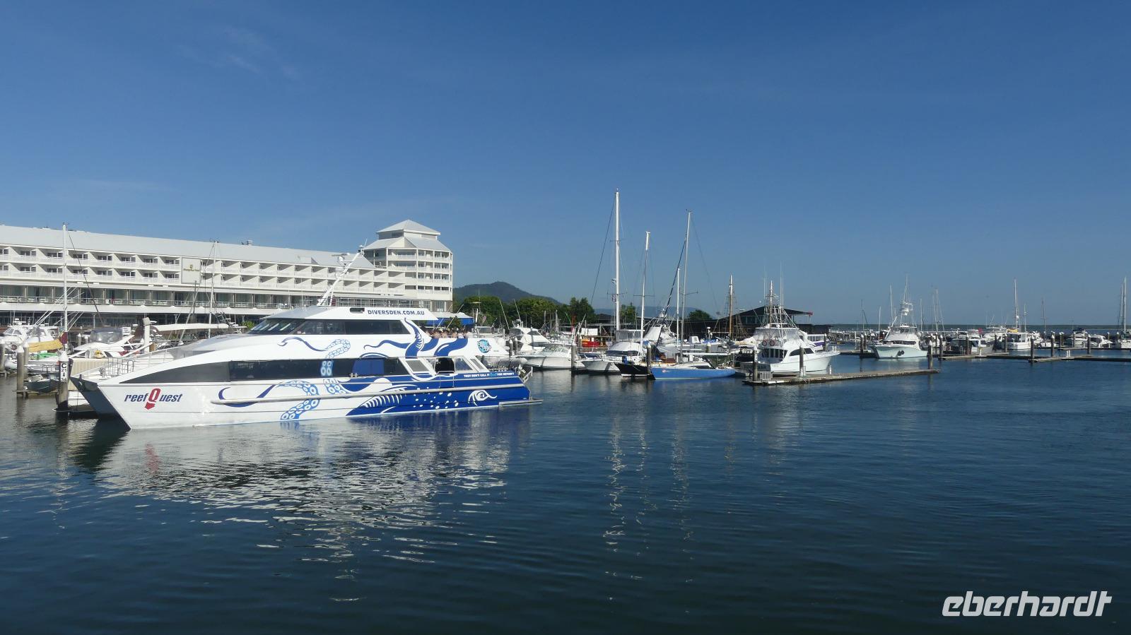 Es ist ein schöner Tag, Lufttemperatur um die 30 Grad, Wasser etwa 28 Grad, blauer Himmel, blaues Meer und tolle Unterwasserwelt, ja so lässt es sich aushalten, weit weg von Arbeit, Stress und frostigen Temperaturen. Auf der Rückfahrt mit der „Ocean Spirit" zum Hafen Cairns stoßen wir mit einem Glas Sekt auf diesen gelungenen Tag an.