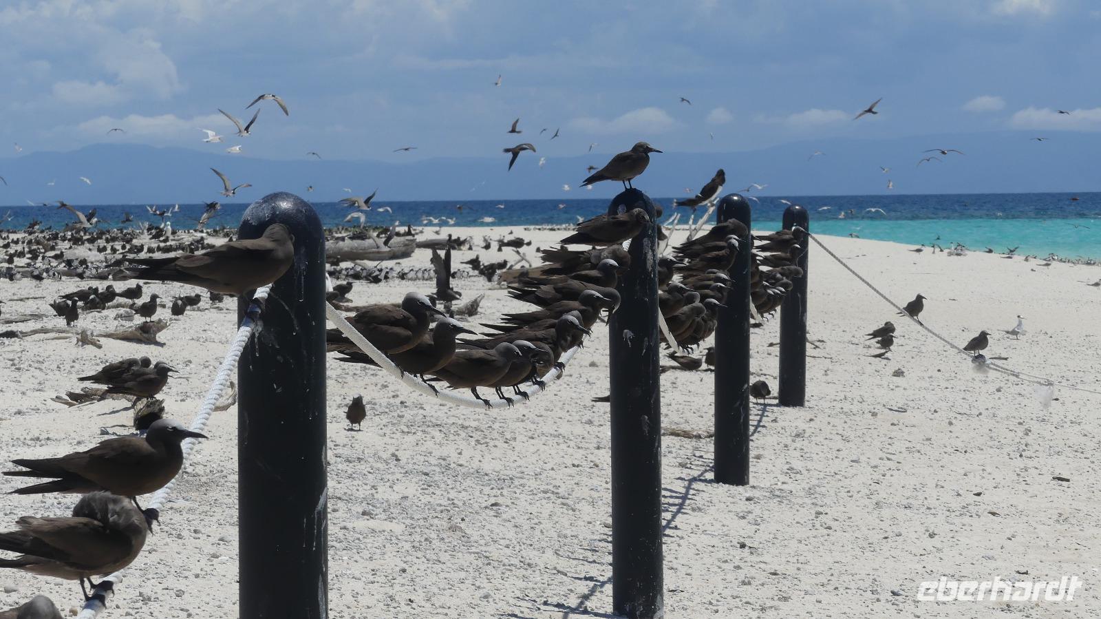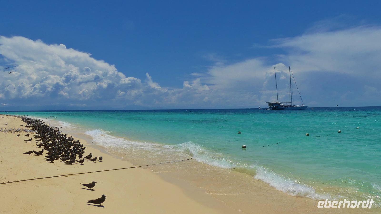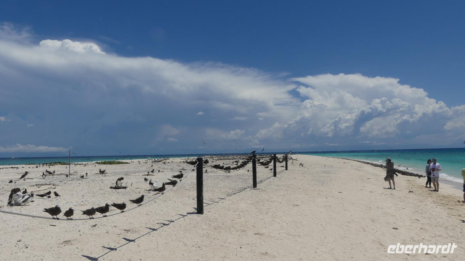 Bei einer Tauchfahrt mit einem sogenannten SemiSub sehen wir die bunte Unterwasserwelt mit vielen verschiedenen Arten von Korallen sowie Schildkröten, Thun- und Papageienfische, Snapper u. a. m. Anschließend setzen wir mit einem kleineren Boot auf die Insel über, einige zum Schnorcheln, andere zum Baden. Seevögel können wir hier sehr gut und aus nächster Nähe beobachten. Es sind wahrscheinlich tausende Vögel die hier rasten und zum Teil auch brüten.