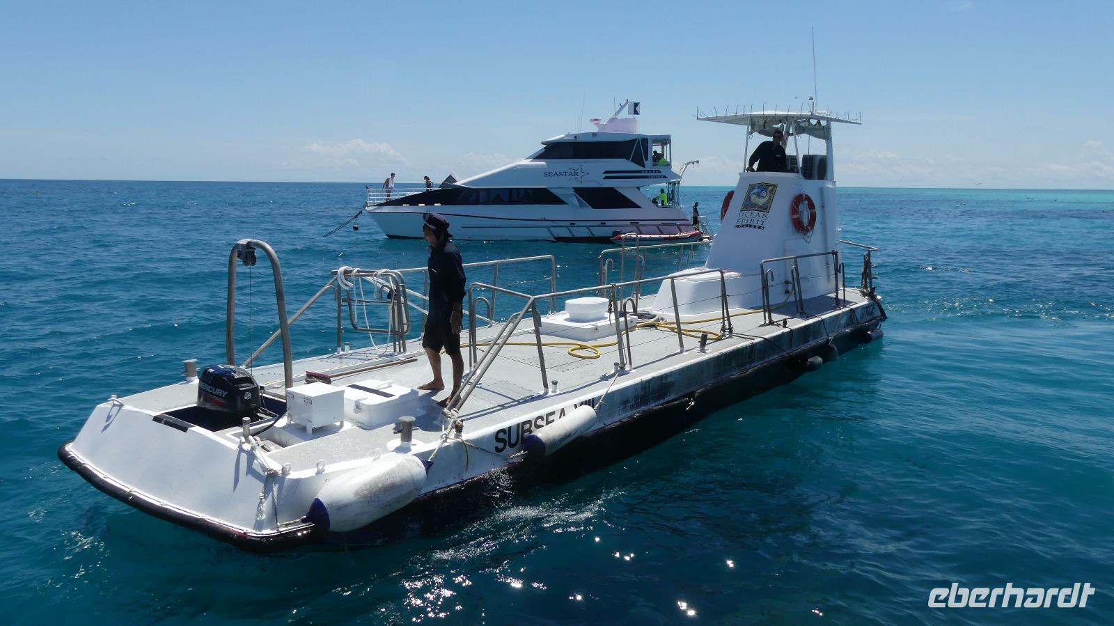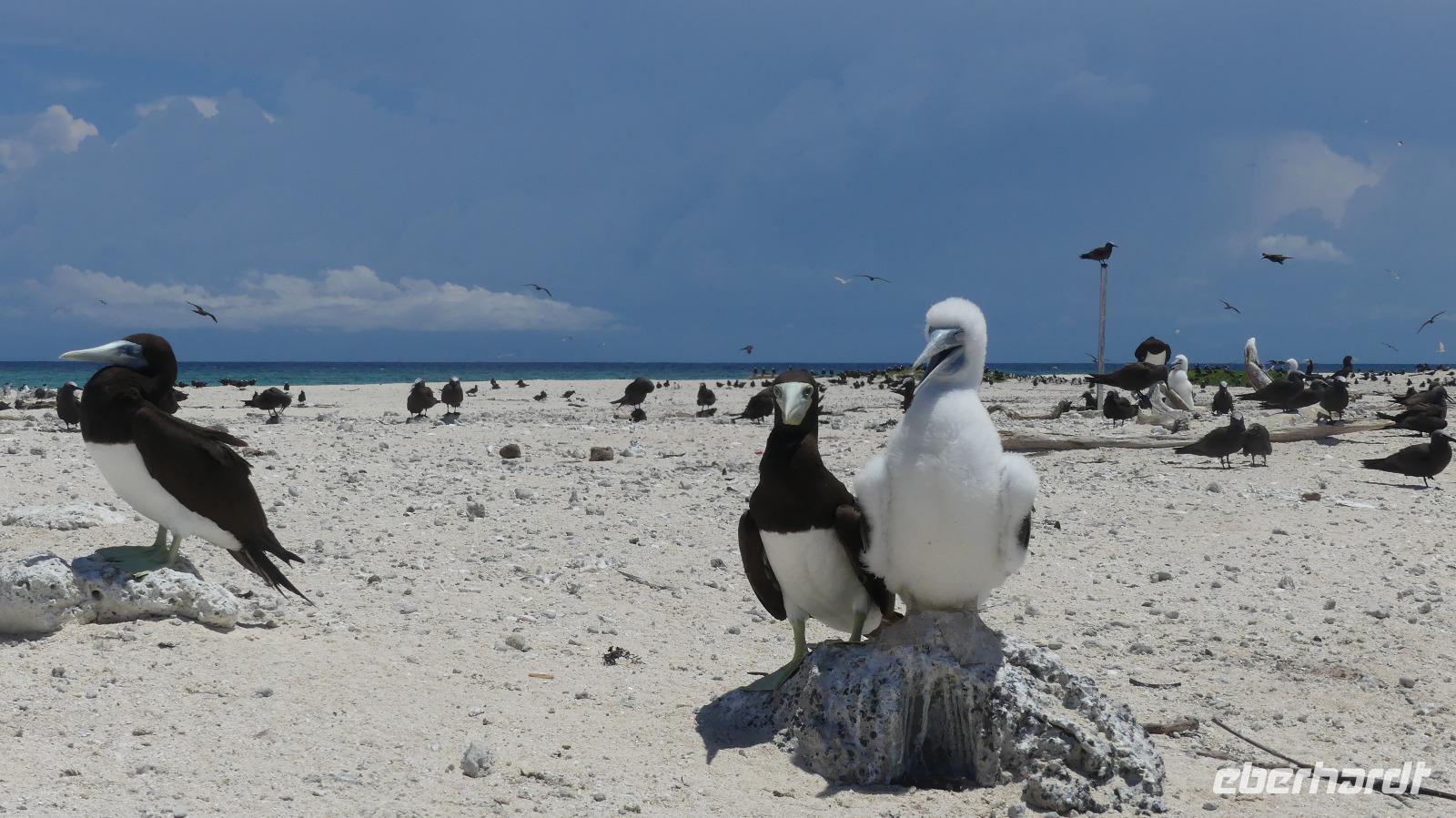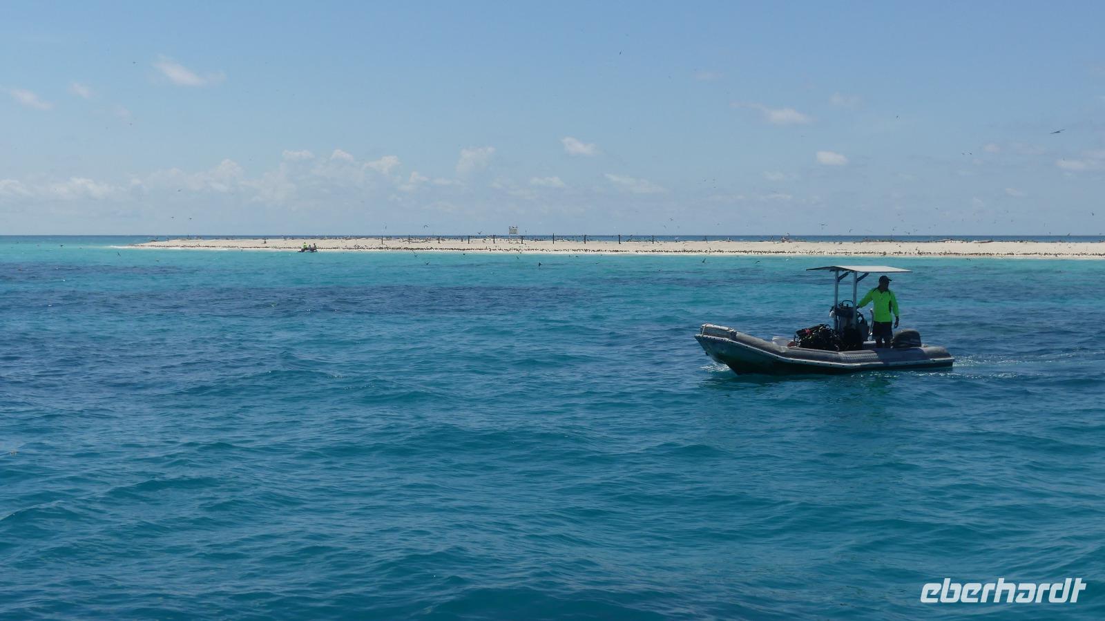 Bei einer Tauchfahrt mit einem sogenannten SemiSub sehen wir die bunte Unterwasserwelt mit vielen verschiedenen Arten von Korallen sowie Schildkröten, Thun- und Papageienfische, Snapper u. a. m. Anschließend setzen wir mit einem kleineren Boot auf die Insel über, einige zum Schnorcheln, andere zum Baden. Seevögel können wir hier sehr gut und aus nächster Nähe beobachten. Es sind wahrscheinlich tausende Vögel die hier rasten und zum Teil auch brüten.